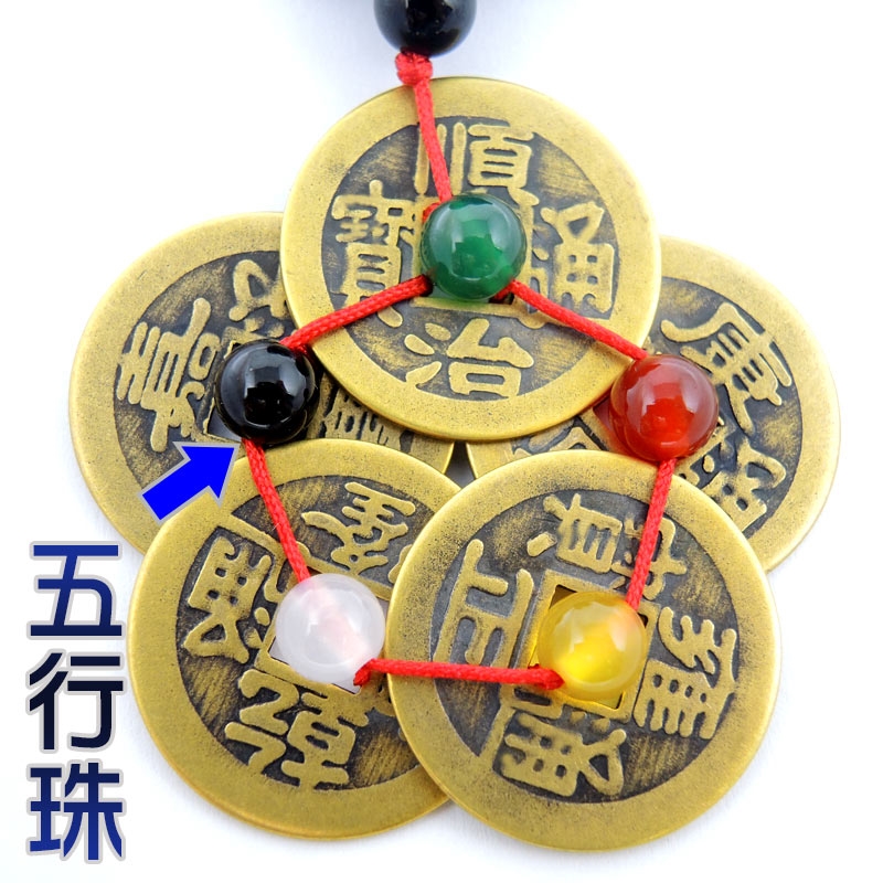 。我們可藉取其「君王之氣」的五種銅幣,配合紅色的中國結,予以助長,