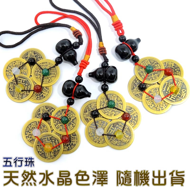 招財+防小人【精緻款-招財葫蘆五帝錢 +五行珠】硃砂開光