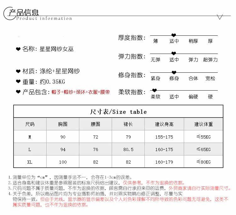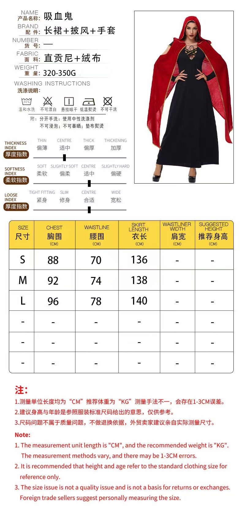 S碼數:胸圍80-84 腰圍72-74 裙長128 披風170 適合身高158-163