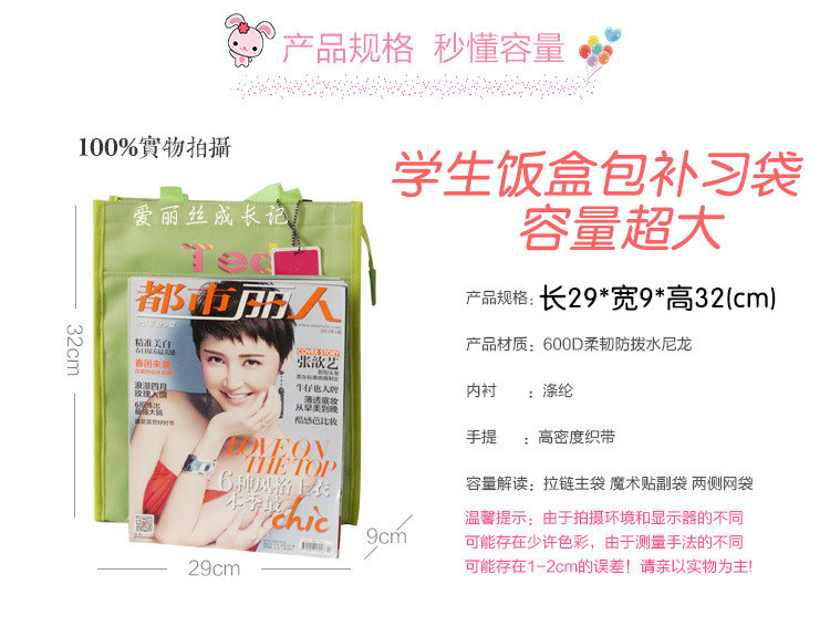 溫馨提示:手提袋 剛收到打開會有新品的氣味 這是正常的哈 ~保溫包的質量很好,我們都是虧本提供給有需要的麻麻的, 親收到后建議 打開清洗下 然后自然晾干(不清洗光打開散味沒效果的一定要先清洗下~),氣味會慢慢消散的哈 新品的氣味對人體不會有任何影響的 請放心購買使用哦