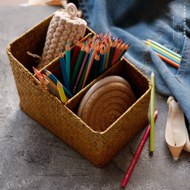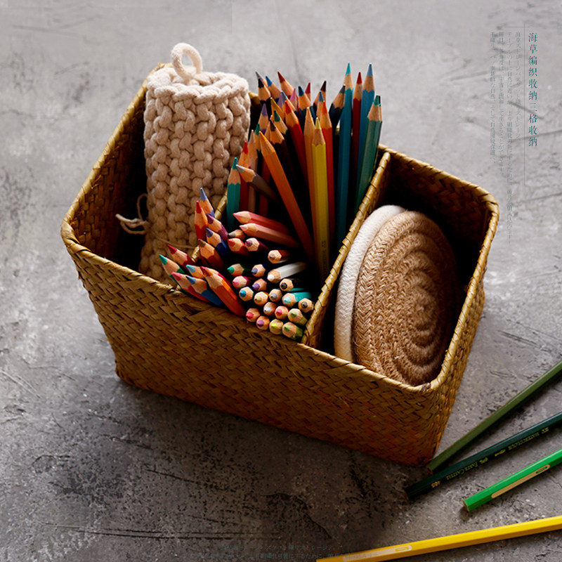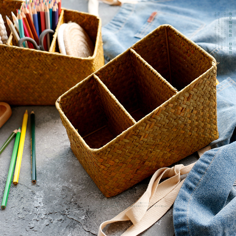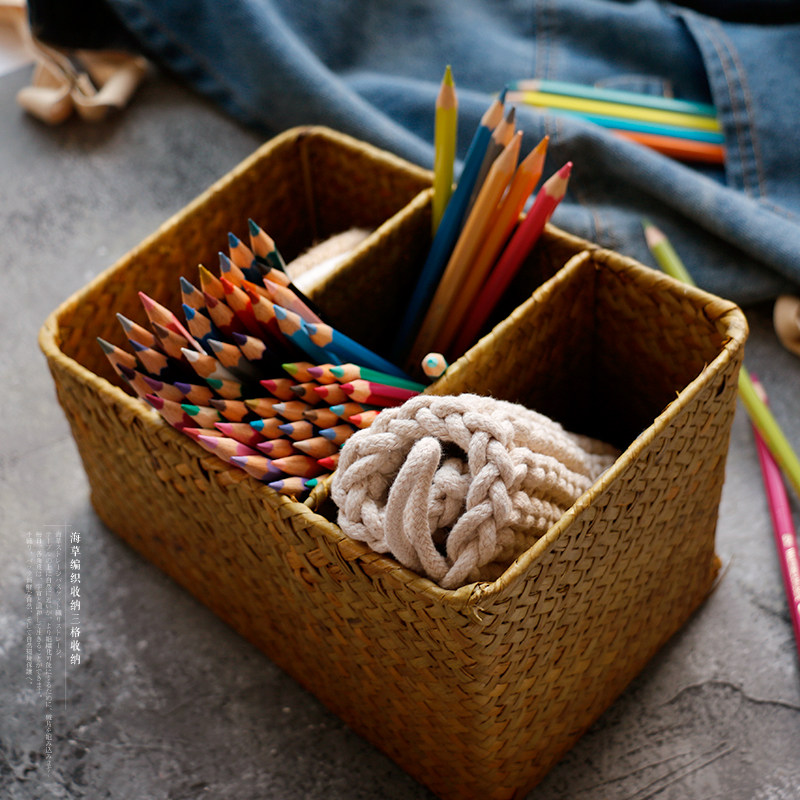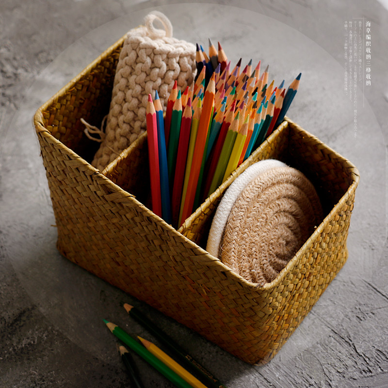 海草編三格文具收納盒