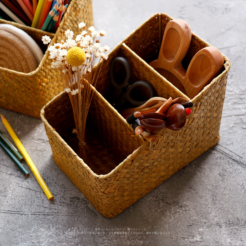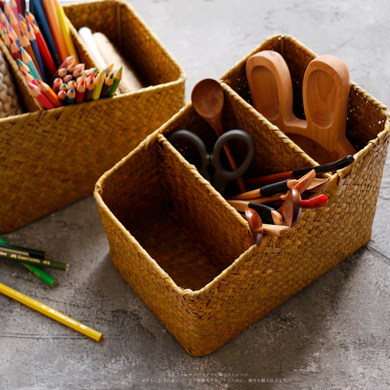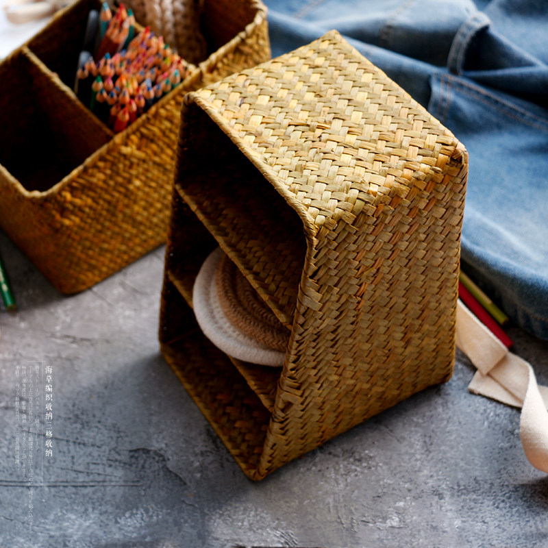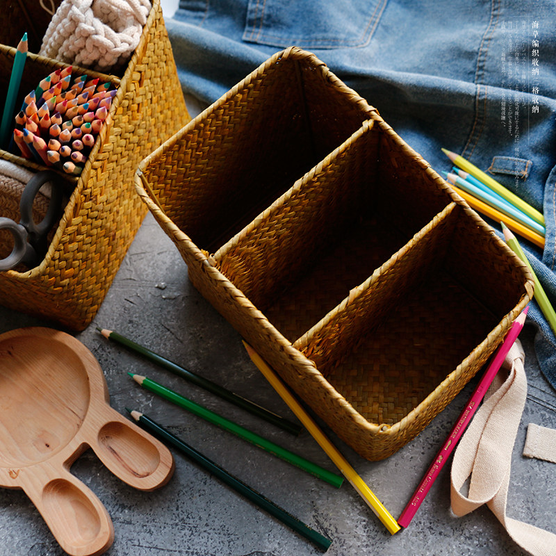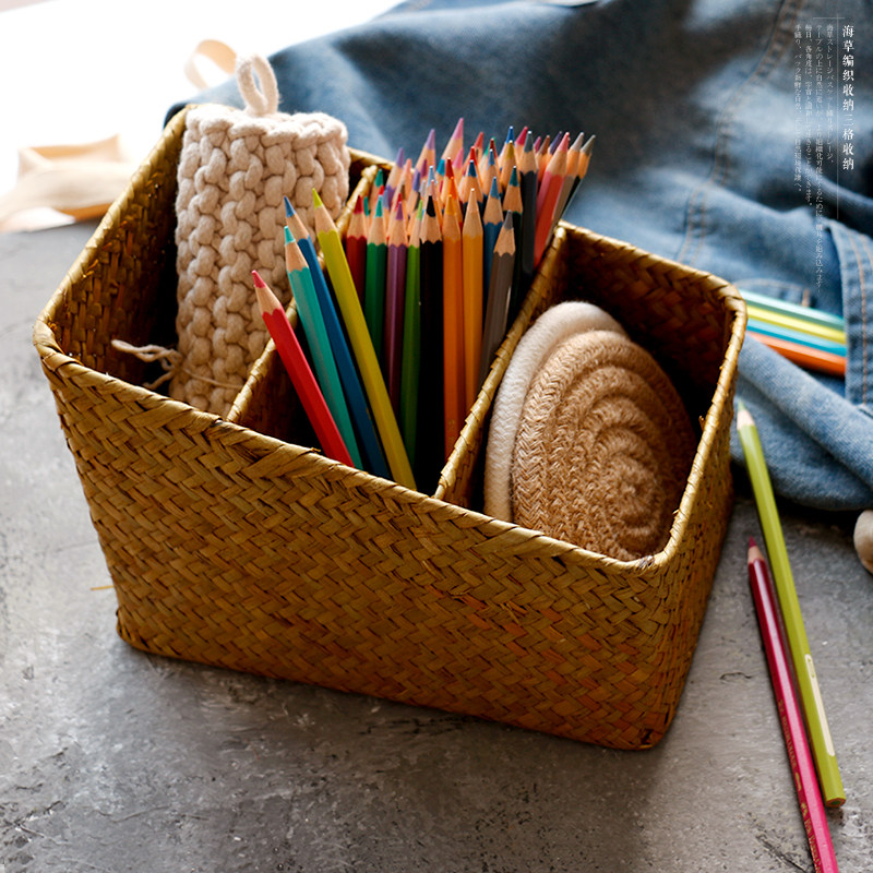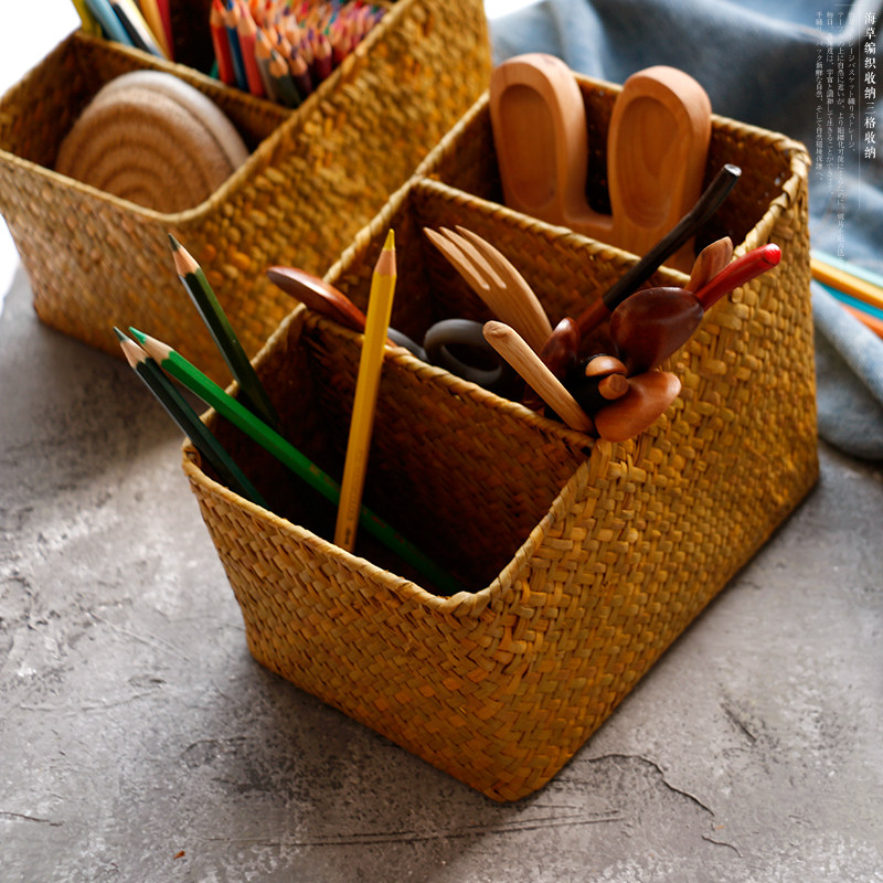 海草編三格文具收納盒