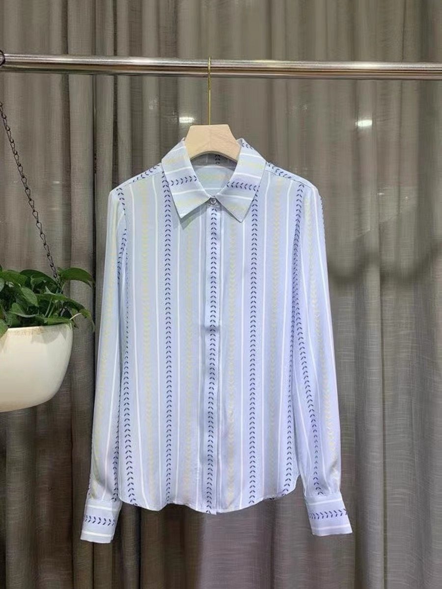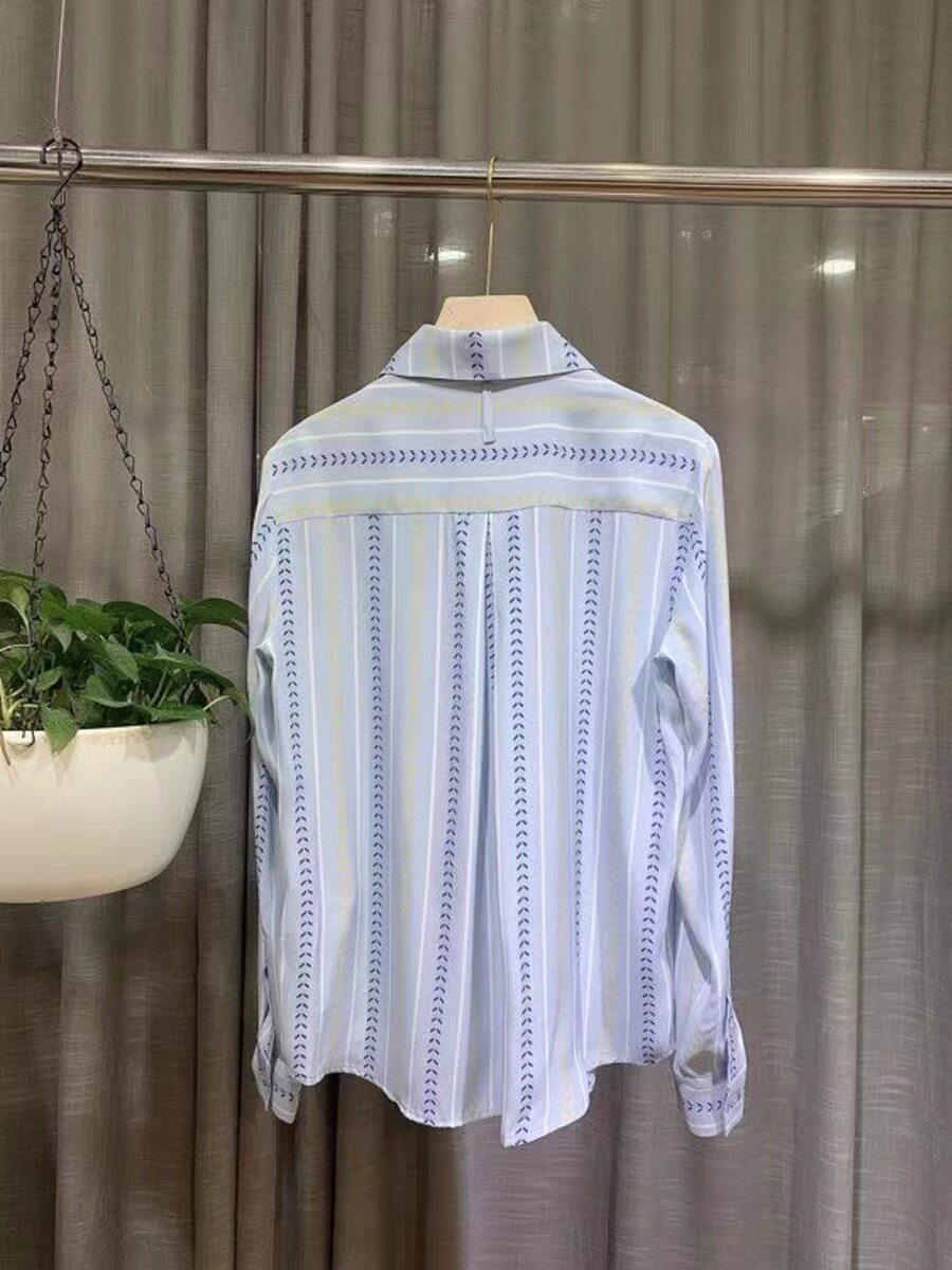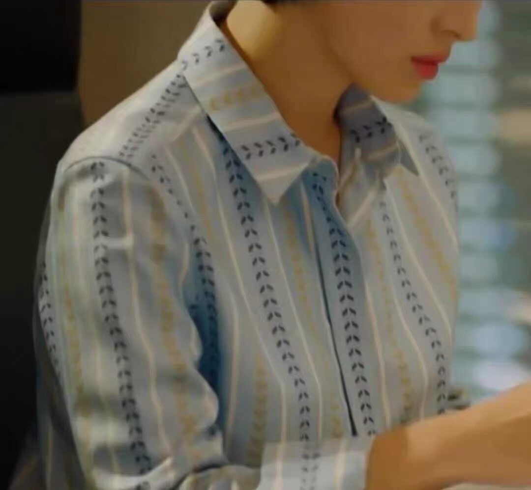 清新的淺藍色底豎條印花宛如麥穗一眼就被吸引住的