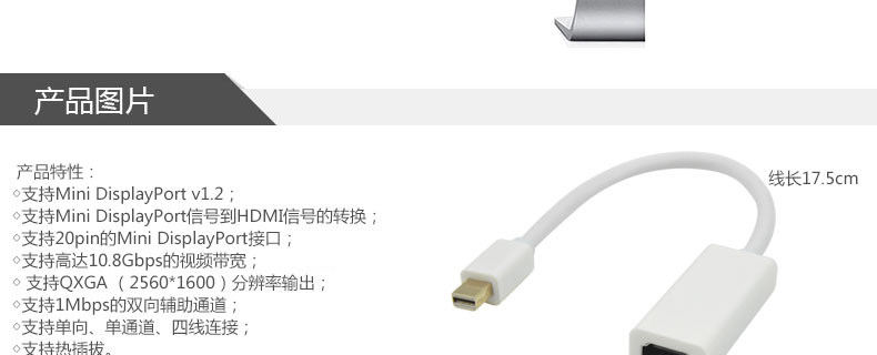 本產品是一個轉接頭,長度為17.5CM,需要配合HDMI線才能使用。