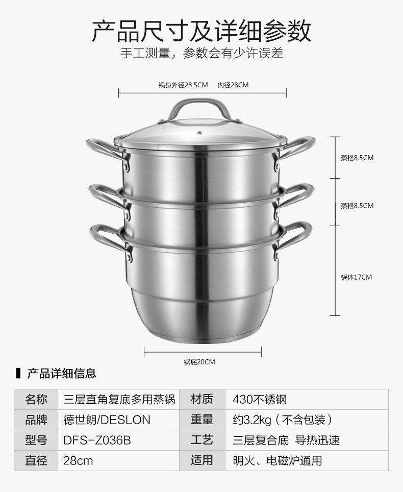 304不銹鋼蒸鍋,蒸格 蒸片都是304不銹鋼的,關于蒸片會被磁鐵吸住,不支持此檢驗。因為原材料本來無磁,但經過人工和機臺外力打磨拋光,產生機械磁,這種用久會自動消磁的呢。是外力產生的,不會影響什么的哈,用磁鐵來判斷是完全錯誤的。介意的慎拍