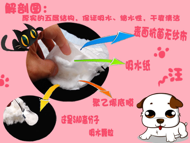專為狗狗月經、例假、大小便失禁和疾病護理期設計,一次性既方便又衛生,大吸水量,超干爽,不用擔心細菌滋生感染等!