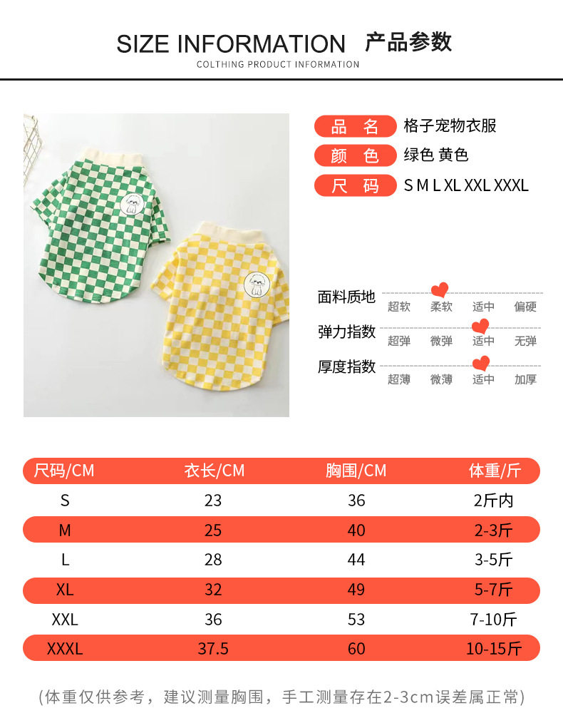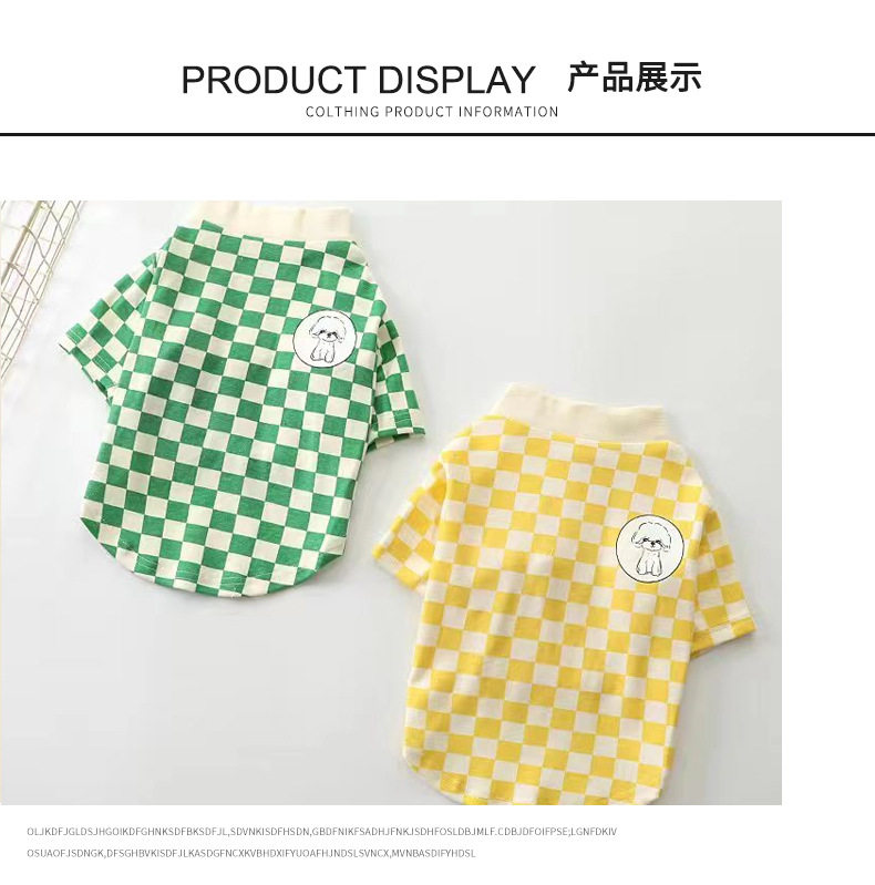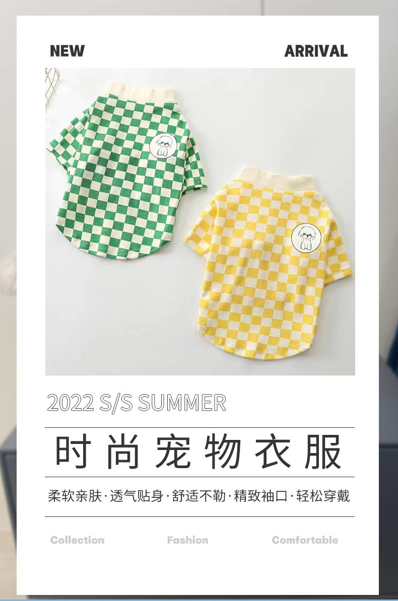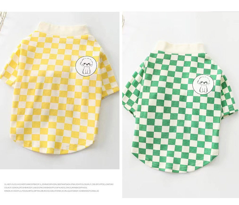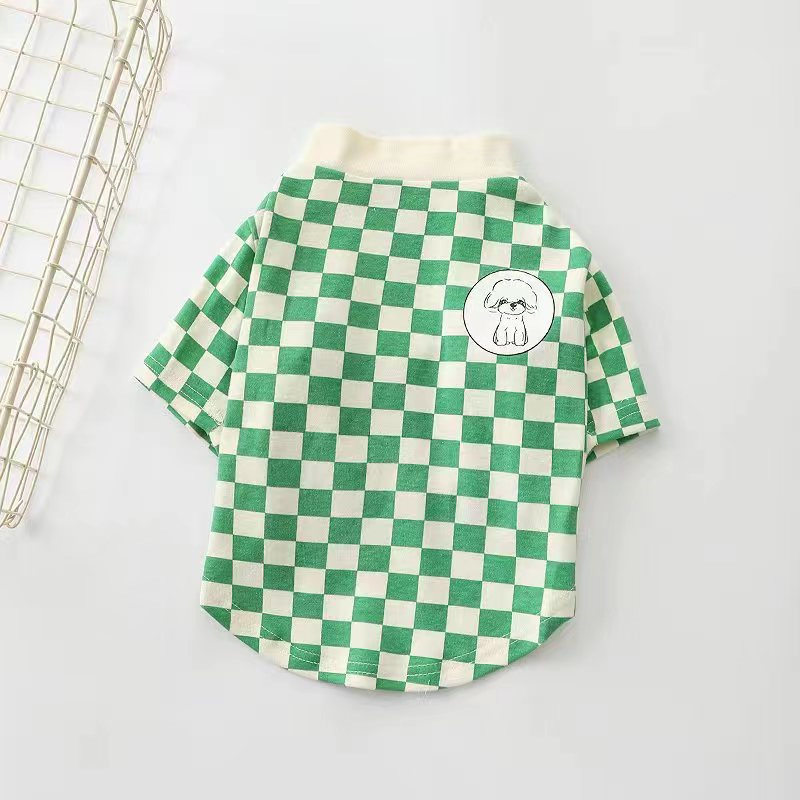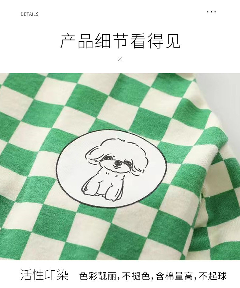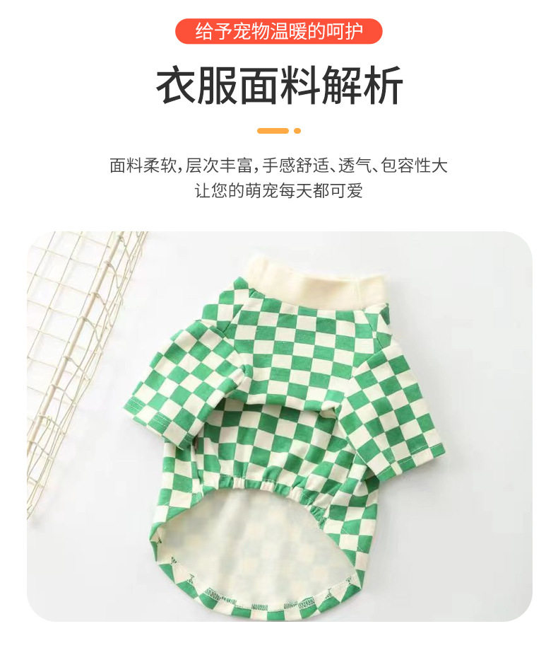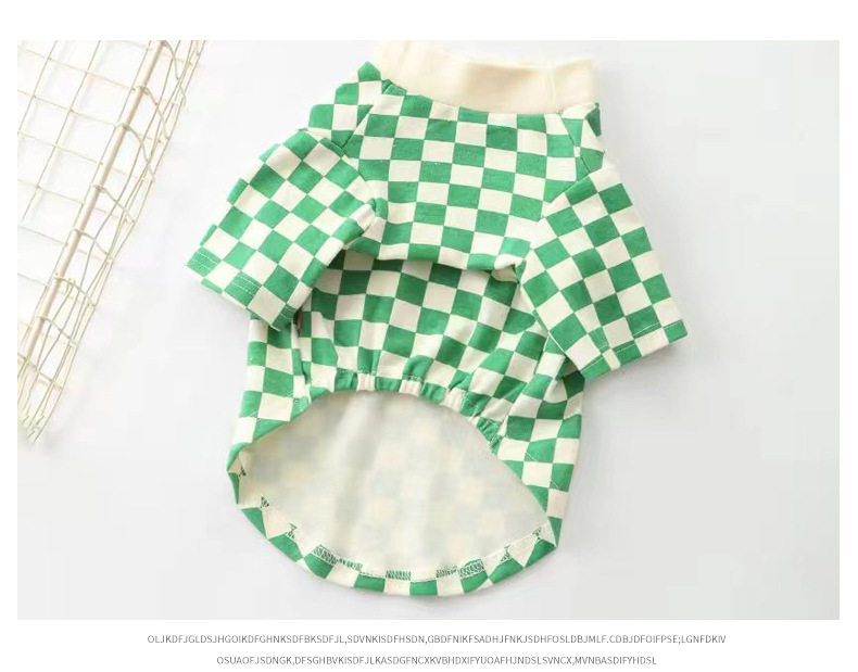 寵物衣服狗狗貓咪全棉打底衣格子兩腳衣比熊泰迪服裝新款休閑綠色