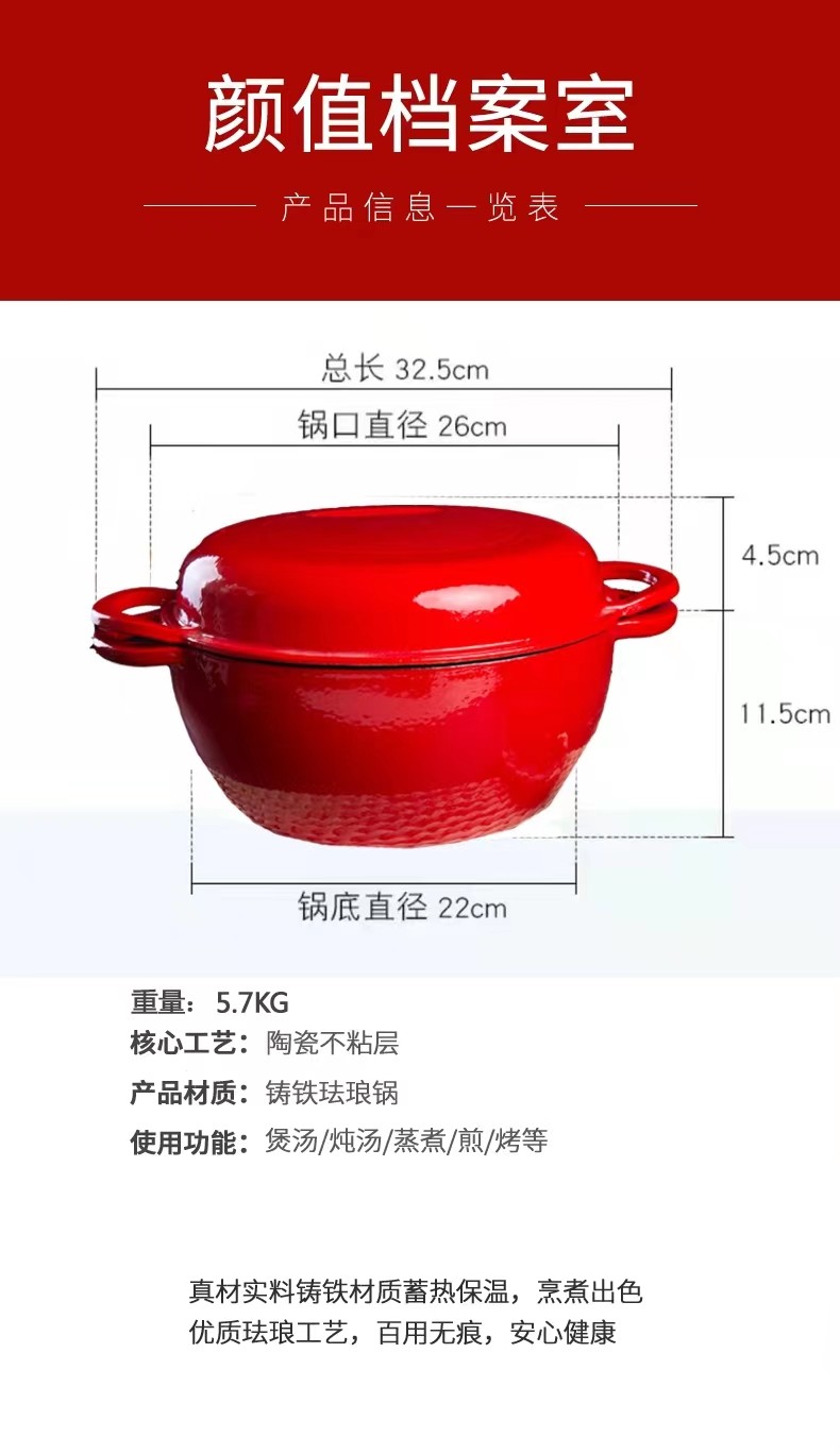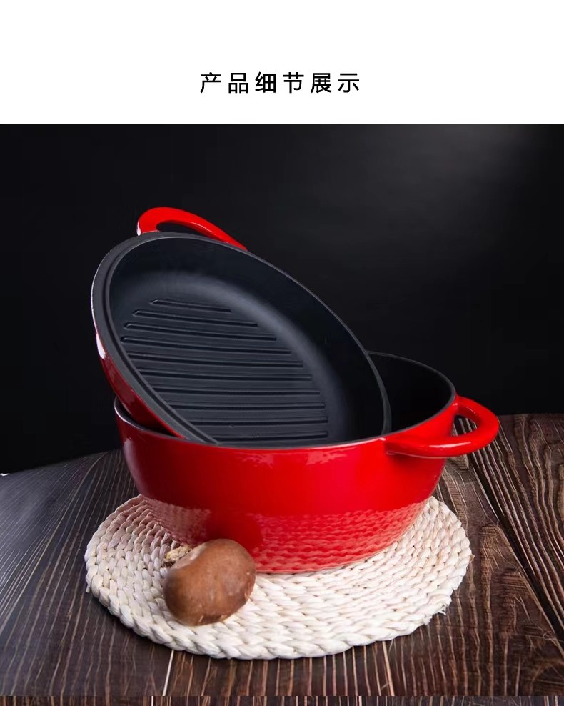 出口鑄鐵搪瓷琺瑯面包鍋烤歐包雙用鍋燉鍋燜燒鍋烤箱燃氣通用