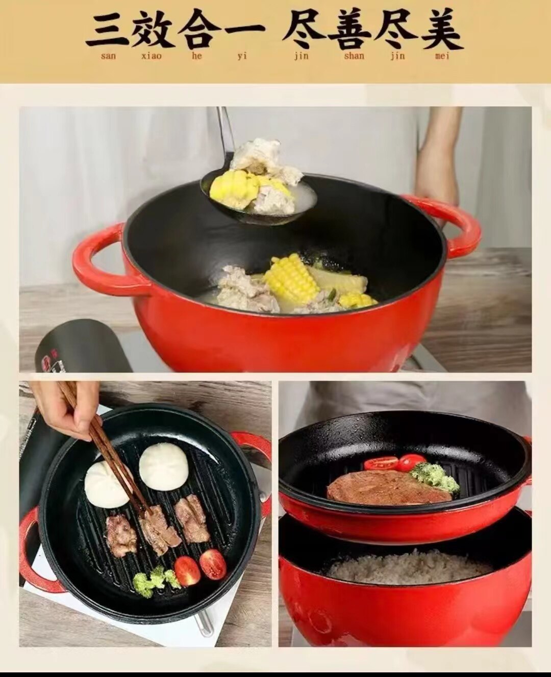 圓形16.7cm雙用鍋 直徑16.7cm. 單鍋高度 11cm 總長22.5cm 重量大概3.2公斤