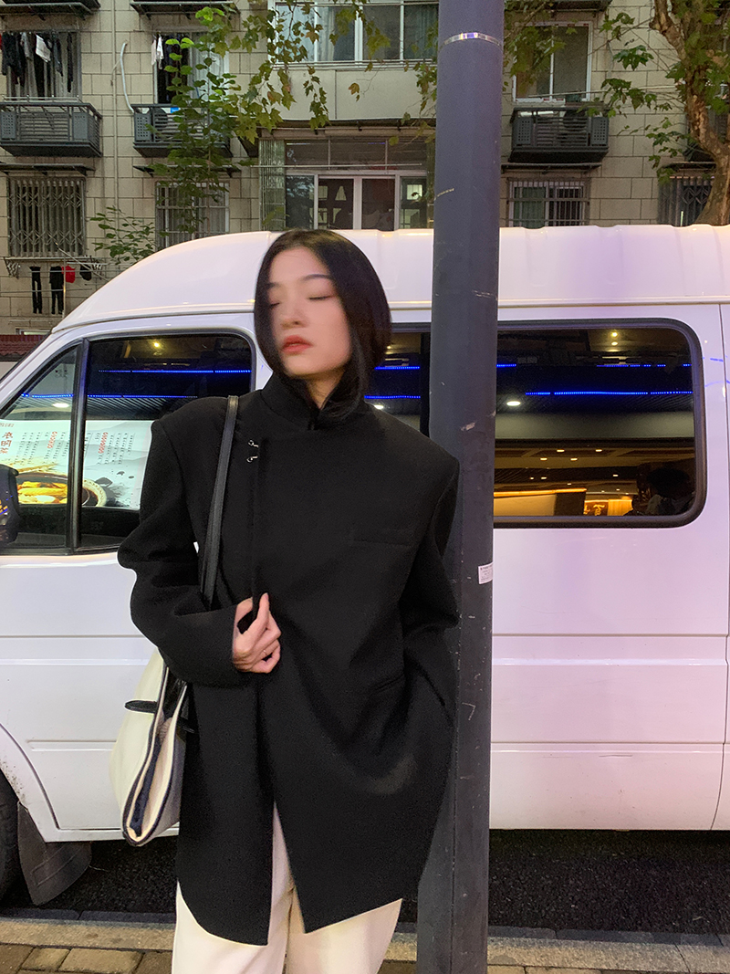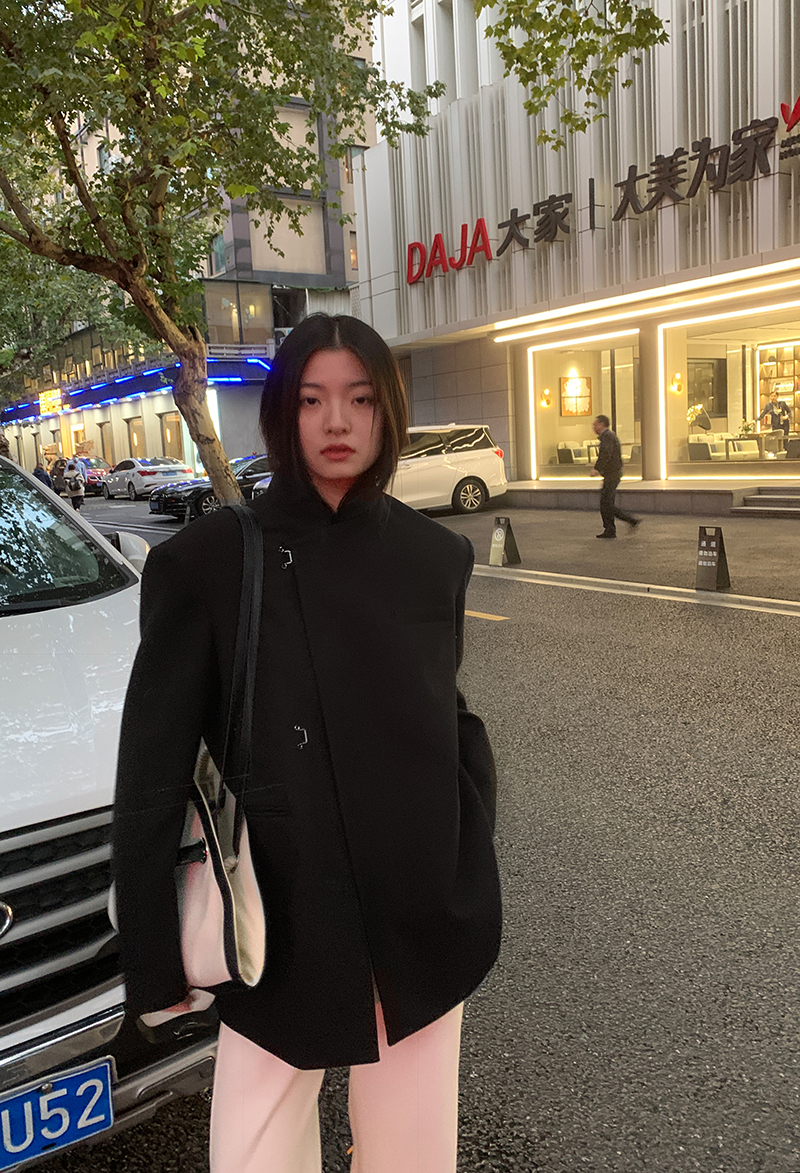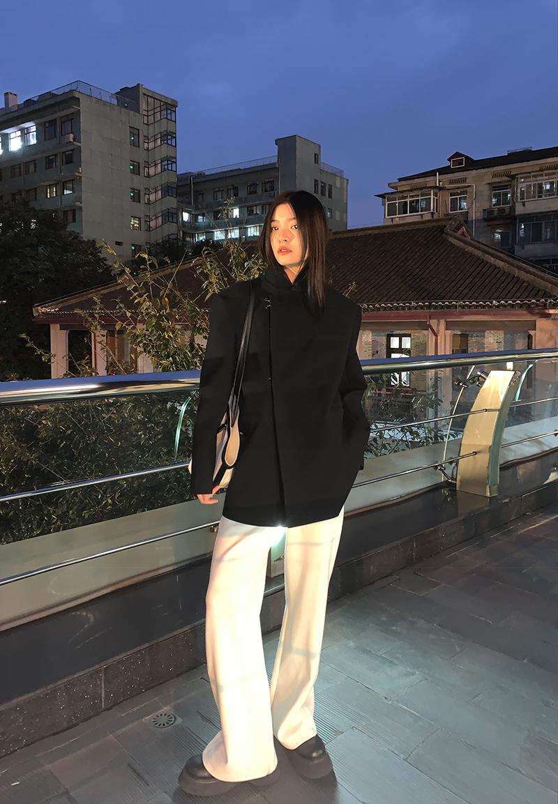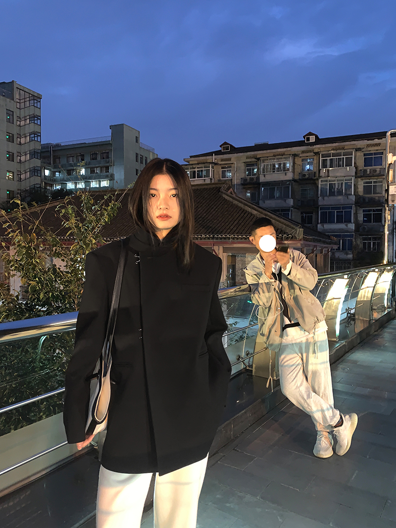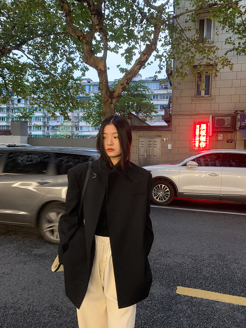首先說明,這件是洛邊店鋪原創設計,你們看到后期有同款,一定是抄襲,買正版還是仿版是大家的自由,但是還是希望寶寶們支持正版!這樣我們的設計師,才會更有動力給大家設計出更棒的衣服。這件衣服,真的又美又酷,能看到這里的寶子們,只能說我們審美一致,加購收藏的寶們,你不要再猶豫了,這件一定是我近幾年很棒的版型中優質的版型。這件也一定是你曾經買過的西裝中,起碼可以打敗白分之90的版型。此款金屬扣真的是天時地利人和的加在了這件衣服上,要是前幾年中國風不流行的那陣子,這件衣服一定是無人問津,但是今年就不一樣了,今年的盤扣和金屬扣大張旗鼓的火了一把,希望喜歡的寶們不要再猶豫了,深冬季節穿也是妥妥的,面料非常厚實,加上復合,足足有700克,你要知道雙面羊絨大衣也只有850克。 這個最值得一提的里布加棉的運用,里布這次選了非常柔軟的水洗褶皺面料,比普通的里料貴3倍,用這個面料壓棉,會非常輕柔,很親膚,不會硬。這個是定制的褶皺水洗棉里布,不是說舊舊的褶皺沒質感那種,它就是故意有褶皺肌理那種,而不是說它舊,所以這一點我要非常深刻的強調一下,你們上身看舒不舒服就知道它香不香了。。。同時金屬扣也是那種很有質感的金屬扣,不是那種劣質的金屬扣,我們專門定制的,金屬扣存在的意義主要是為了提高設計感,猶如畫龍點睛,設計理念更多的是想展現出灑脫瀟灑飄逸的感覺,不想把衣服扣的死死的,設計師希望人們對中山裝老派的過分正經這類的刻板印象有所改觀。在設計時也想過用暗扣等辦法讓其牢固但是都不美觀,加上此款面料足夠保暖不扣緊鎖溫性也很高,最終決定還是保留了最開始的設計方案。所以此款紐扣的功能性,在動作活動大的情況下有點容易解開,正常情況下不會解開。只是達不到扣的緊緊的效果。介意者慎拍!