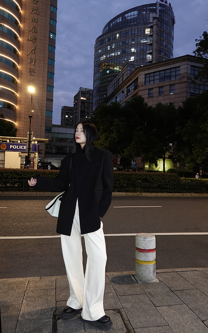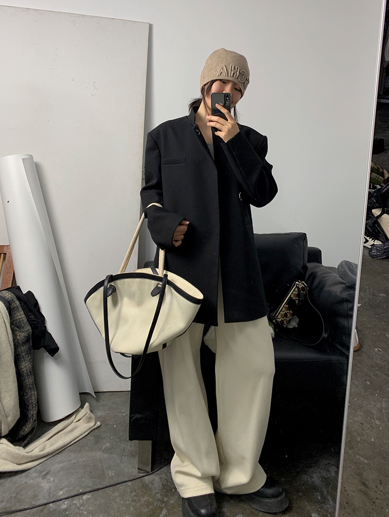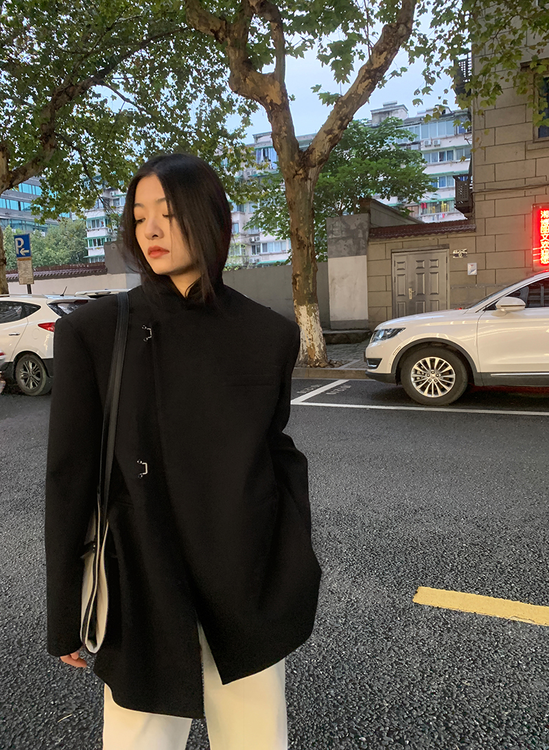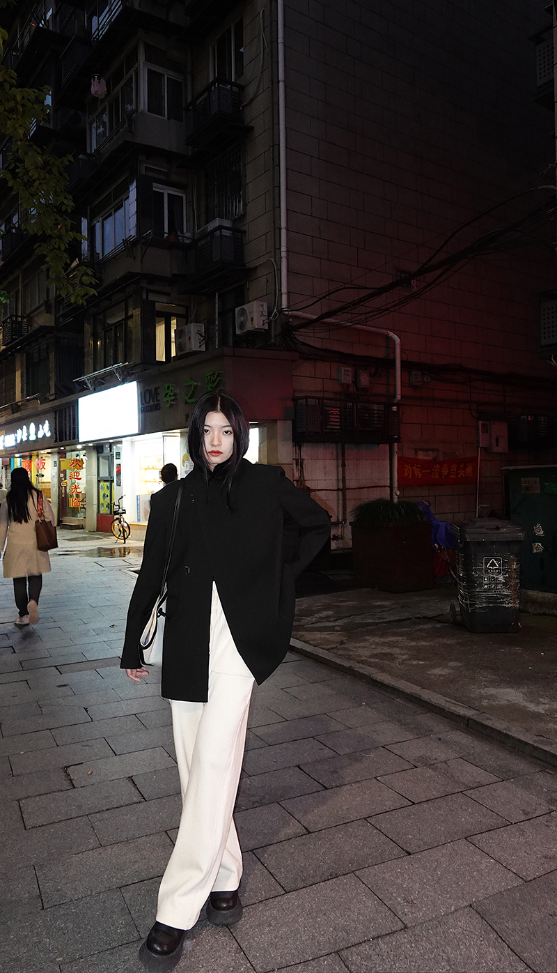 首先說明,這件是洛邊店鋪原創設計,你們看到后期有同款,一定是抄襲,買正版還是仿版是大家的自由,但是還是希望寶寶們支持正版!這樣我們的設計師,才會更有動力給大家設計出更棒的衣服。這件衣服,真的又美又酷,能看到這里的寶子們,只能說我們審美一致,加購收藏的寶們,你不要再猶豫了,這件一定是我近幾年很棒的版型中優質的版型。這件也一定是你曾經買過的西裝中,起碼可以打敗白分之90的版型。此款金屬扣真的是天時地利人和的加在了這件衣服上,要是前幾年中國風不流行的那陣子,這件衣服一定是無人問津,但是今年就不一樣了,今年的盤扣和金屬扣大張旗鼓的火了一把,希望喜歡的寶們不要再猶豫了,深冬季節穿也是妥妥的,面料非常厚實,加上復合,足足有700克,你要知道雙面羊絨大衣也只有850克。 這個最值得一提的里布加棉的運用,里布這次選了非常柔軟的水洗褶皺面料,比普通的里料貴3倍,用這個面料壓棉,會非常輕柔,很親膚,不會硬。這個是定制的褶皺水洗棉里布,不是說舊舊的褶皺沒質感那種,它就是故意有褶皺肌理那種,而不是說它舊,所以這一點我要非常深刻的強調一下,你們上身看舒不舒服就知道它香不香了。。。同時金屬扣也是那種很有質感的金屬扣,不是那種劣質的金屬扣,我們專門定制的,金屬扣存在的意義主要是為了提高設計感,猶如畫龍點睛,設計理念更多的是想展現出灑脫瀟灑飄逸的感覺,不想把衣服扣的死死的,設計師希望人們對中山裝老派的過分正經這類的刻板印象有所改觀。在設計時也想過用暗扣等辦法讓其牢固但是都不美觀,加上此款面料足夠保暖不扣緊鎖溫性也很高,最終決定還是保留了最開始的設計方案。所以此款紐扣的功能性,在動作活動大的情況下有點容易解開,正常情況下不會解開。只是達不到扣的緊緊的效果。介意者慎拍!