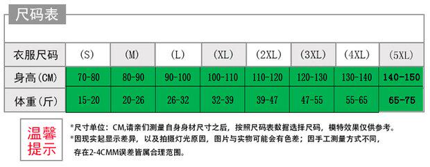 尺碼表: