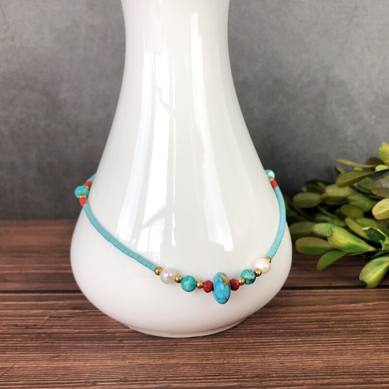 材質:蠟線 松石 銅珠 尼泊爾銅珠