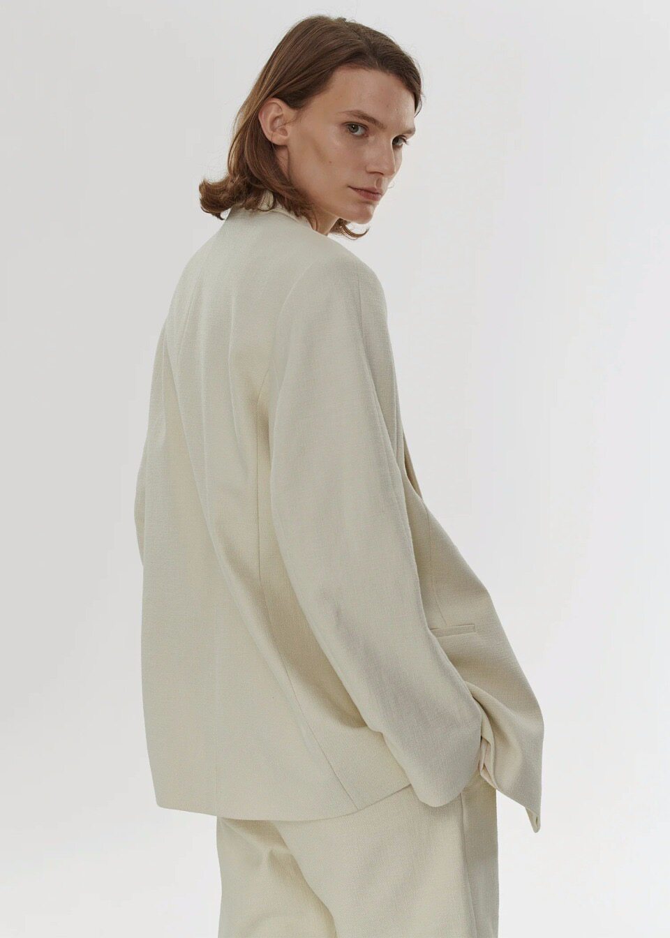 像這種廓形西裝不夠硬挺就會顯得非常LOW!為了達到原版的效果,等了好幾個月才爭取到的少量原廠面料~