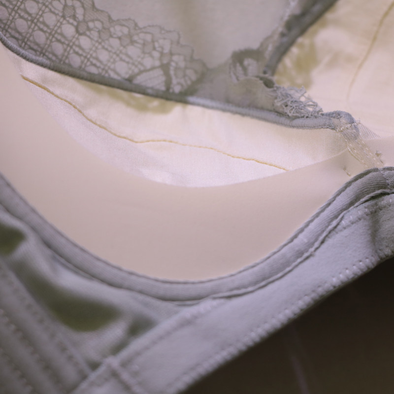 特色賣點:親膚棉半片式無鋼圈車縫杯,杯內貼合茯苓紗面料,親膚透氣,呵護乳房健康,立體側收上托結構,柔軟提托,讓胸部更聚攏。燦爛唯美的花卉蕾絲花邊,時尚菱格,以優雅的深V視覺呈現,輕透性感,若隱若現更顯精致時尚的朦朧美,U型后比位平復后背的脂肪,達到更好的收副乳作用。雞心搭配著精美花仔,亦是一種性感時尚的小心機。