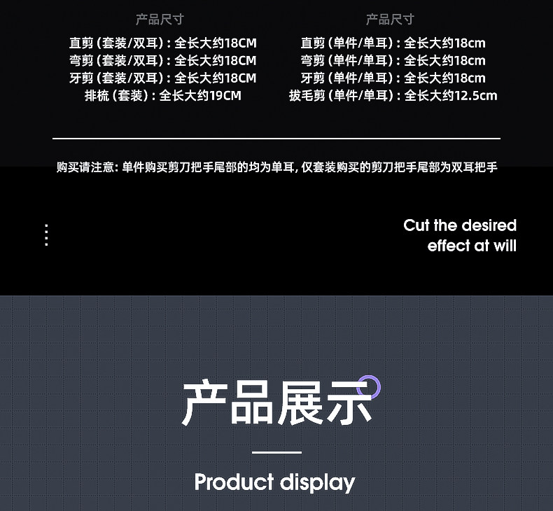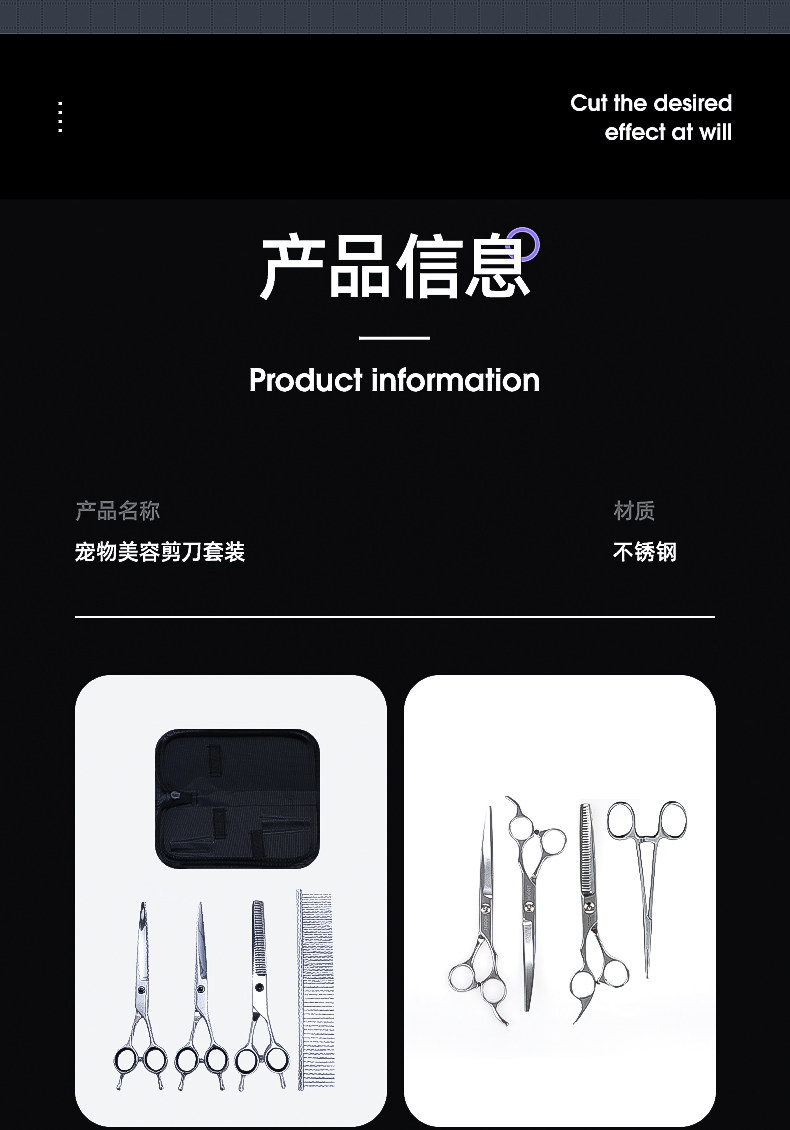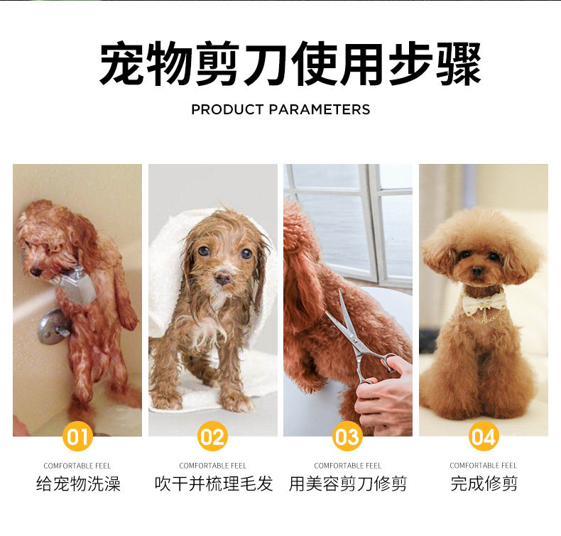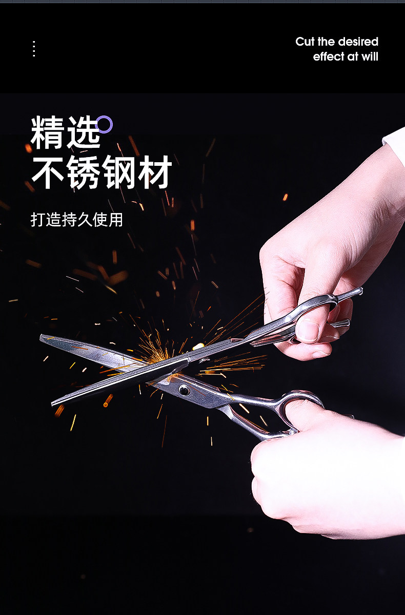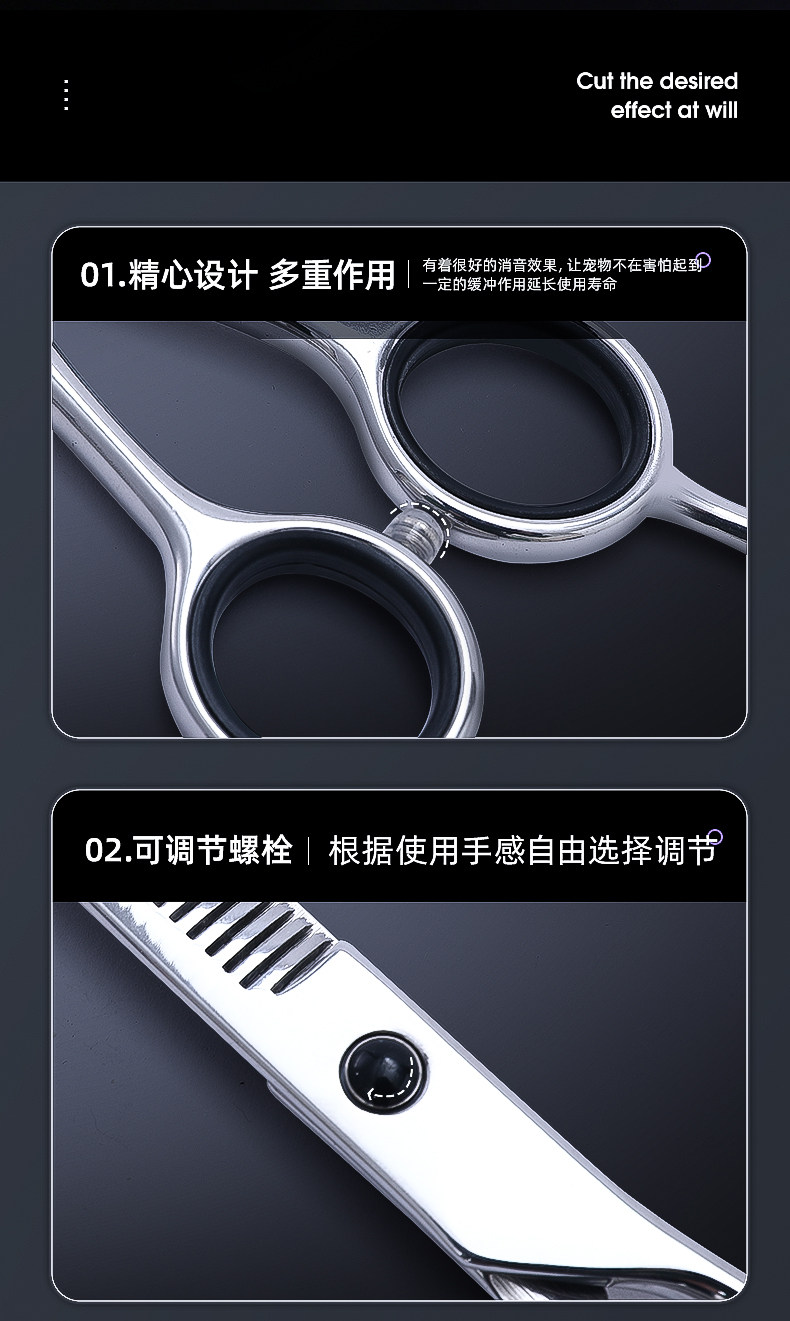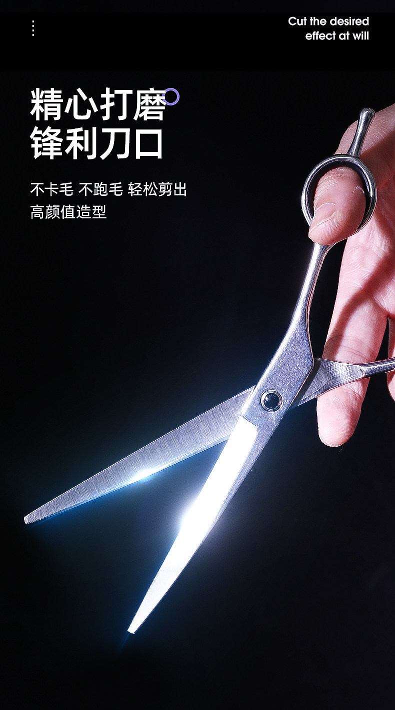 7寸直剪|適合打薄毛發,是寵物日常美容常備的工具。其長度適中,方便整體和局部造型修剪,一般配合牙剪使用更能修剪出理想的造型。也可作為電推剪修剪之前的長毛輔助剪短。