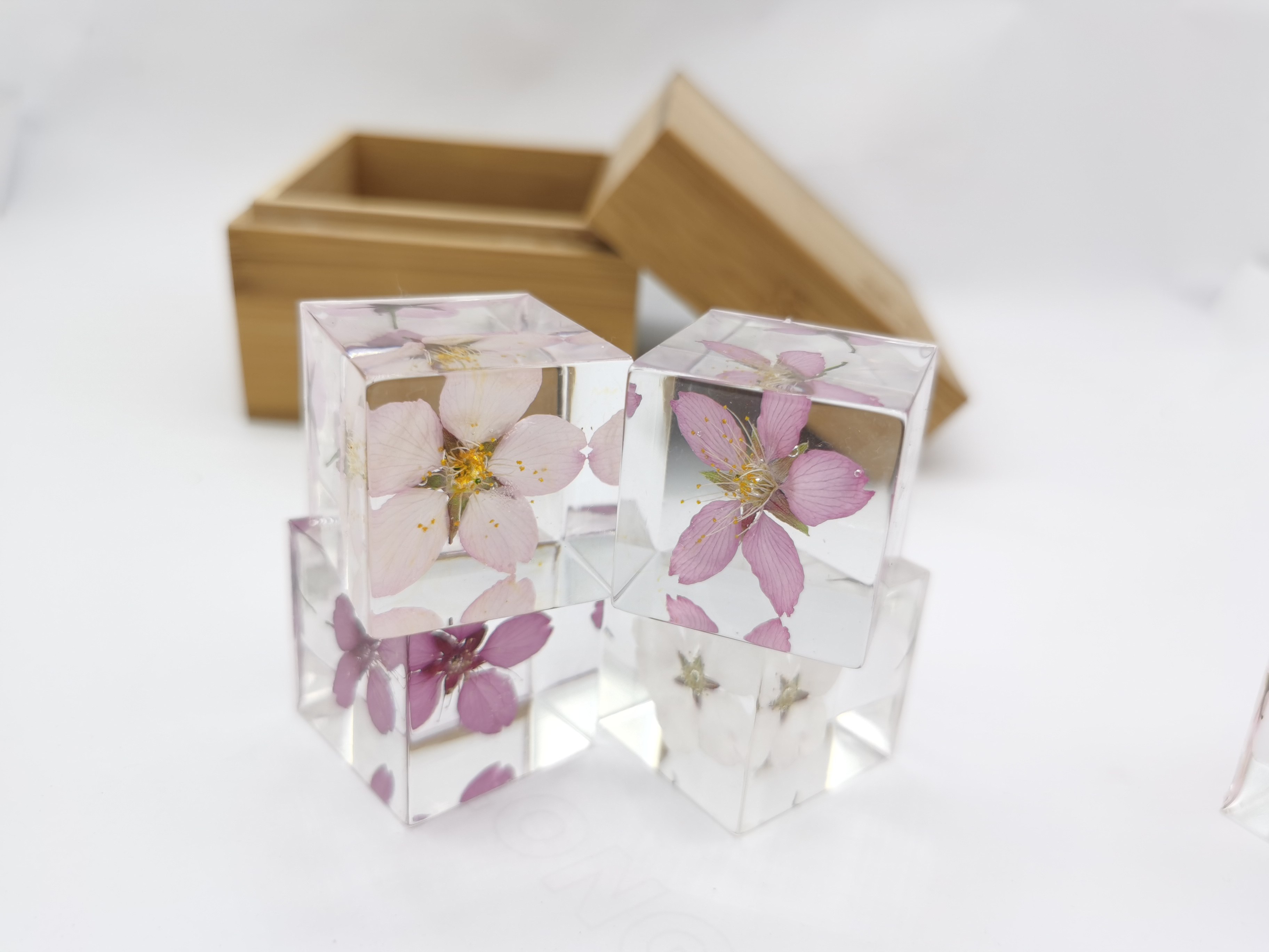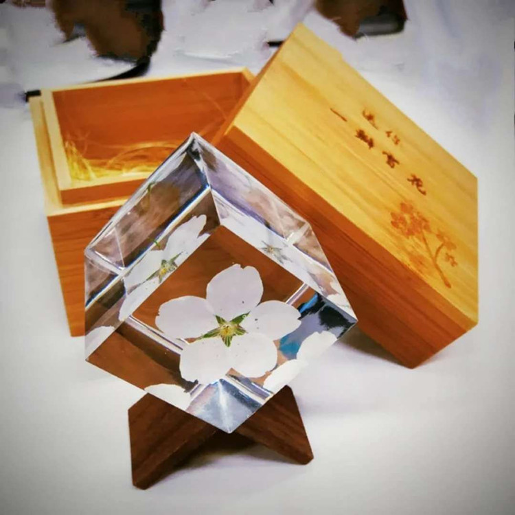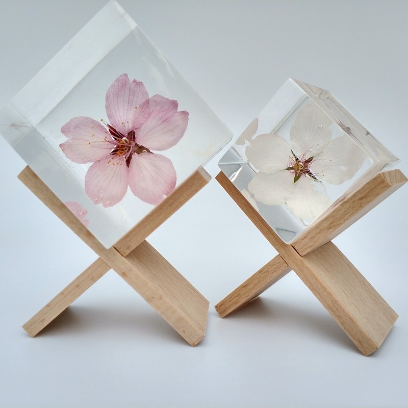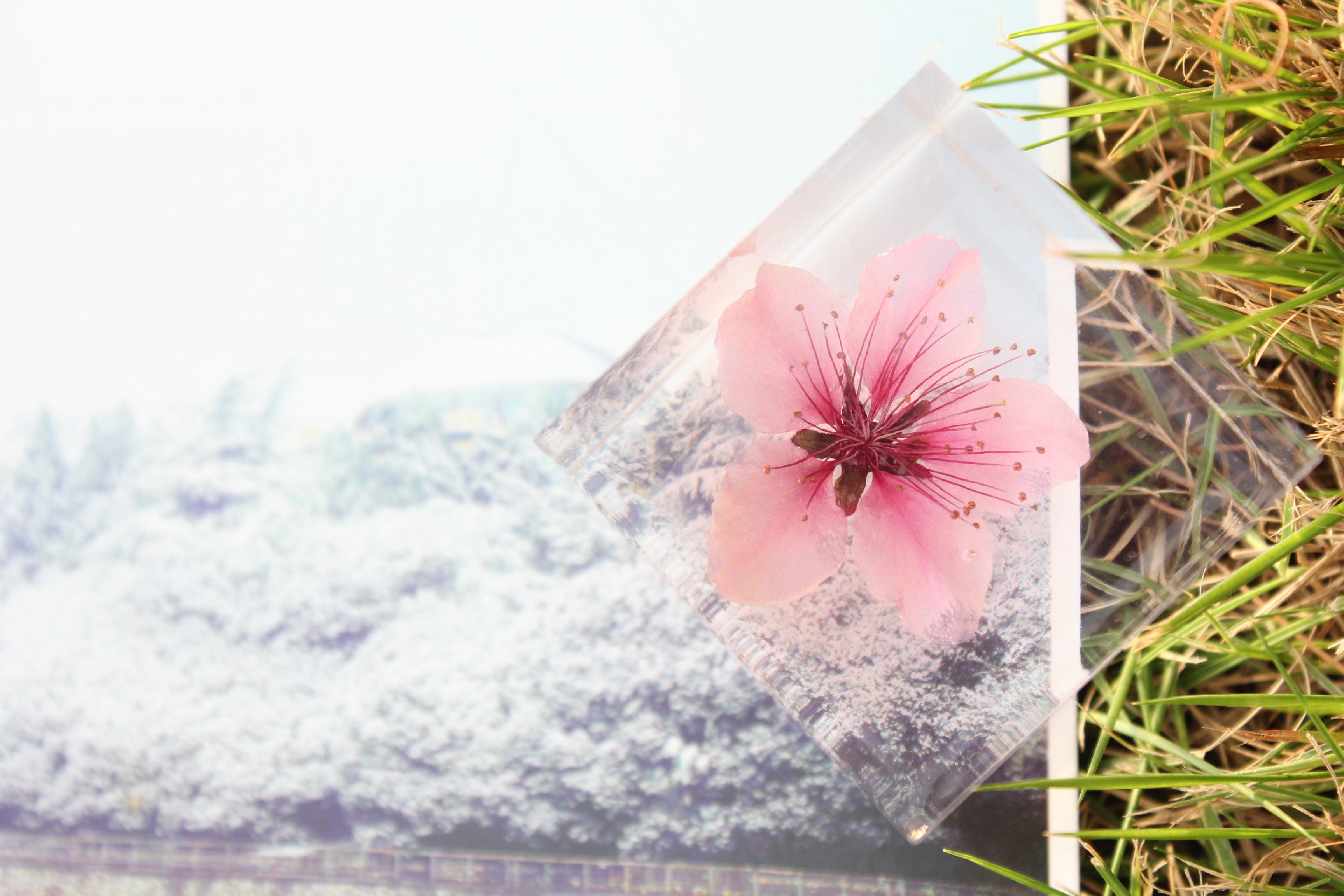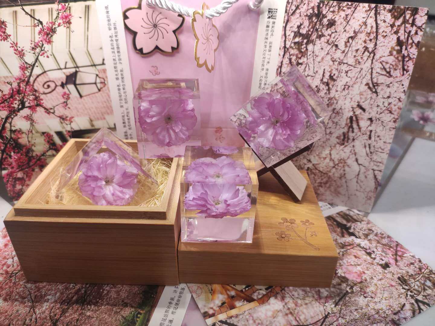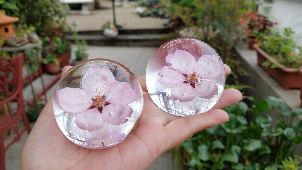 內部為真櫻花,外面材質為水晶滴膠,全都是手工制作,每朵花都有不一樣的美。