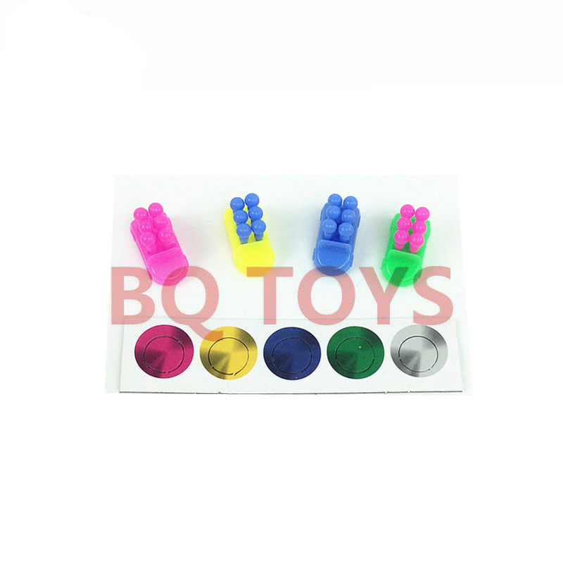 1張小卡片籌碼(5粒顏色籌碼),彩色游戲說明書一張。
