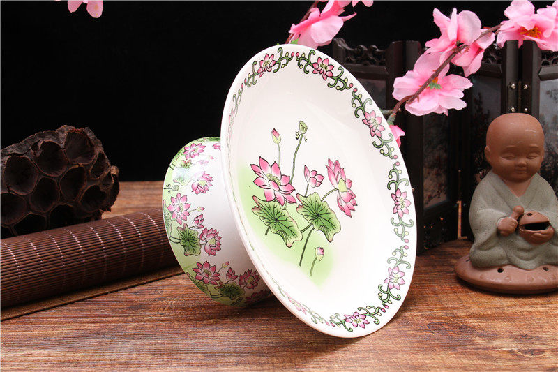 品名:手繪白蓮花供盤規格:6英寸 直徑15.3CM 高7CM 重量:400克規格:7英寸 直徑17.2CM 高8.5CM 重量:550克規格:8英寸 直徑20.7CM 高9.5CM 重量:900克規格:9英寸 直徑23CM 高1.5CM 重量:1300克