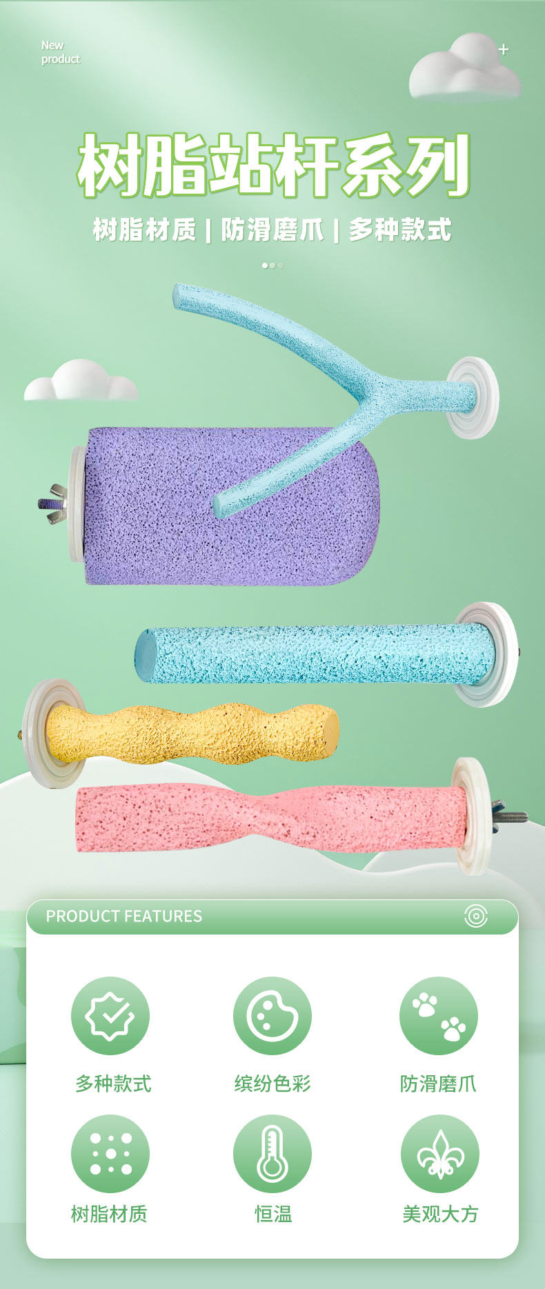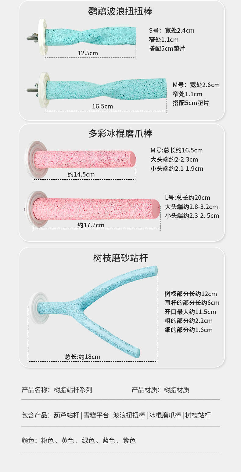 刺星球鸚鵡多彩雪糕平臺防滑磨爪棒 樹脂恒溫棲息站桿站棒