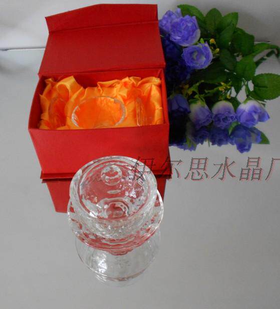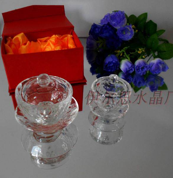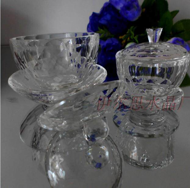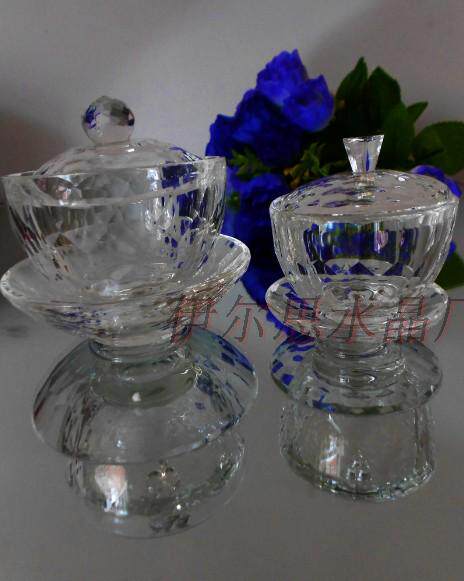 此款大悲水杯由一個杯蓋、一個杯身和一個底座組成,全部為人造水晶精工制作。