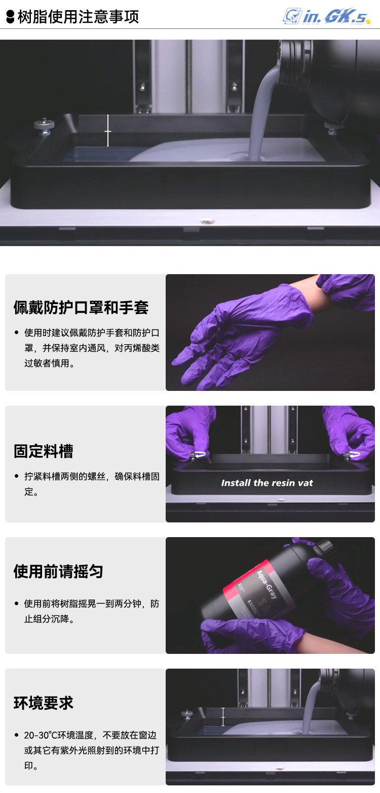 3.如不慎讓樹脂進入了眼中或口腔中,請立即用大量清水洗凈,如 有不適適立即咨詢醫生。