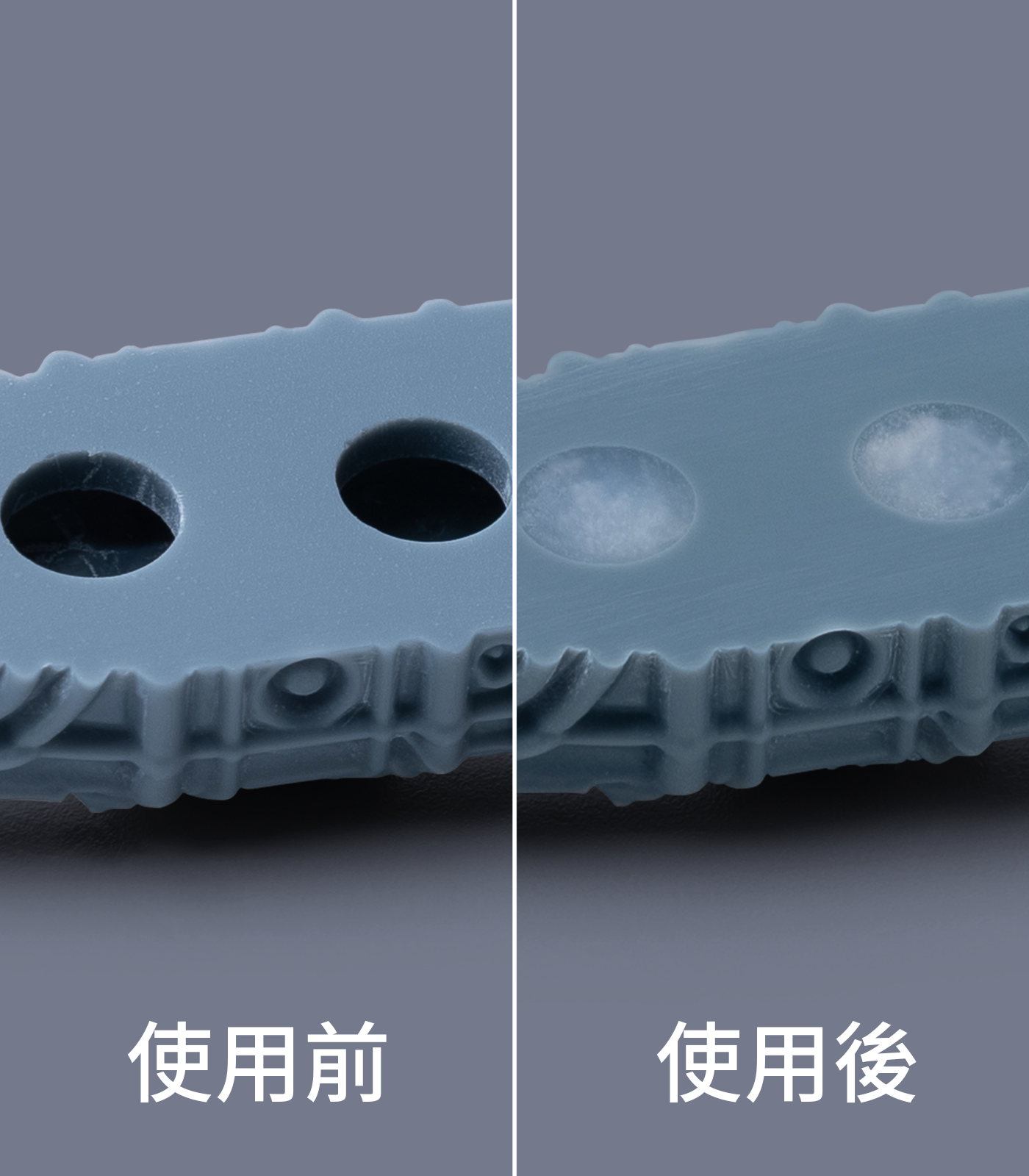 - 涂抹厚度1mm-8mm時,固化照射時間約15秒~3分鐘。實際固化時間請依厚度做調整。
