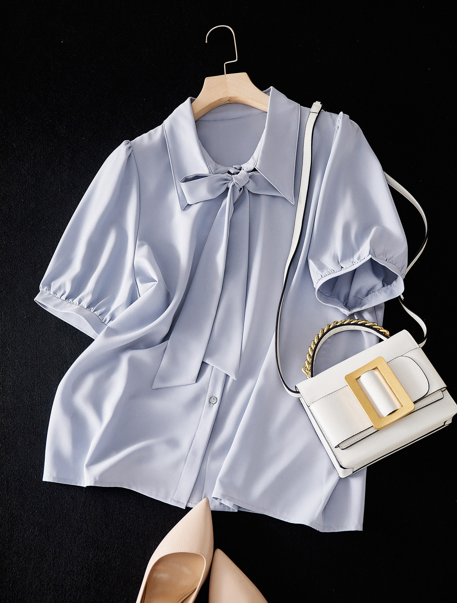 萬能實穿的飄帶襯衫,用明凈藍帶出清澈又清涼的氛圍感