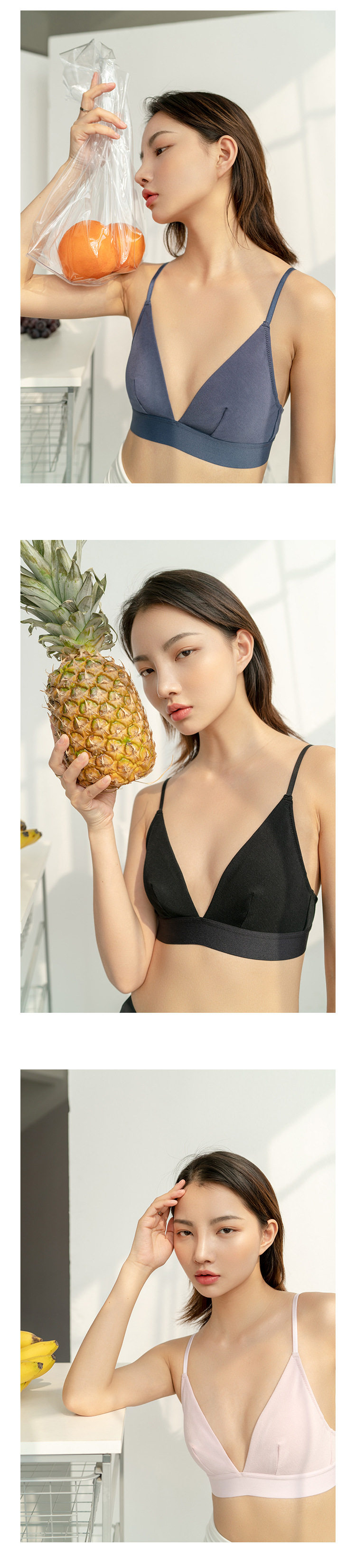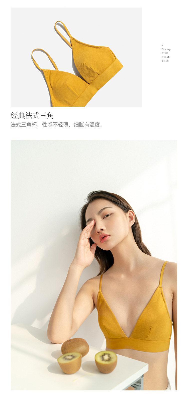 簡潔的法式無鋼圈深V三角杯文胸,小胸也可以穿出性感的感覺