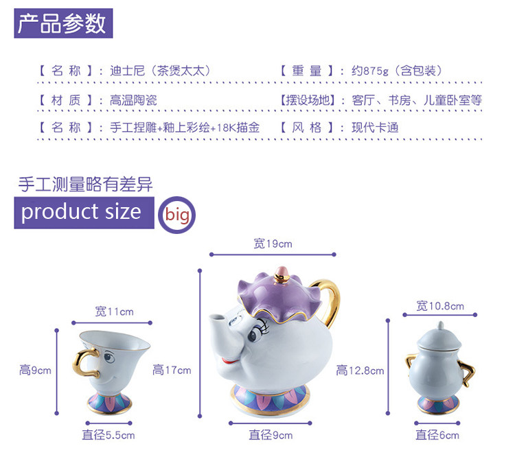 18k鍍金陶瓷版茶煲太太和阿奇四件套裝