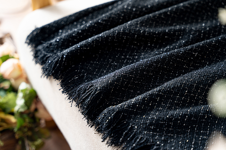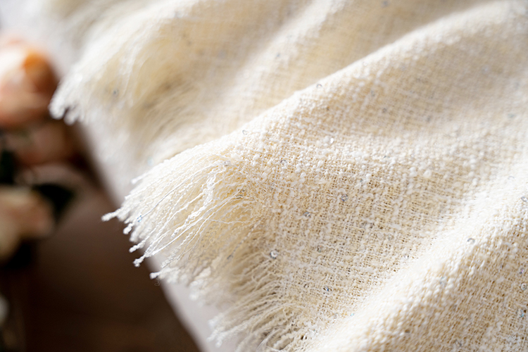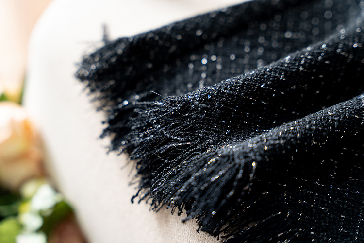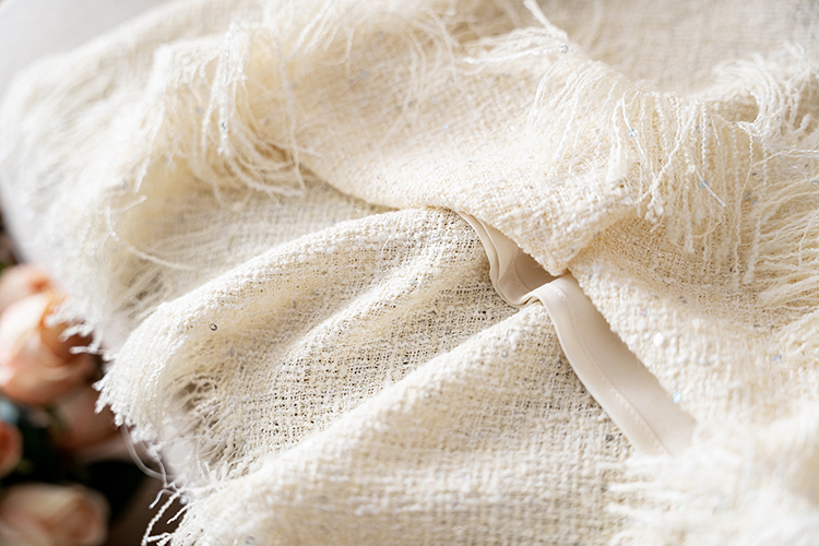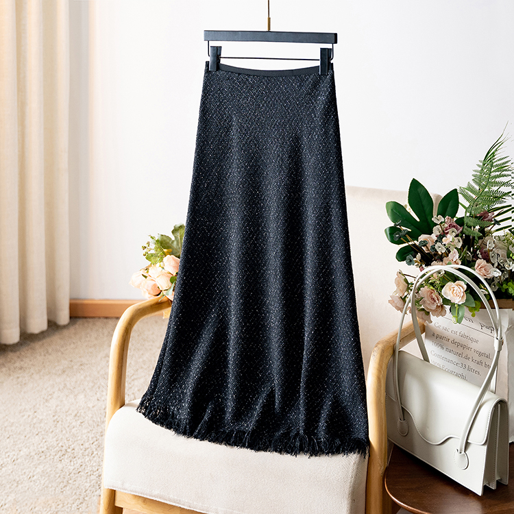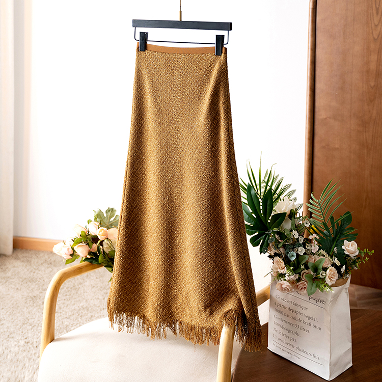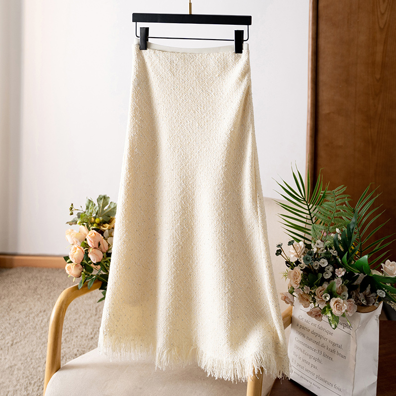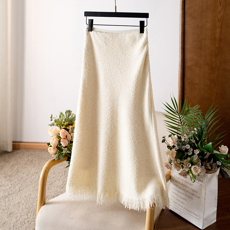 松緊腰+銀絲粗花呢+下擺流蘇設計