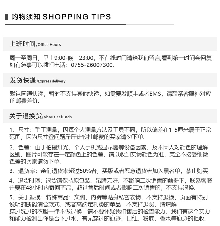 ![]() | 溫馨提示: 每個人體型和穿衣服風格不同,以實際上身效果為準! |