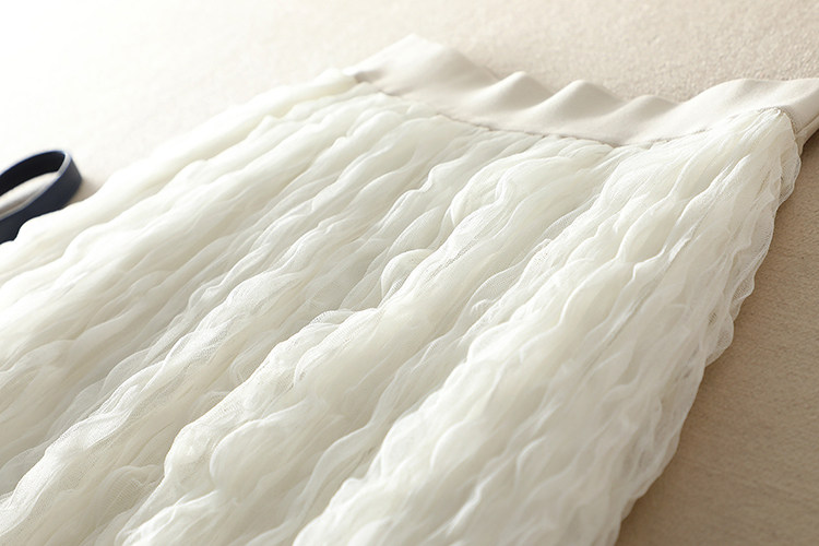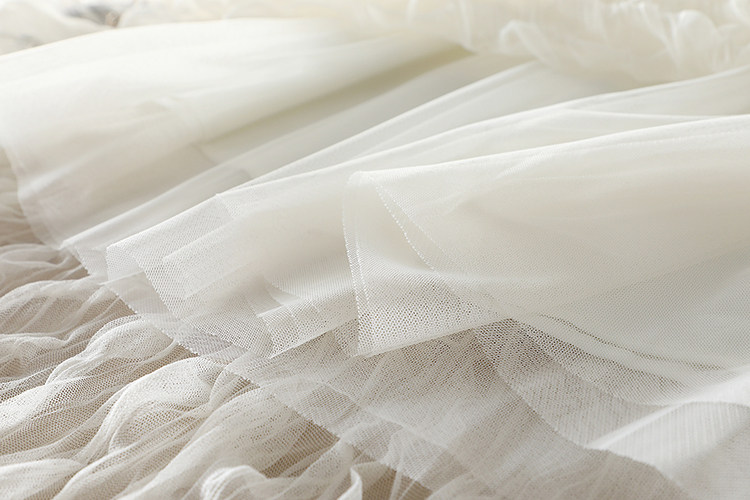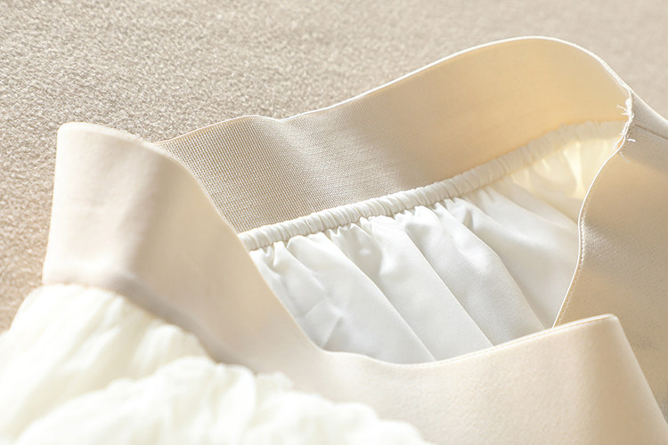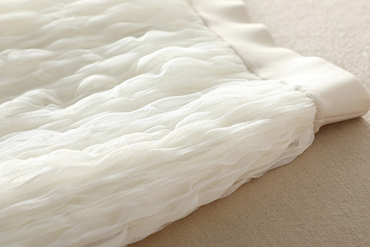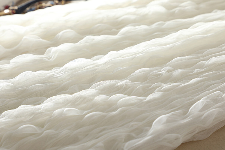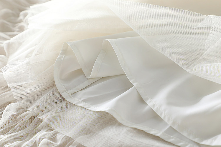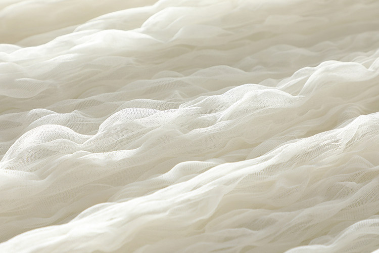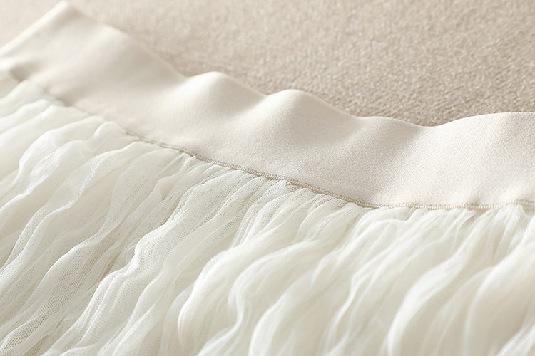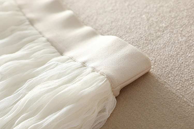 選用優質進口網紗面料,特種機器重工壓褶,色澤明亮、細膩通透,面料扎實,軟硬適中,耐穿又美觀。親膚舒適里襯,這絕對是奢華用料了。