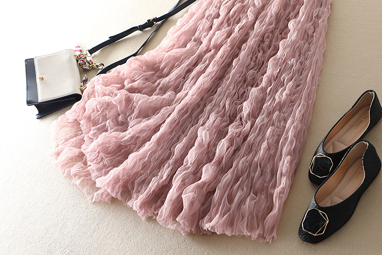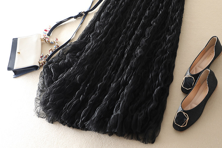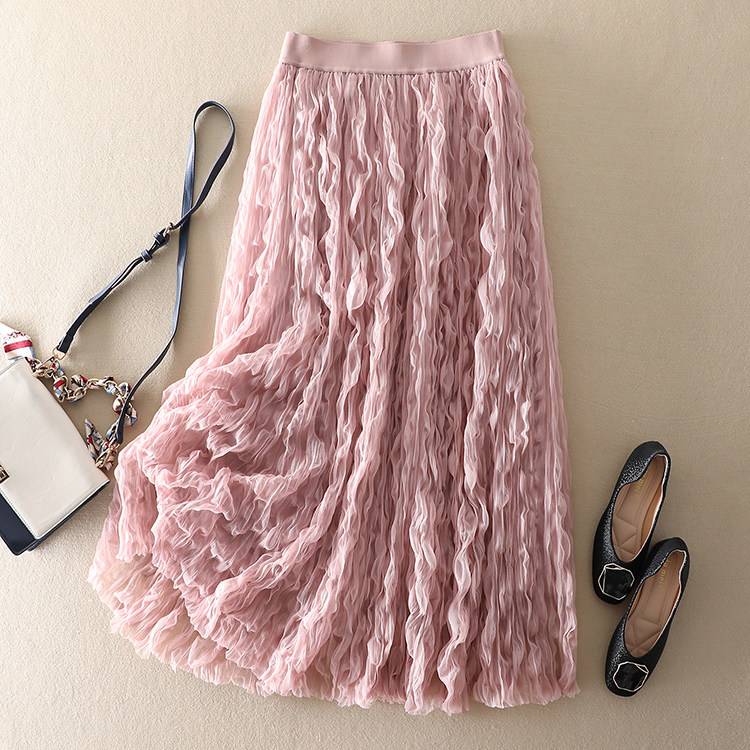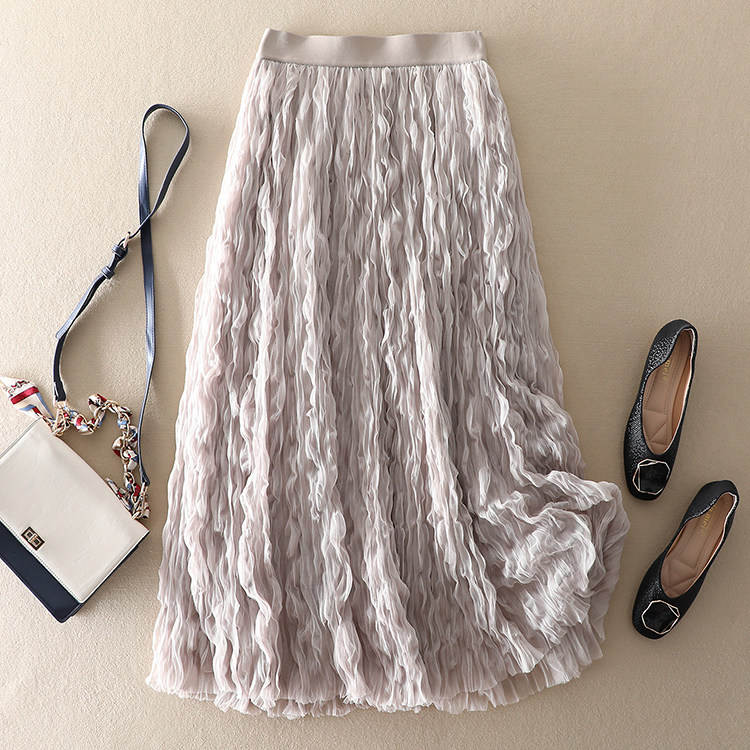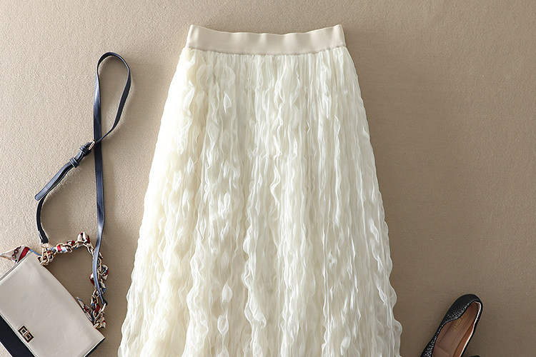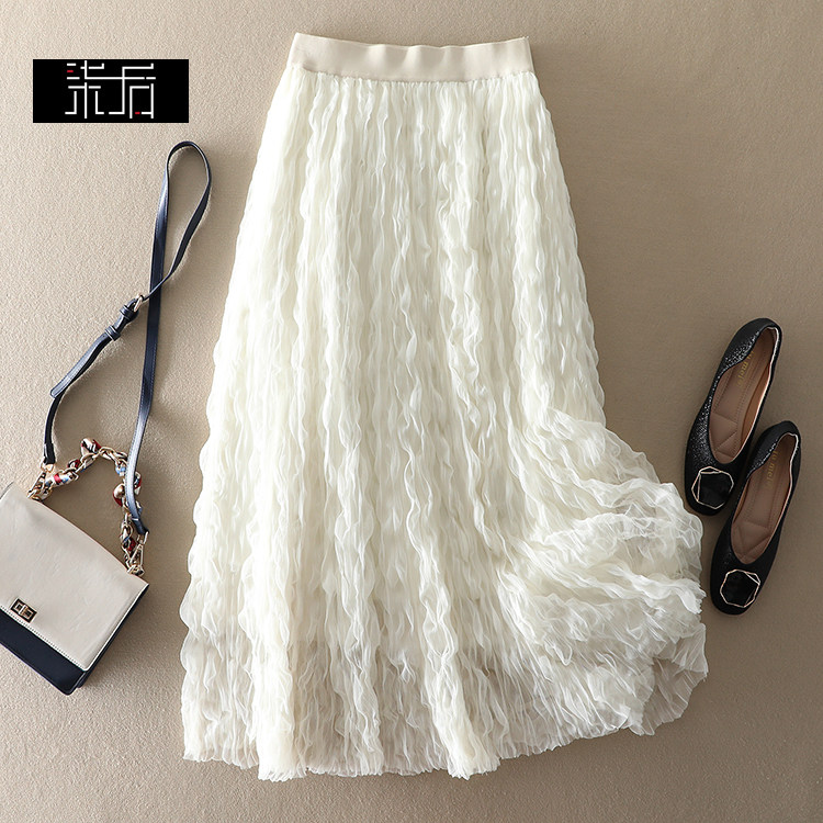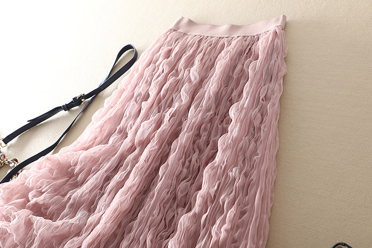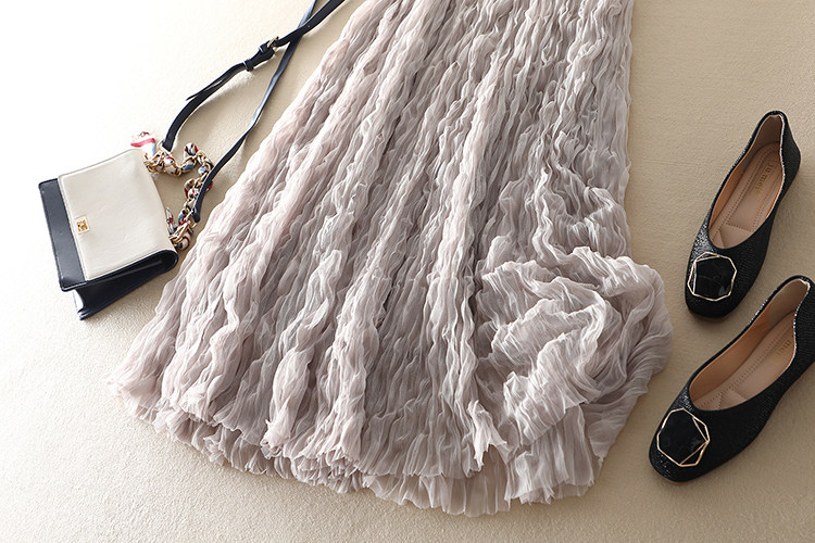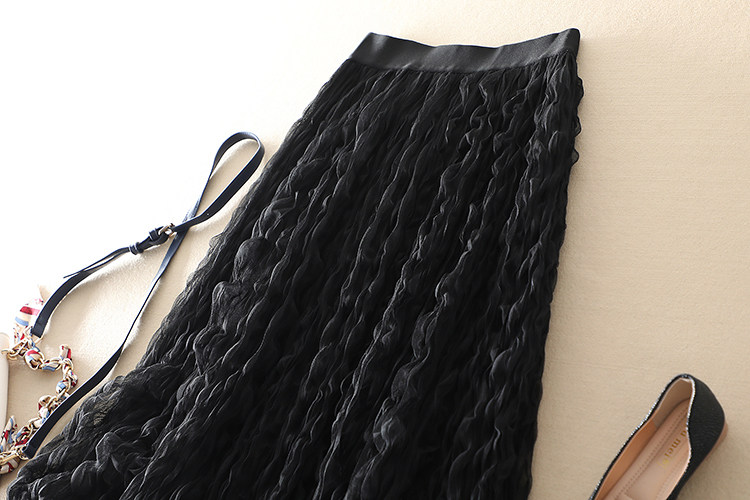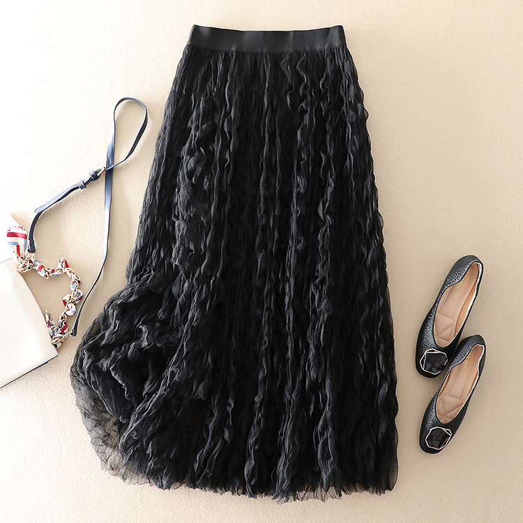 商品名稱: | 波浪卷壓褶高腰顯瘦網紗半身裙 |