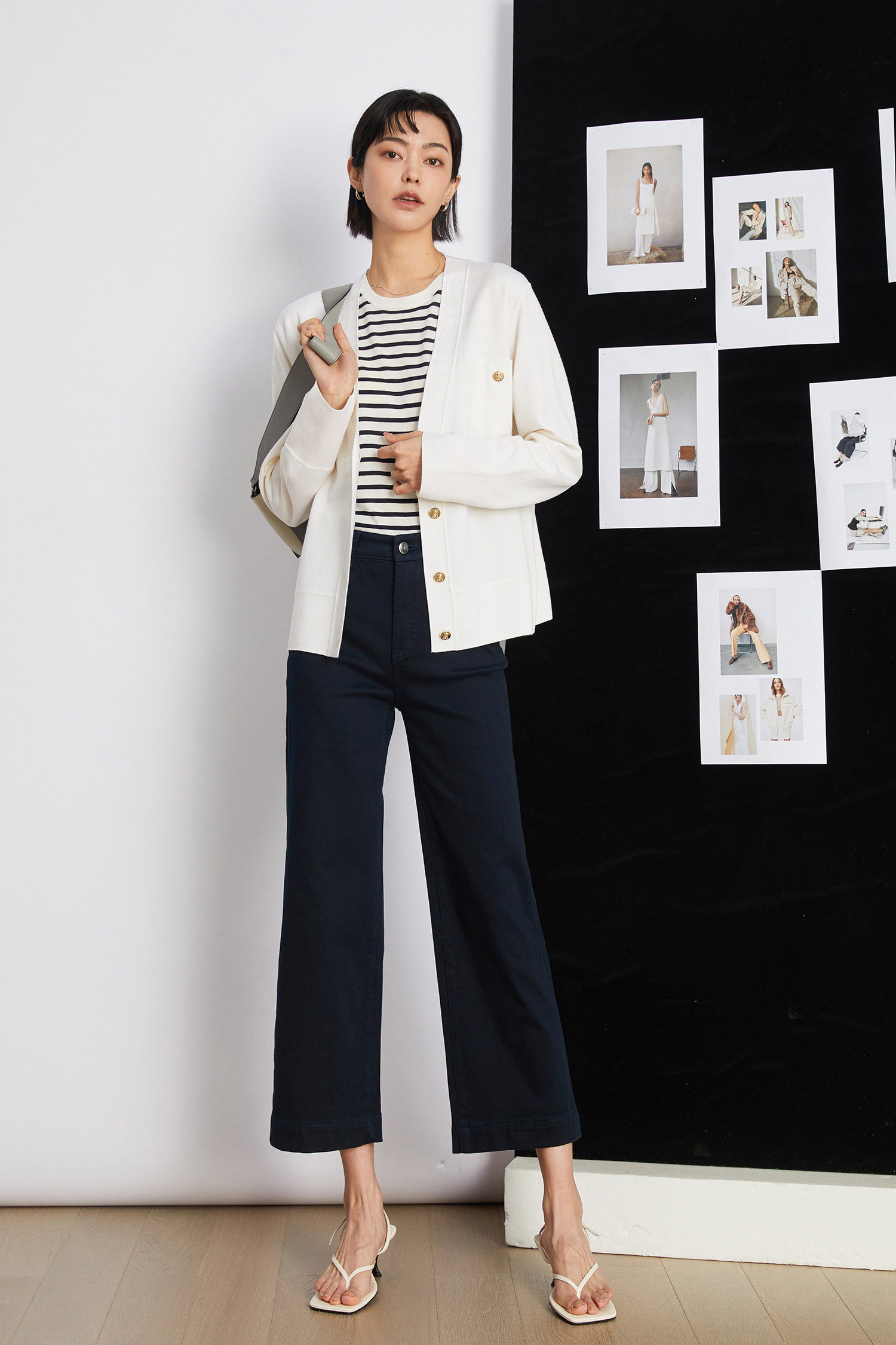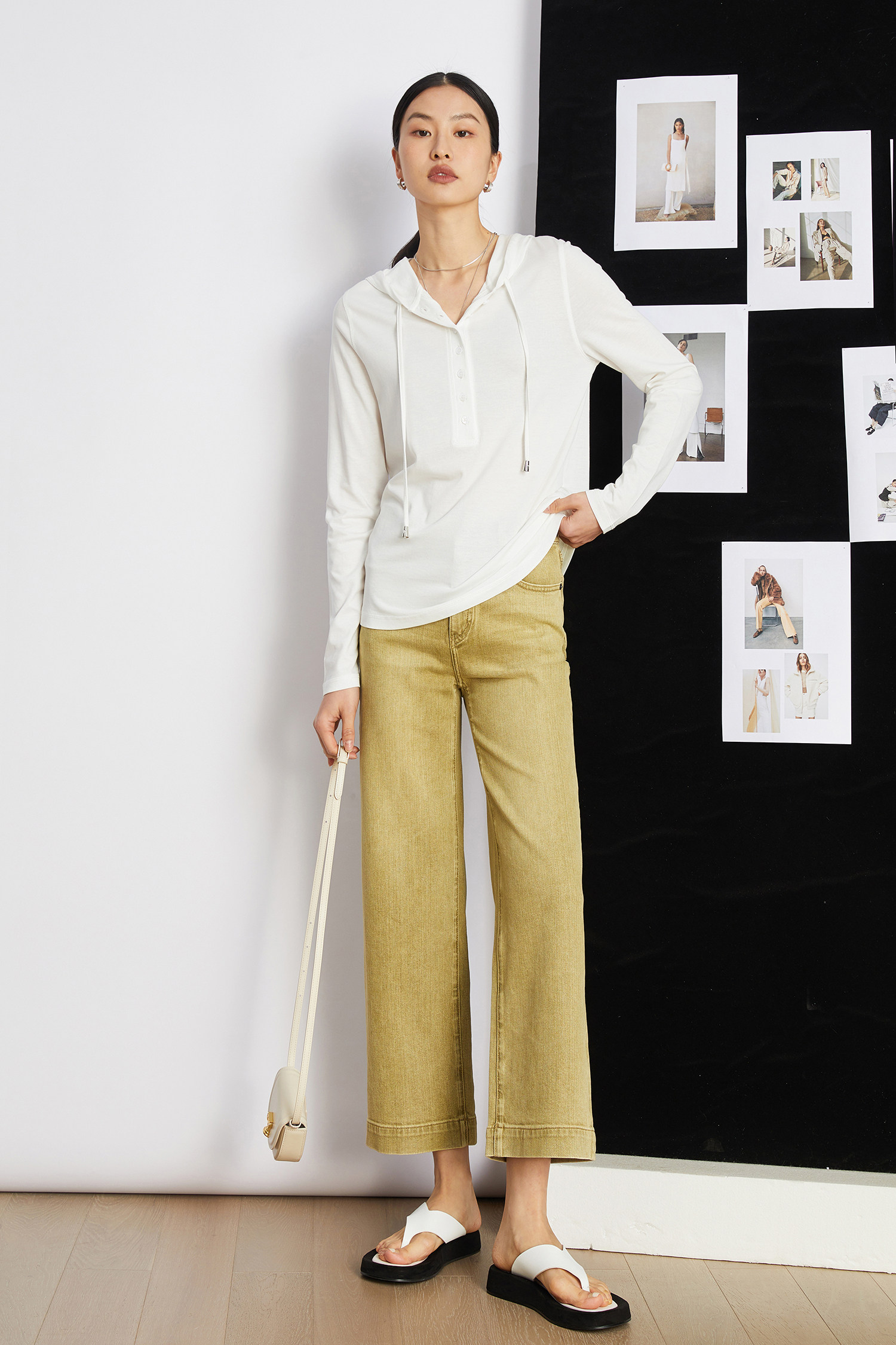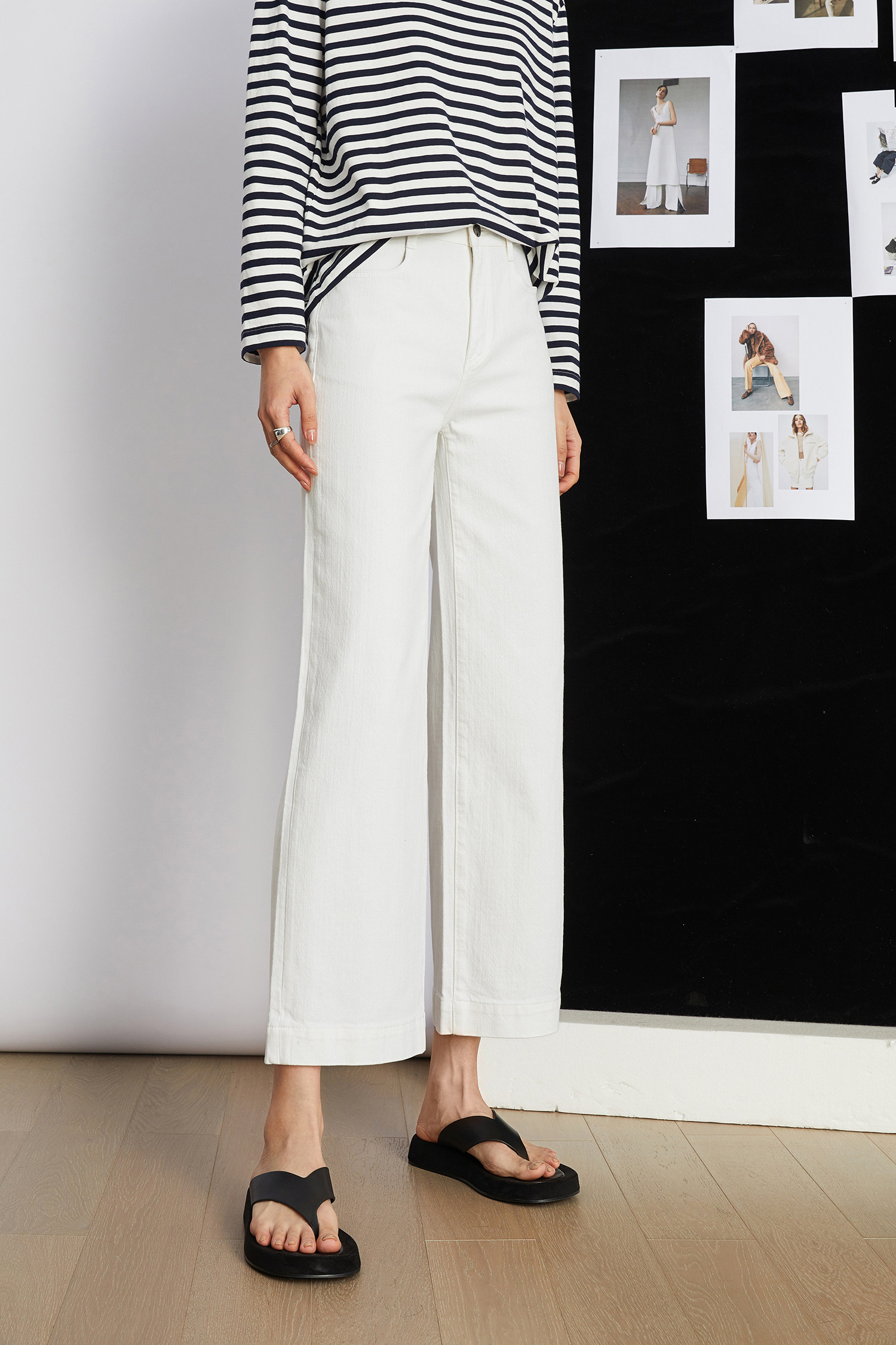 短闊腿版型相比較拖地褲會更適合天暖時,