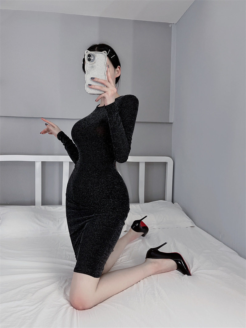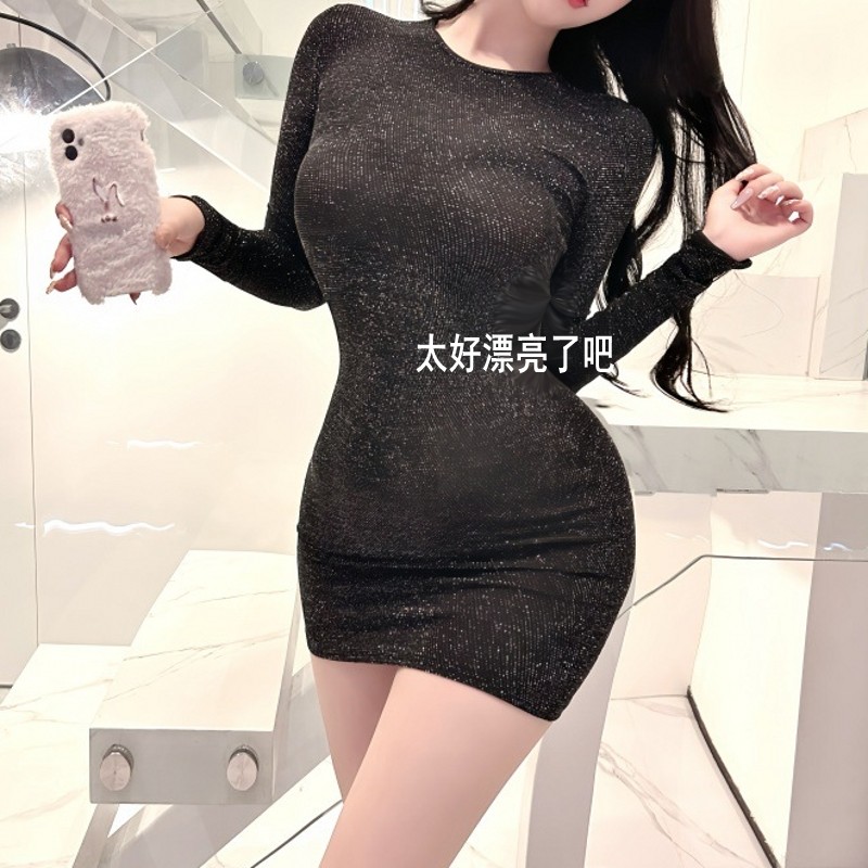 本品采用四面彈力纖維制作 ,閃亮絲;緊身包臀短裙, 微微露臀遮不住的誘惑,上身效果漂亮性感,平常都可以穿出去的哦