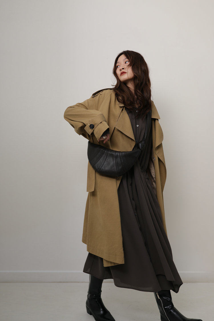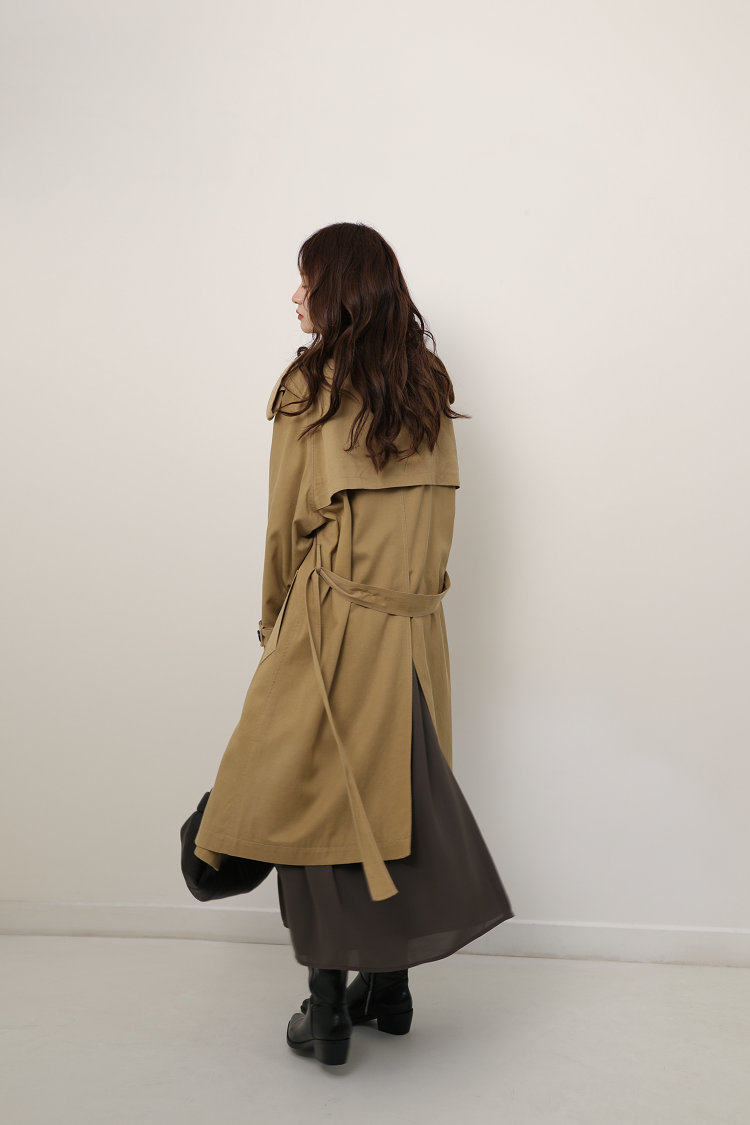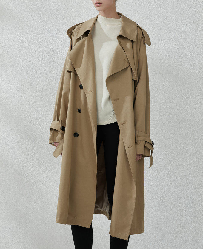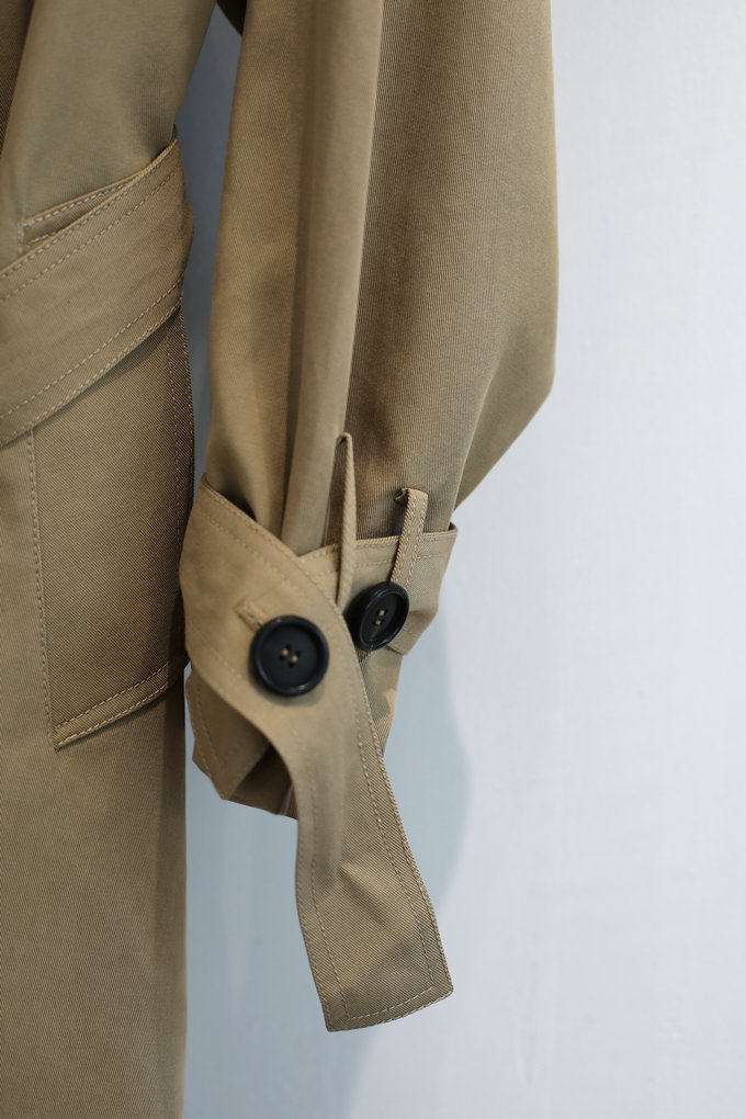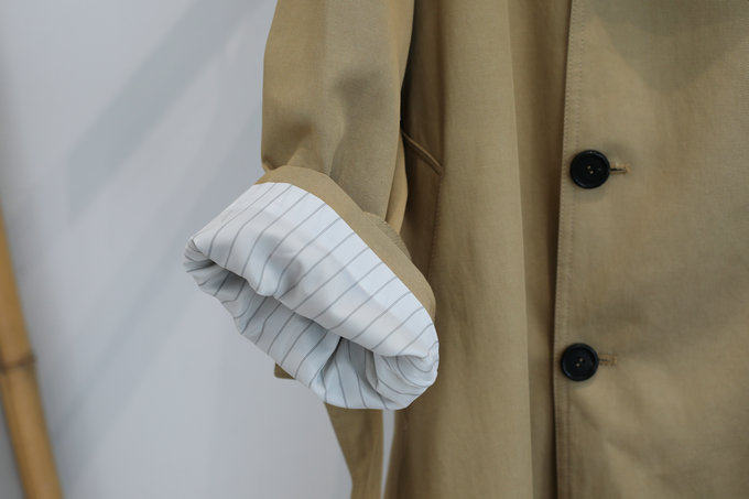 這款風衣的面料非常的柔軟、垂墜、飄逸,不是硬挺的挺闊面料