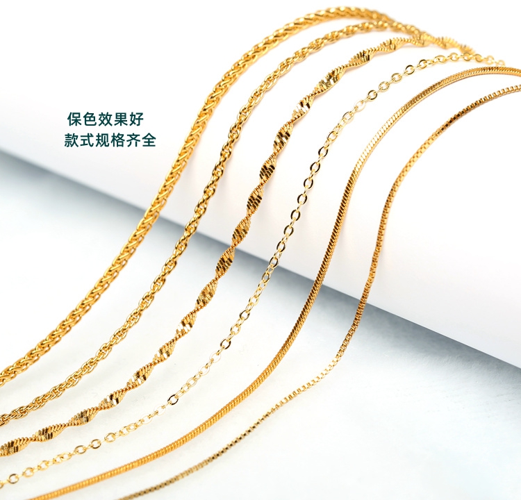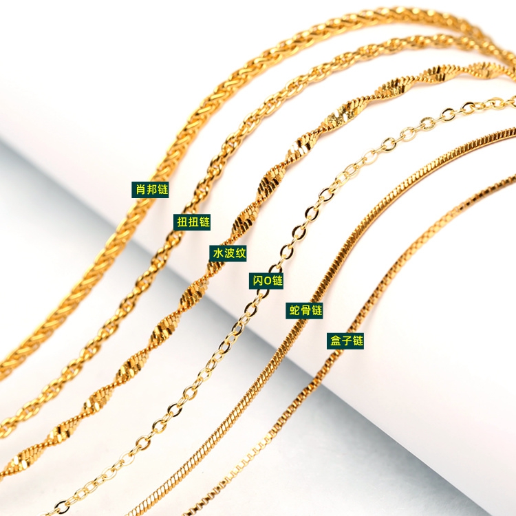 【寶貝品名】:越南沙金項鏈鎖骨鏈閃O鏈蛇骨鏈萬能項鏈女細款水波紋肖邦扭扭鏈
