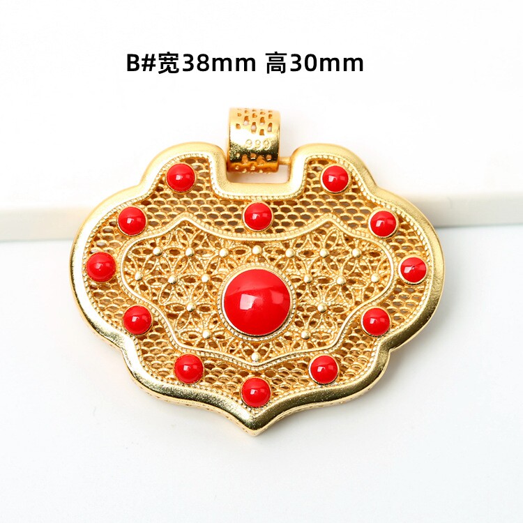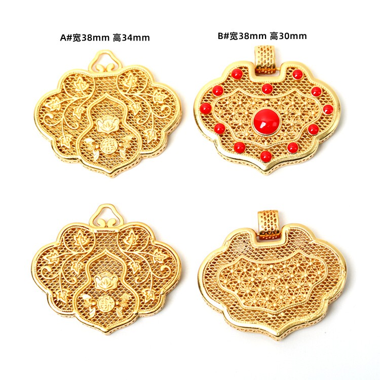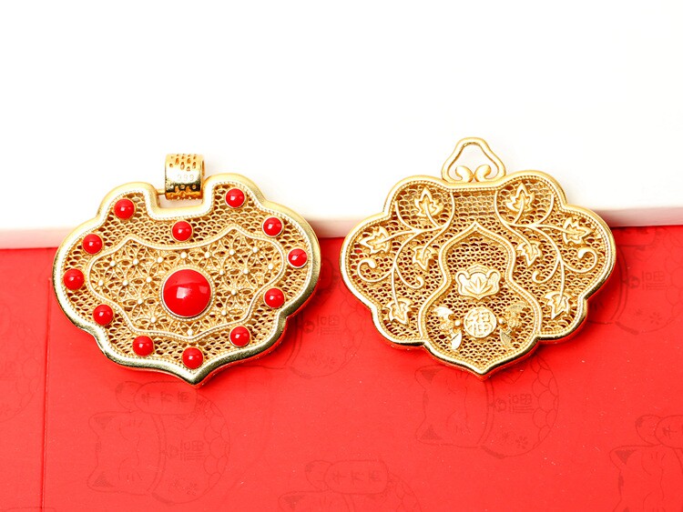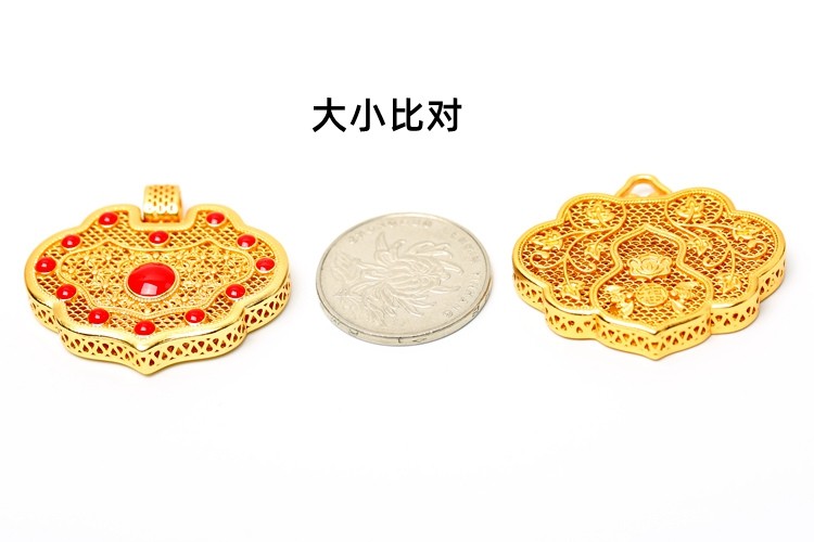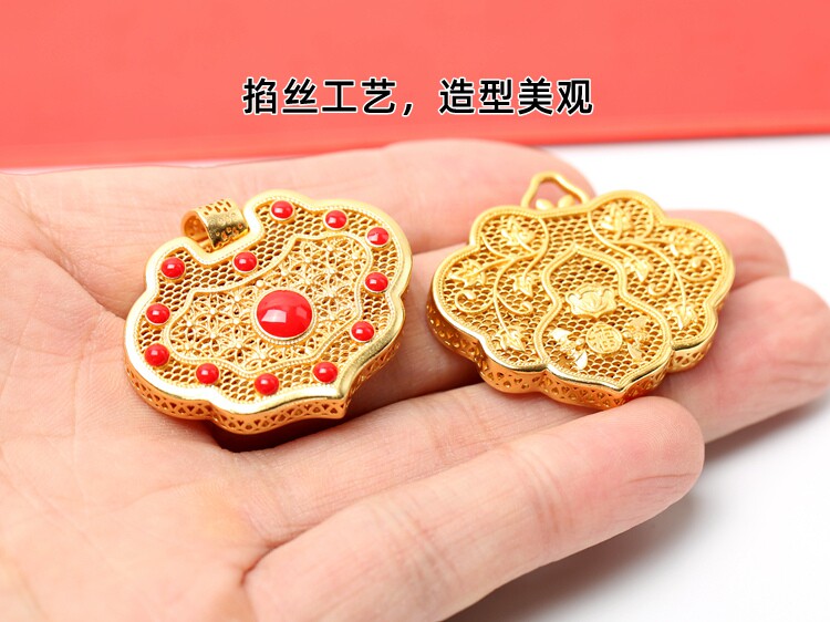 【寶貝品名】:包郵越南沙金吊墜掐絲景泰藍滴油平安鎖項鏈鎖骨鏈配飾diy配件