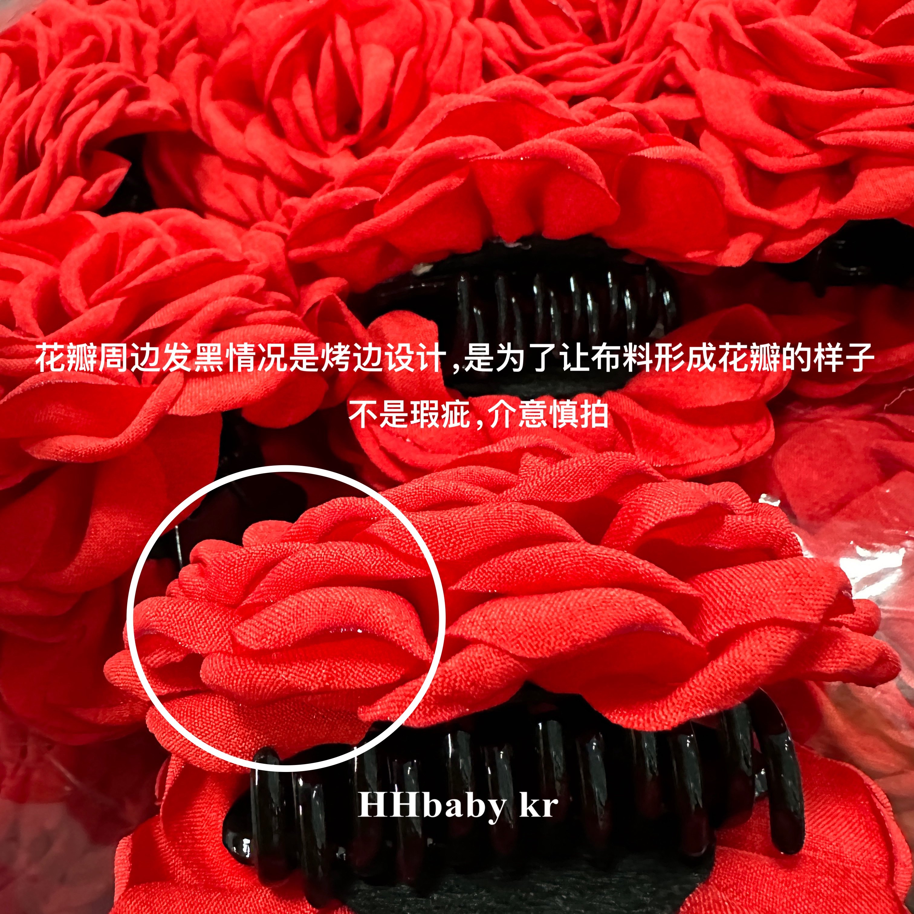 PS:花瓣周邊發黑情況是拷邊設計,是為了讓布料形成花瓣的樣子,不是瑕疵