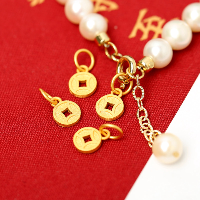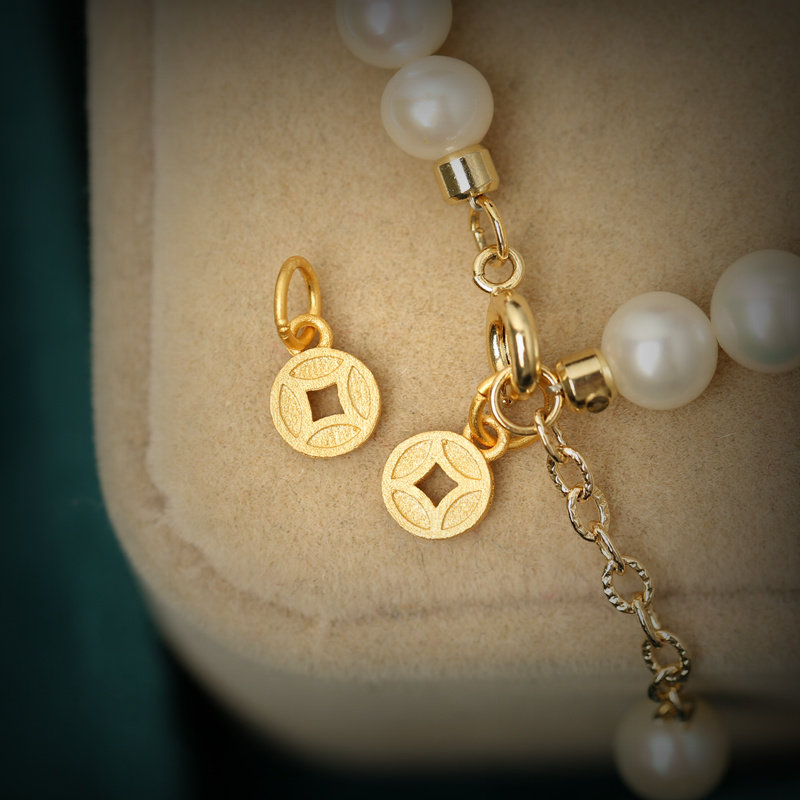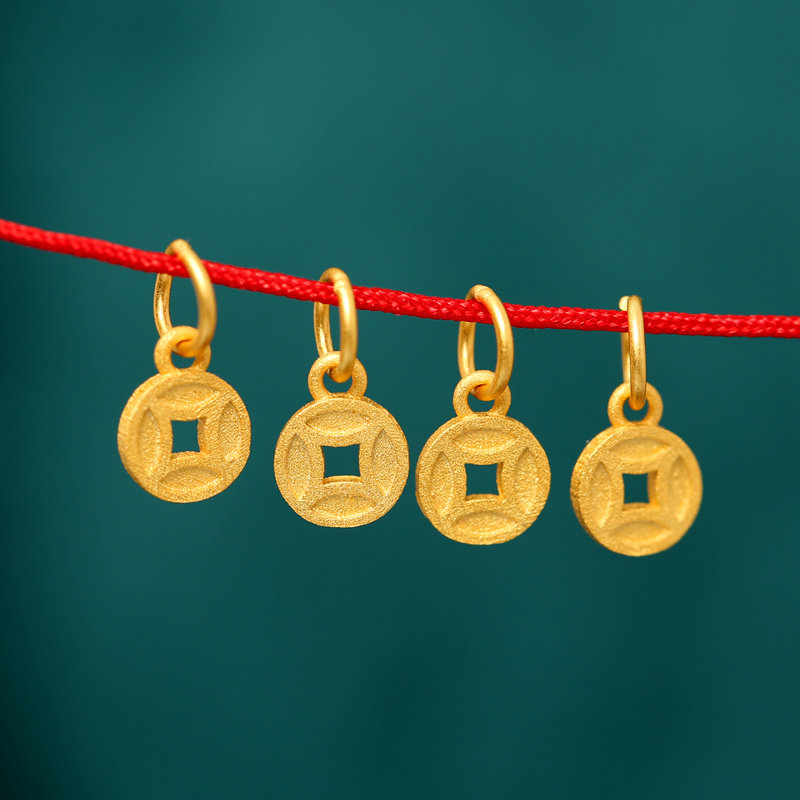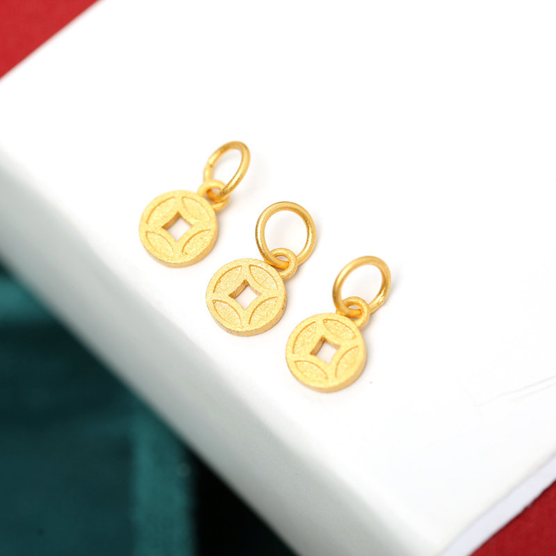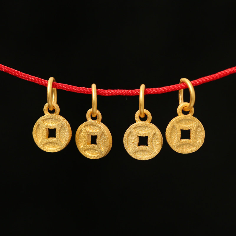 【寶貝品名】:925純銀鍍金錢幣小吊墜DIY手鏈手串掛件飾品配件手編繩古法銀掛墜