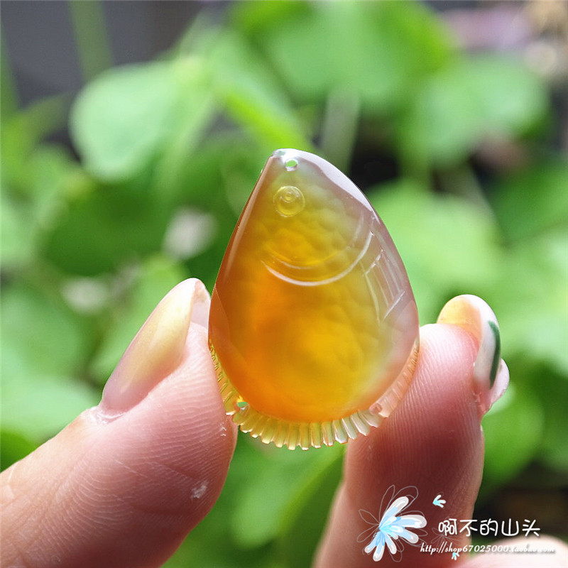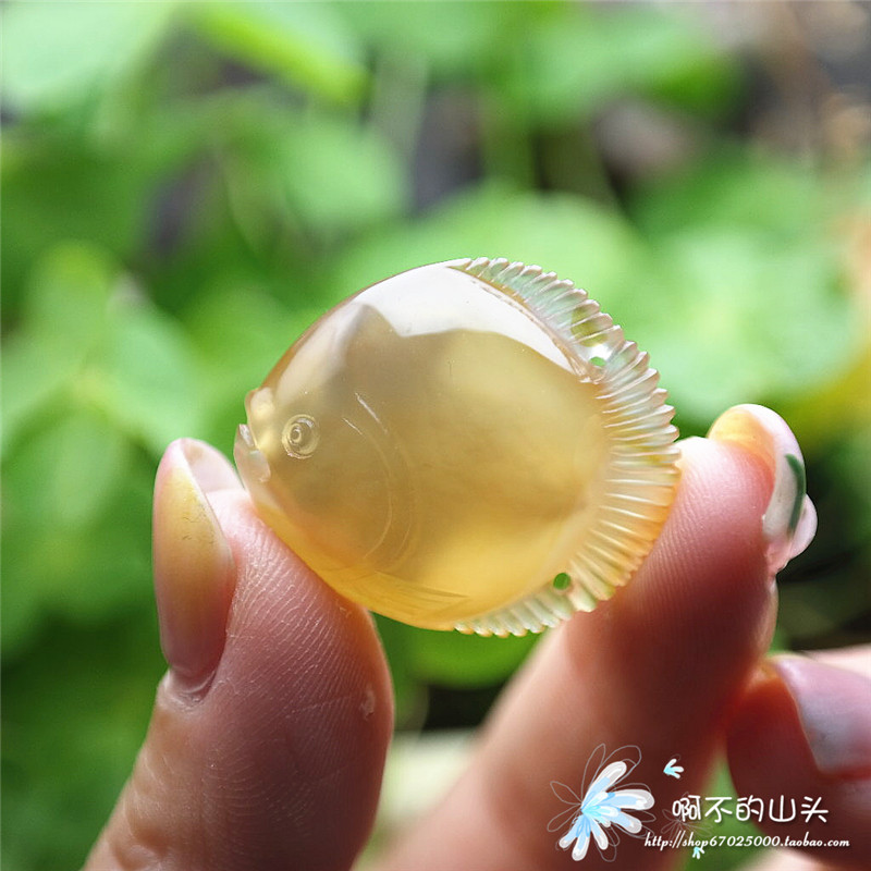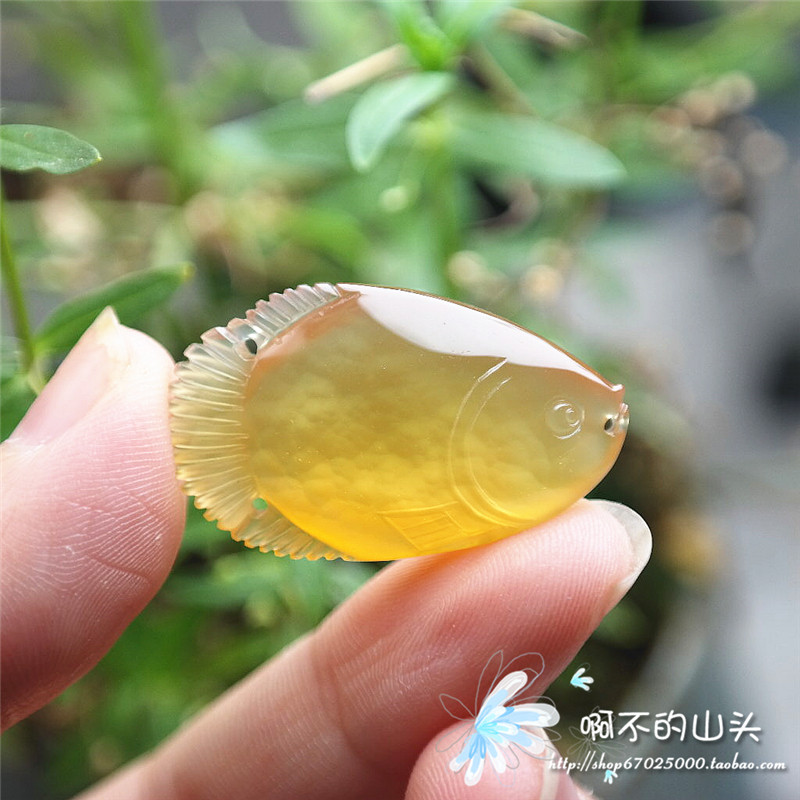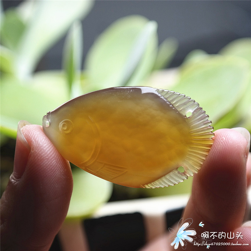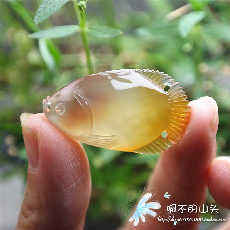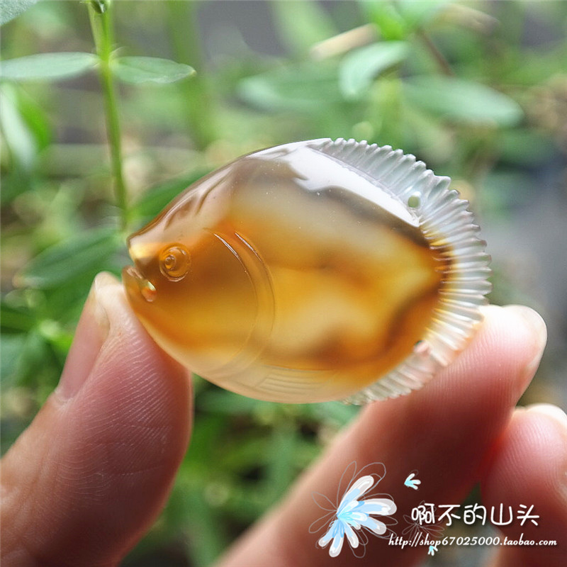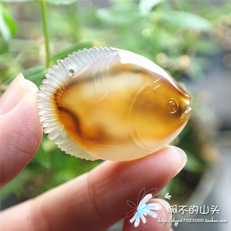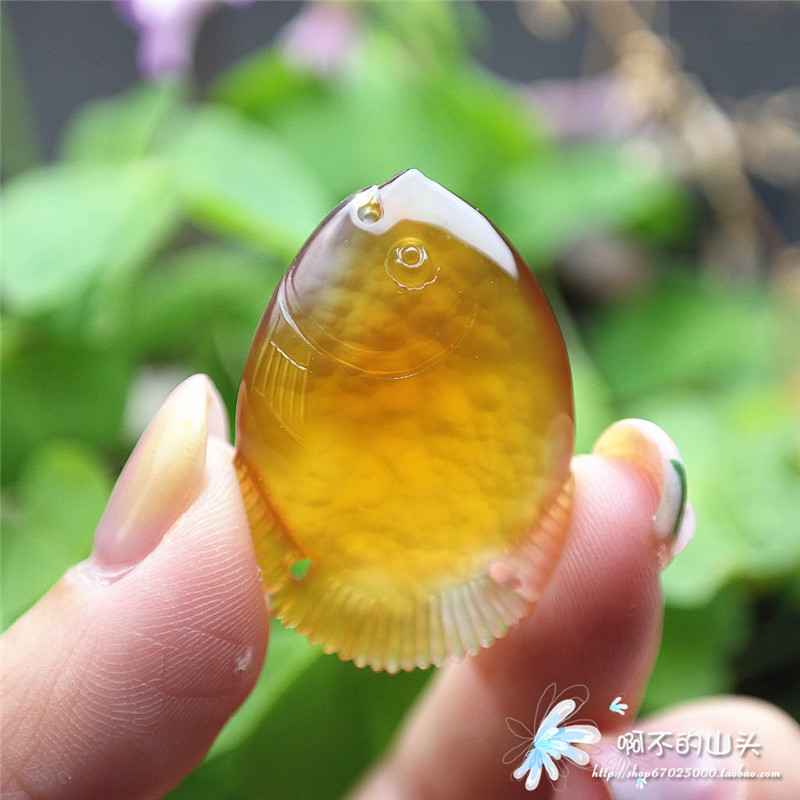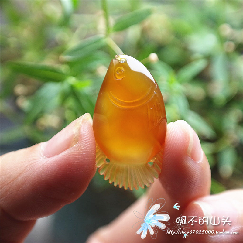 天然戈壁瑪瑙糖心料雕小魚吊墜