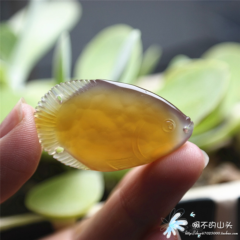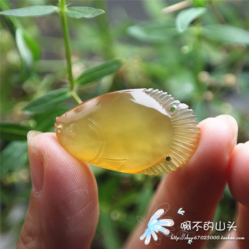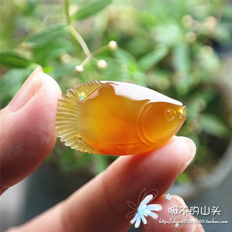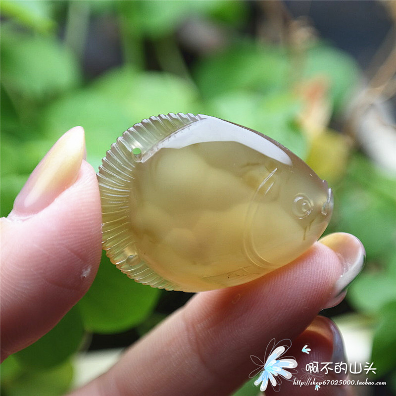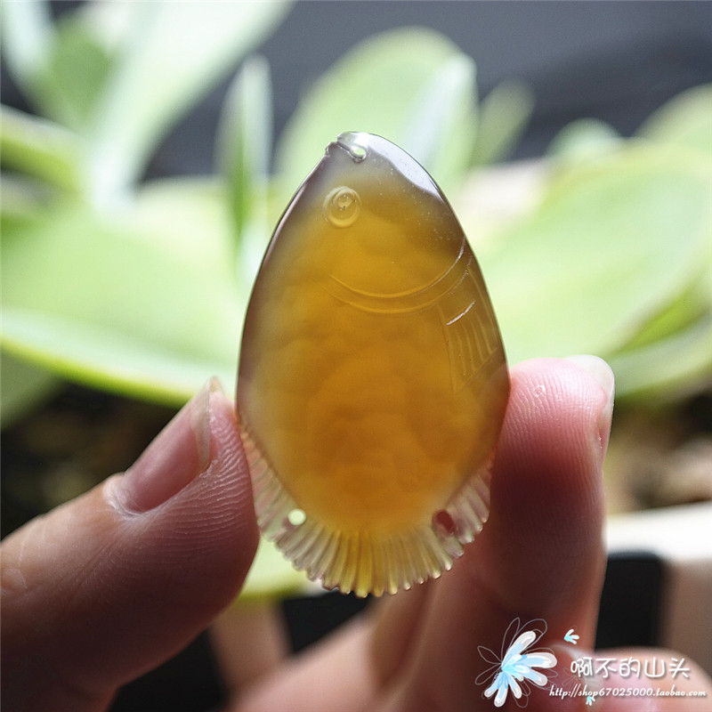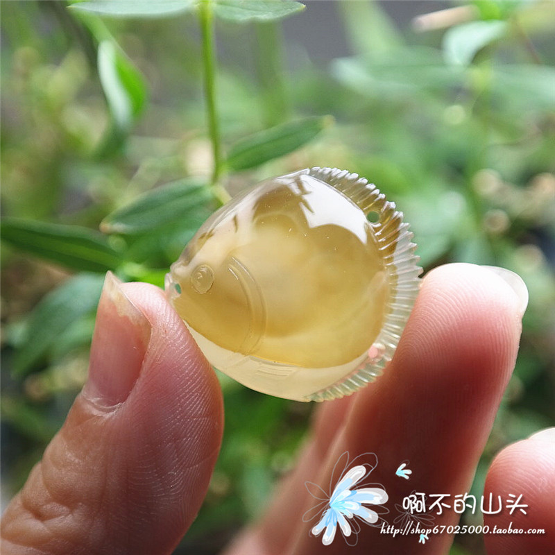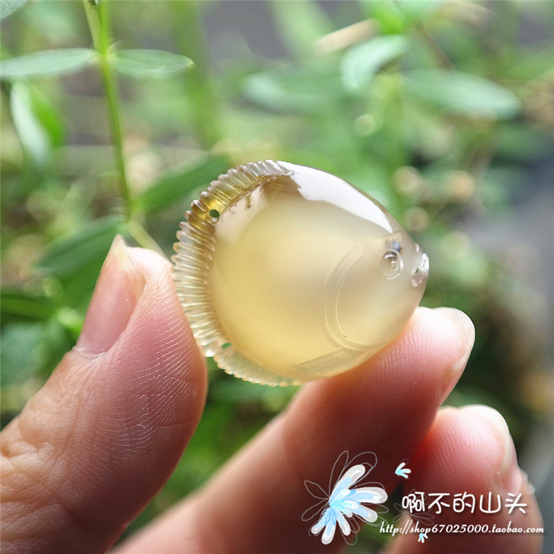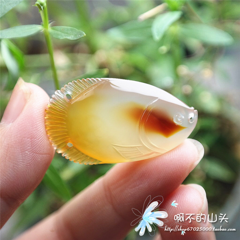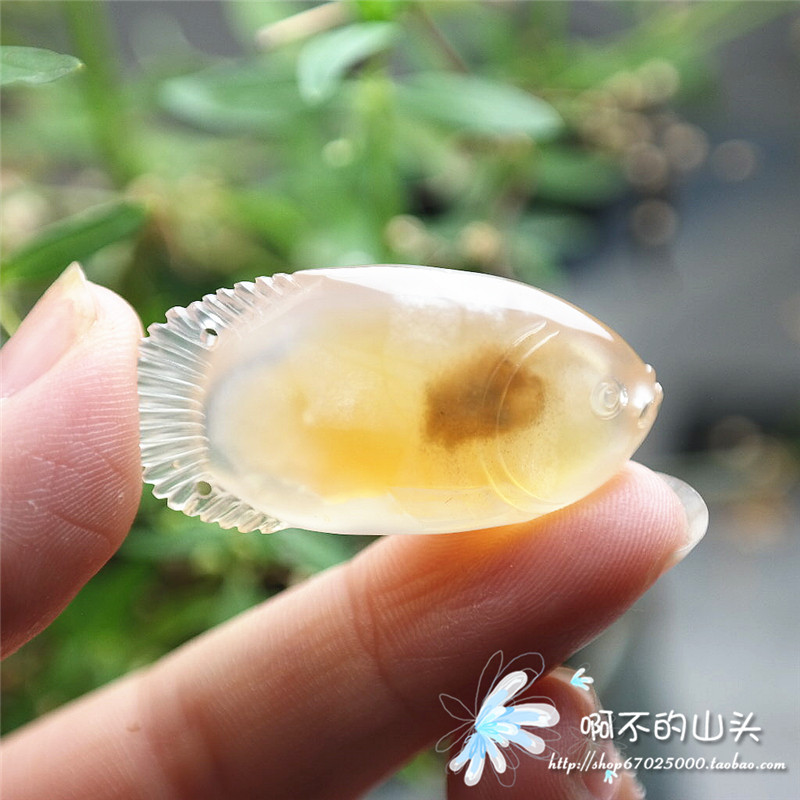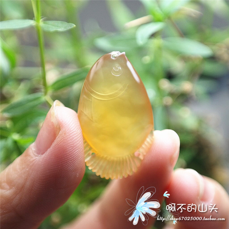 天然戈壁瑪瑙糖心料雕小魚吊墜