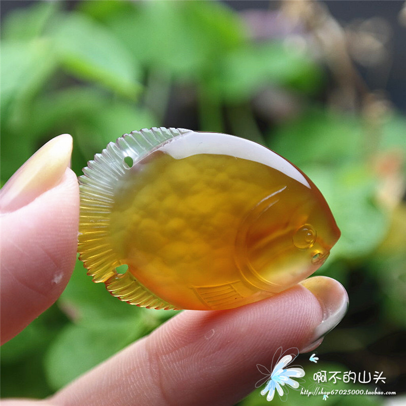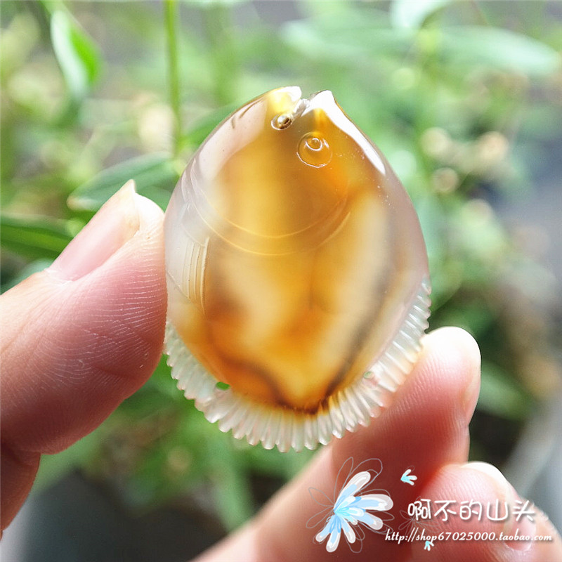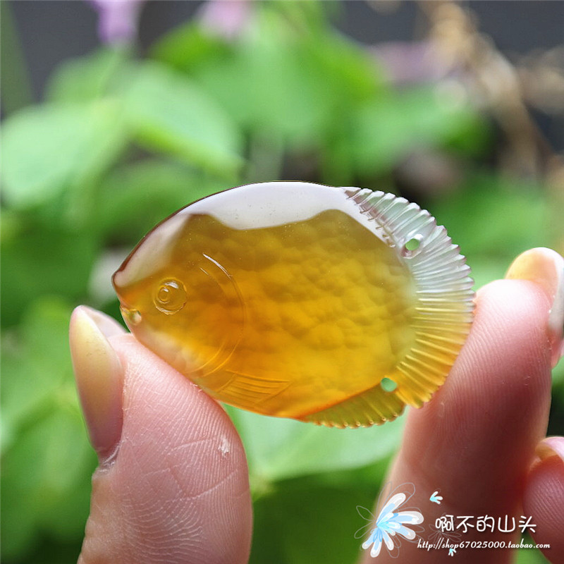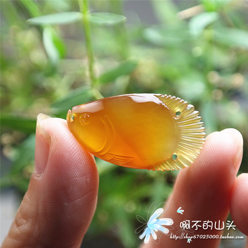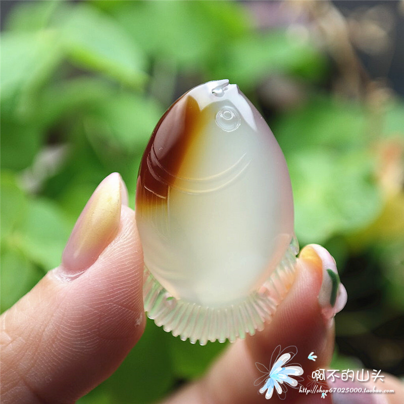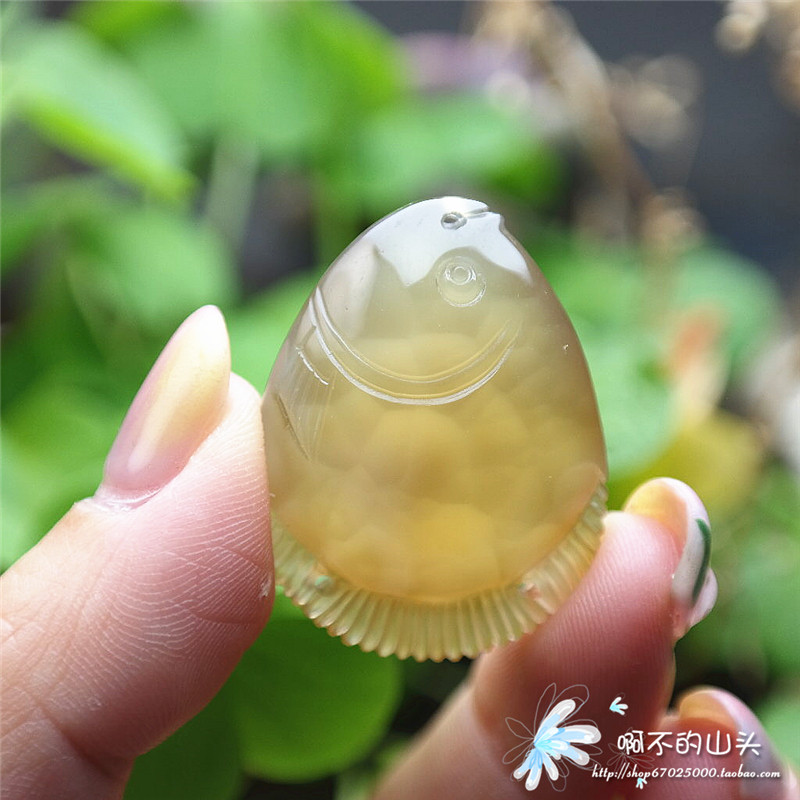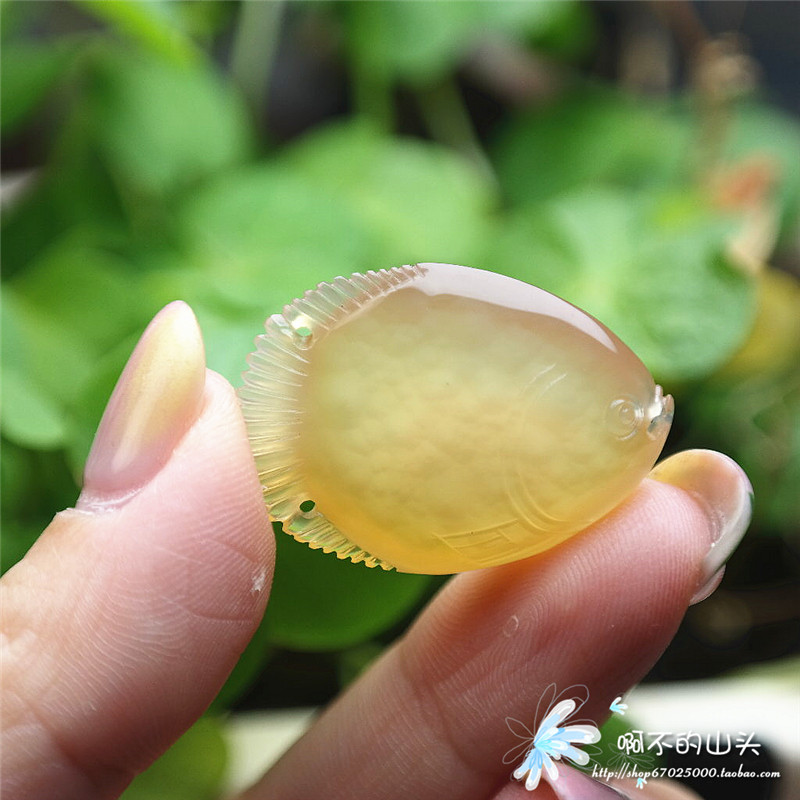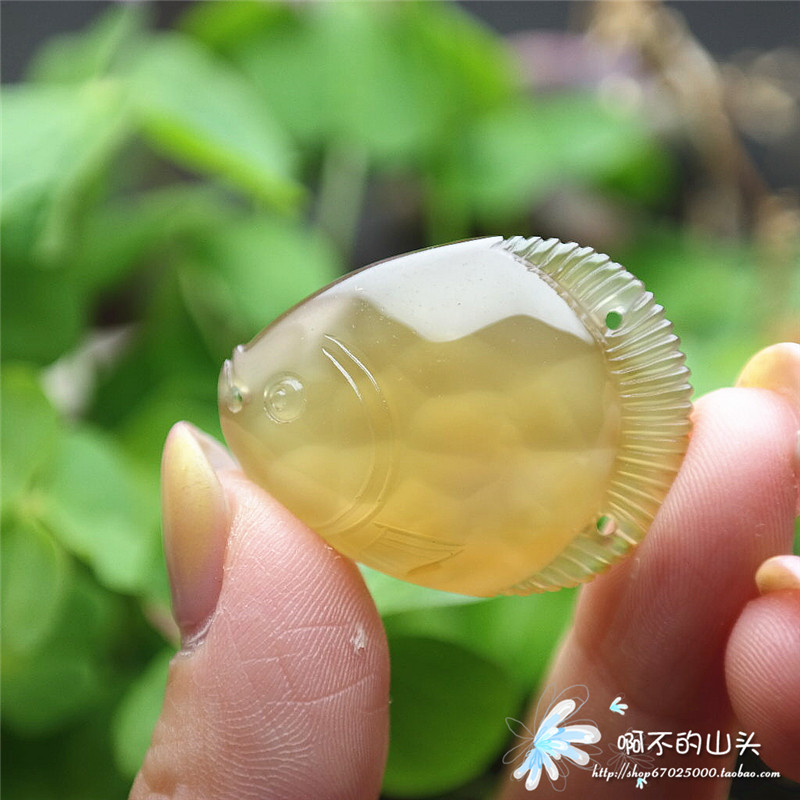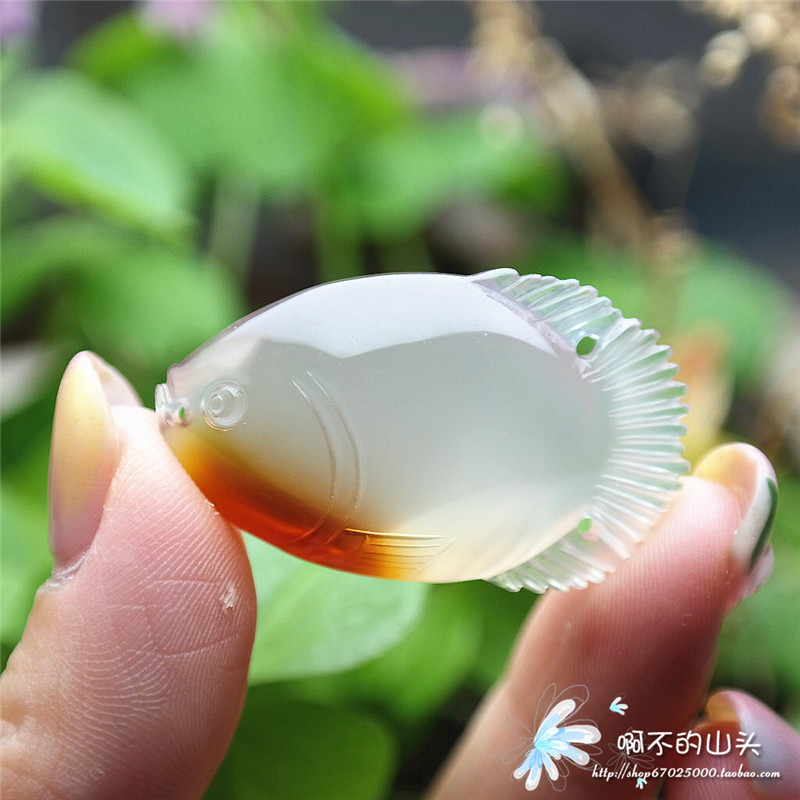 天然戈壁瑪瑙糖心料雕小魚吊墜