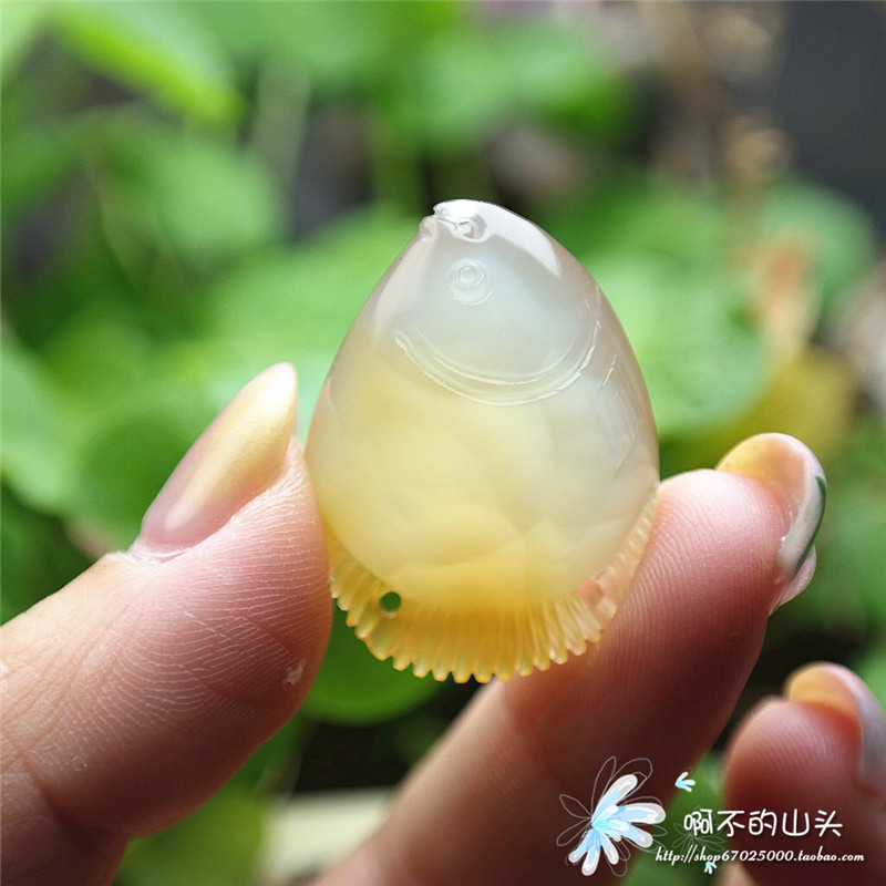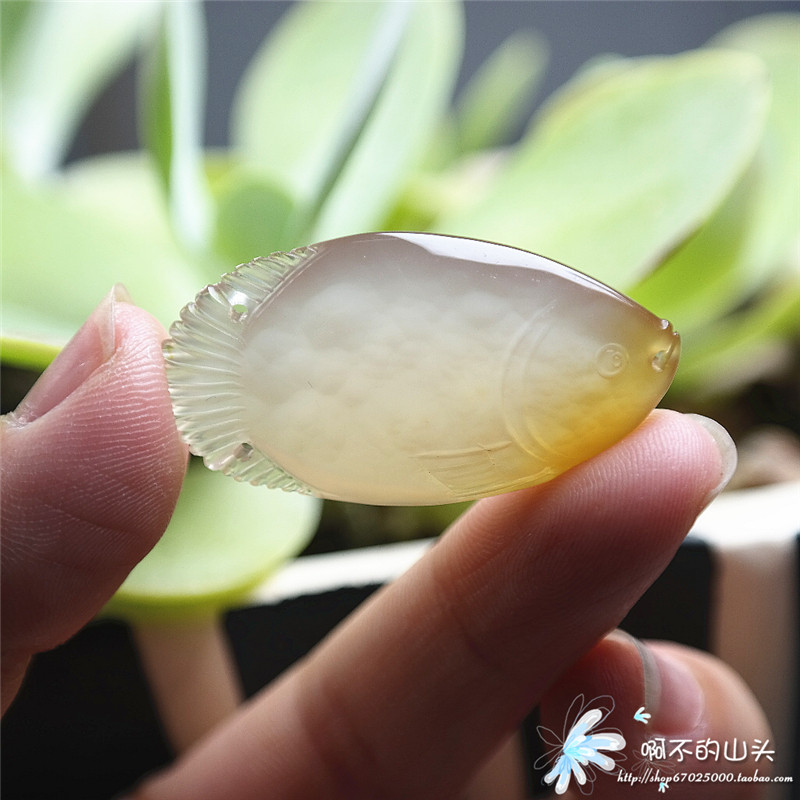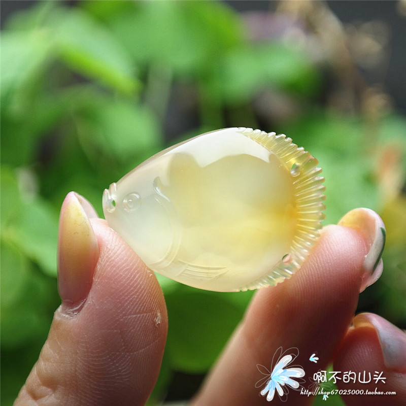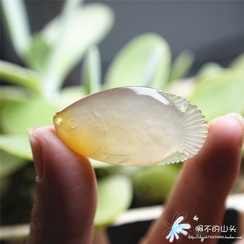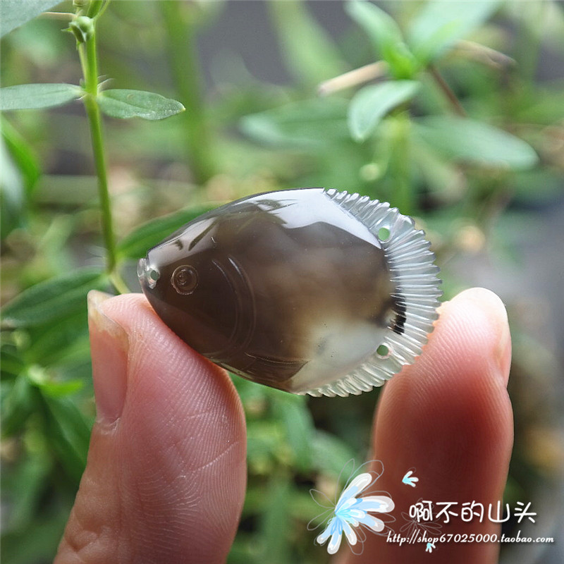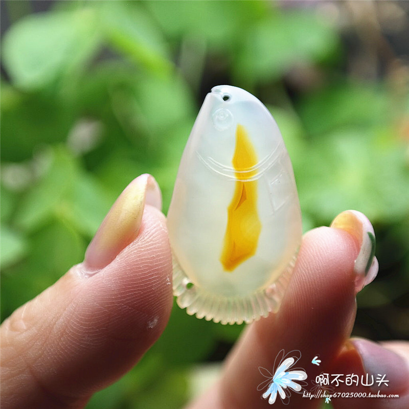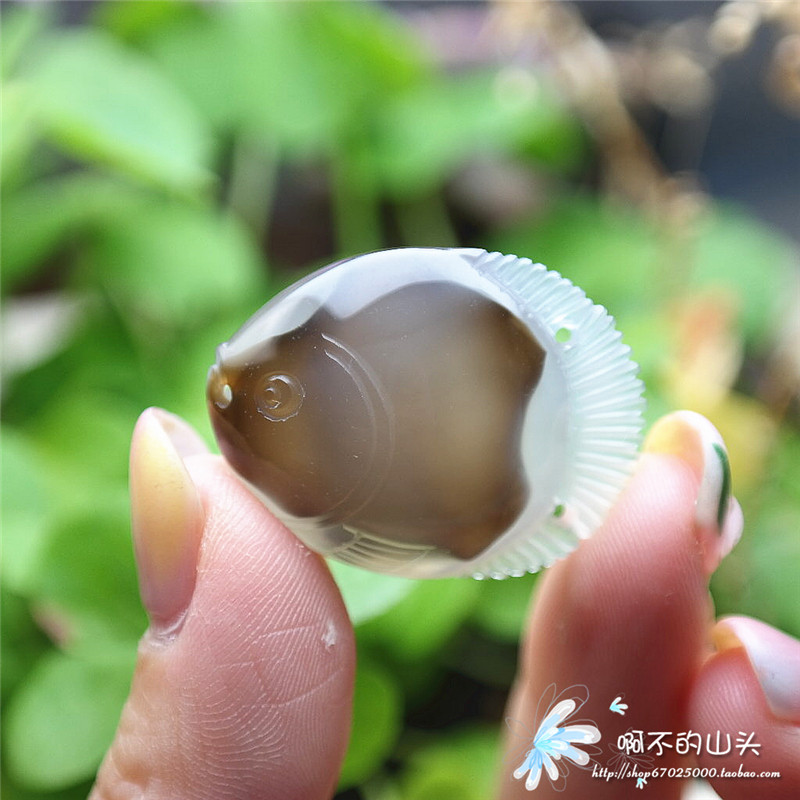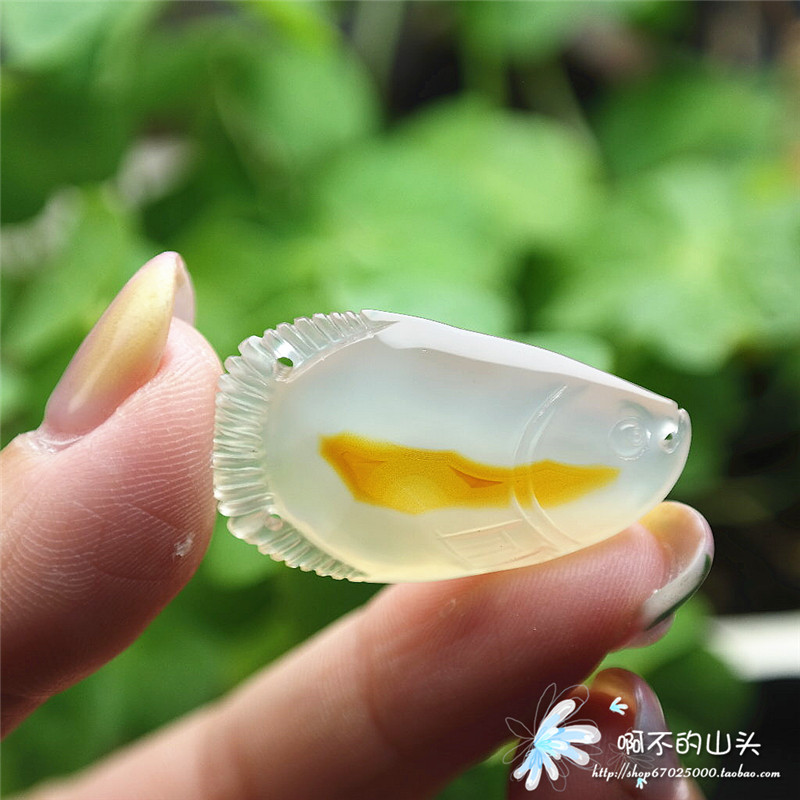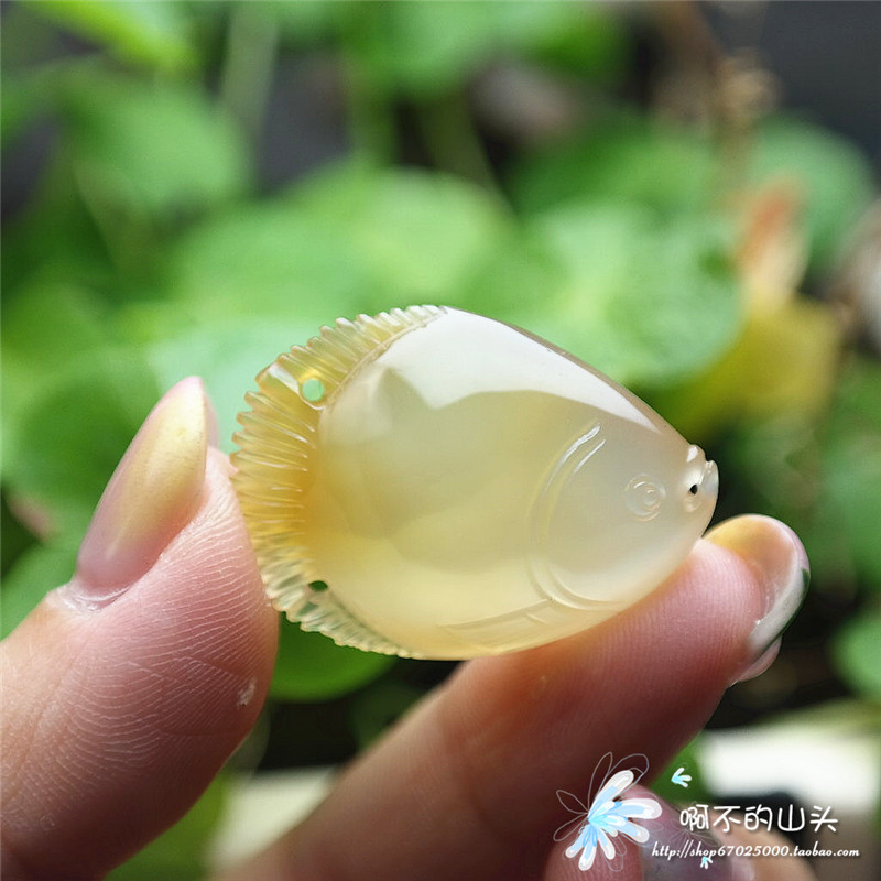 天然戈壁瑪瑙糖心料雕小魚吊墜