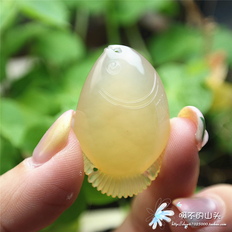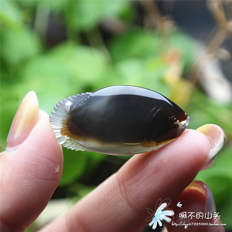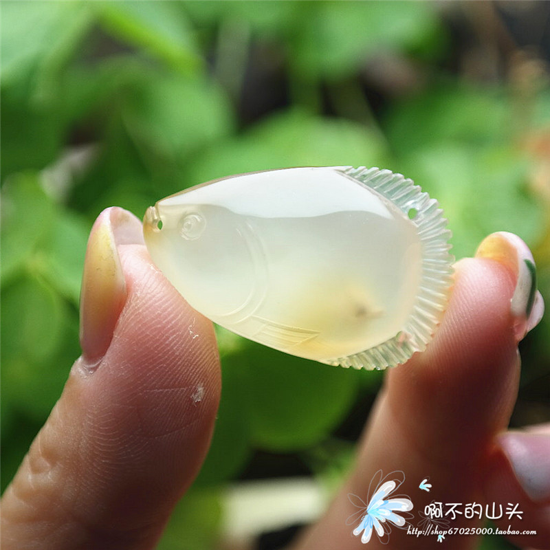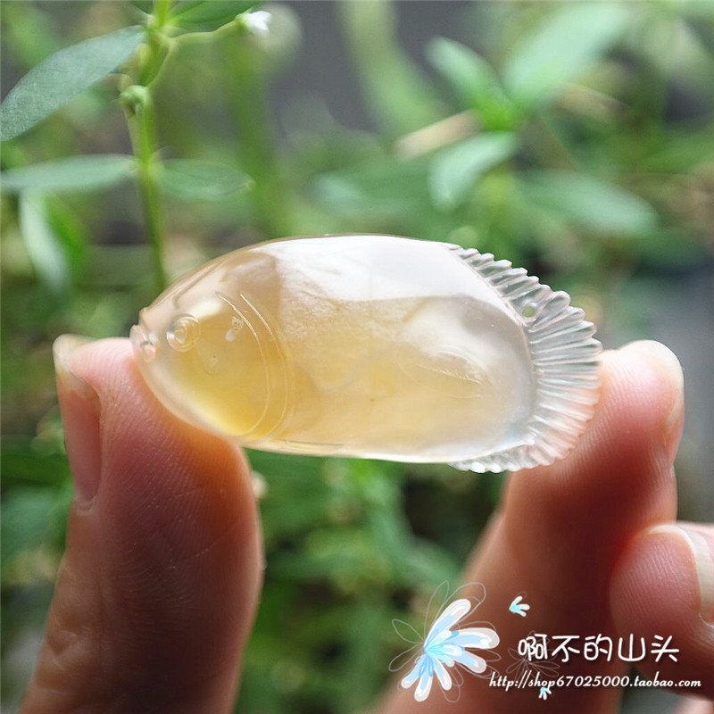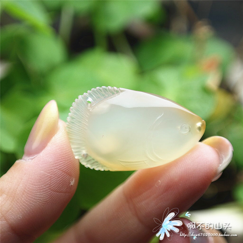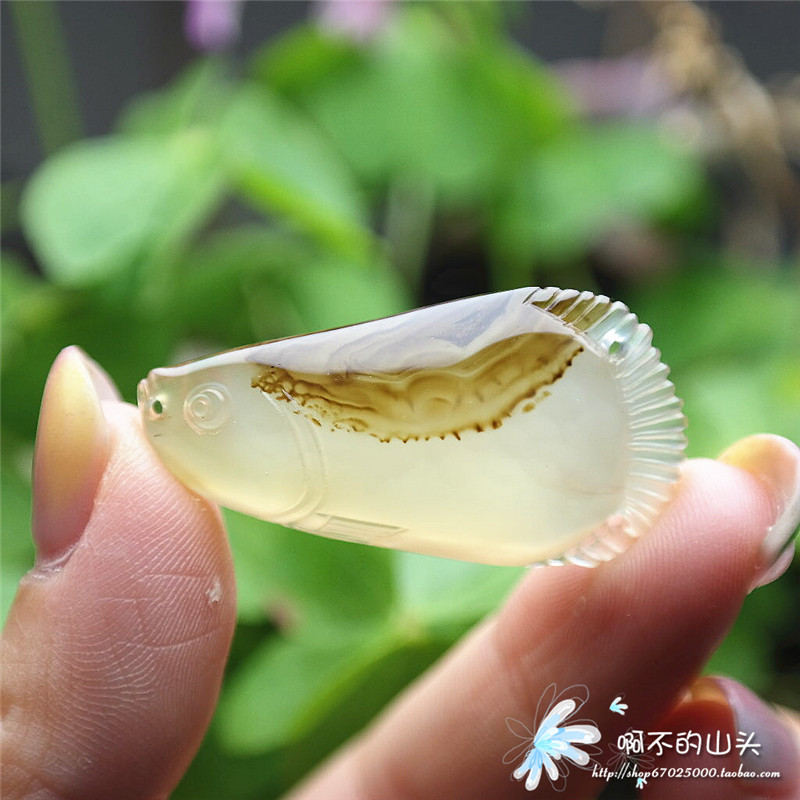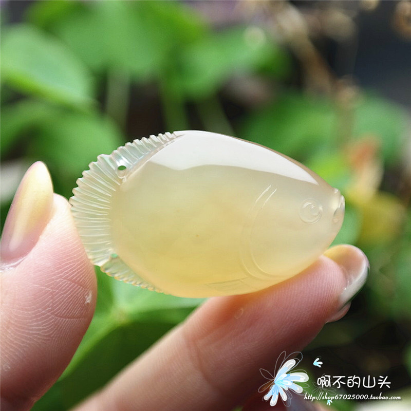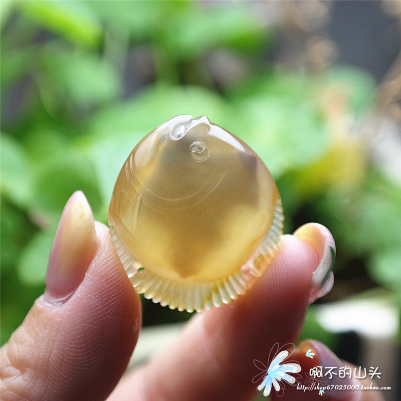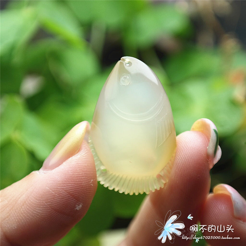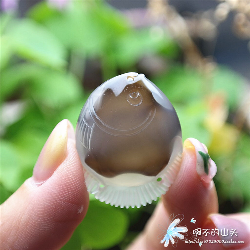 天然戈壁瑪瑙糖心料雕小魚吊墜