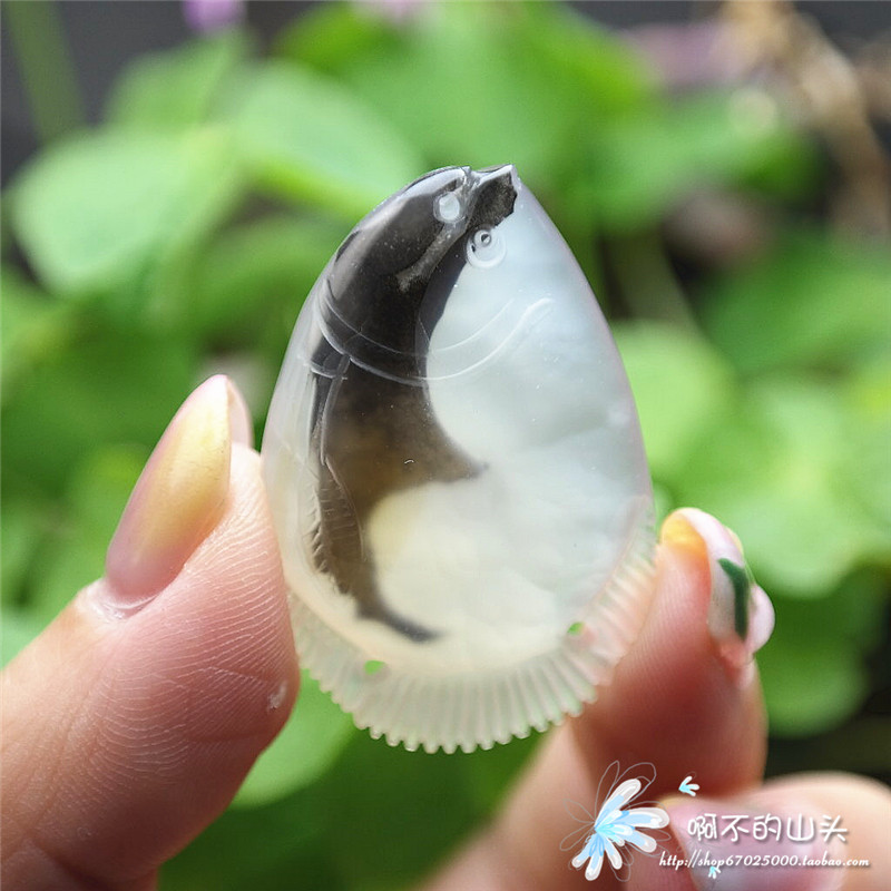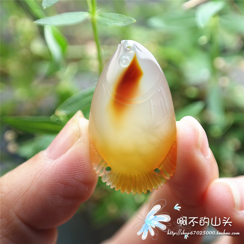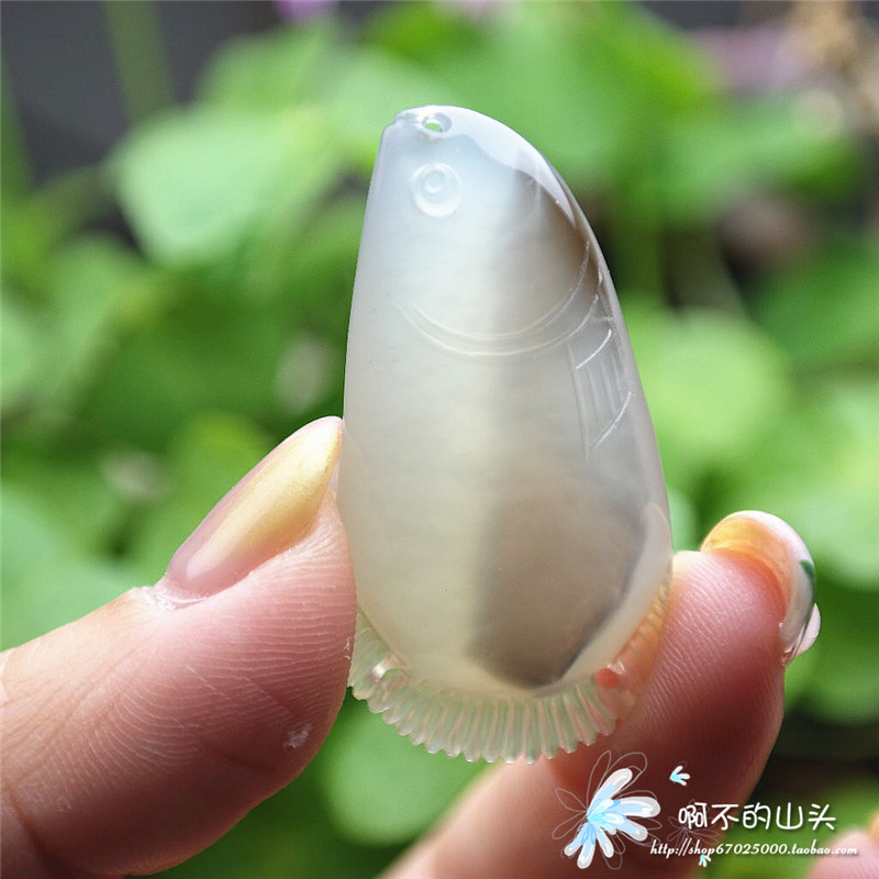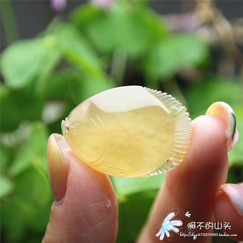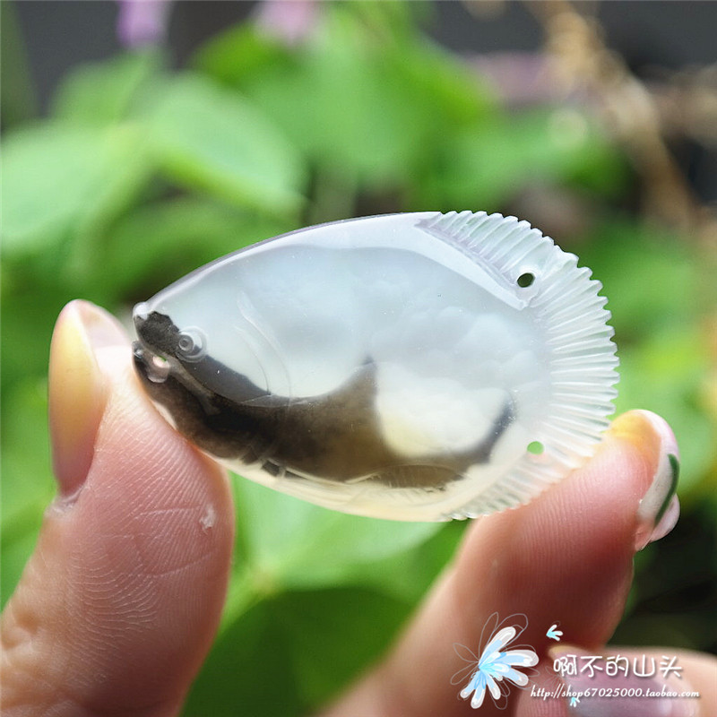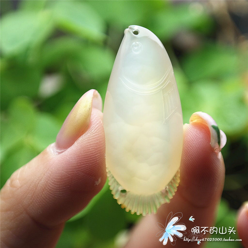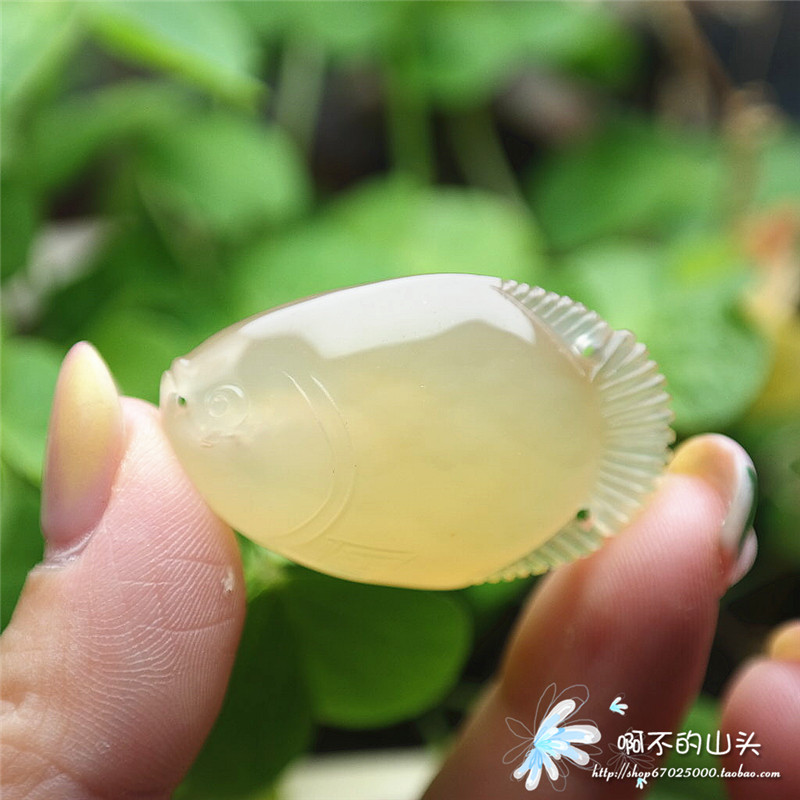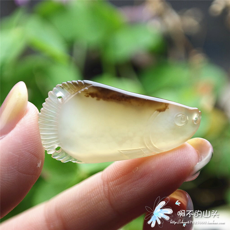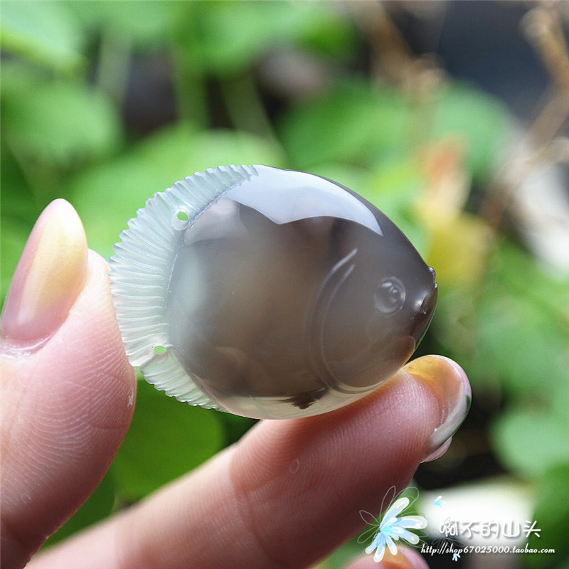 天然戈壁瑪瑙糖心料雕小魚吊墜