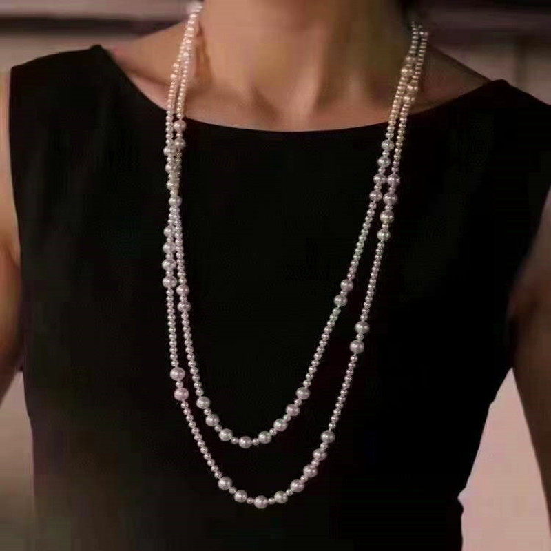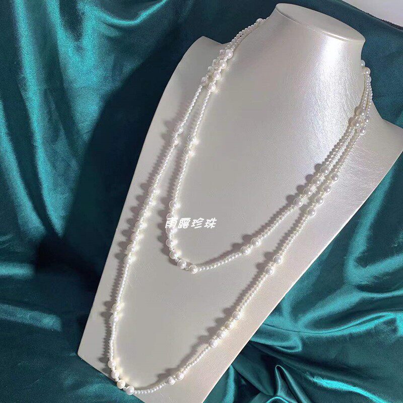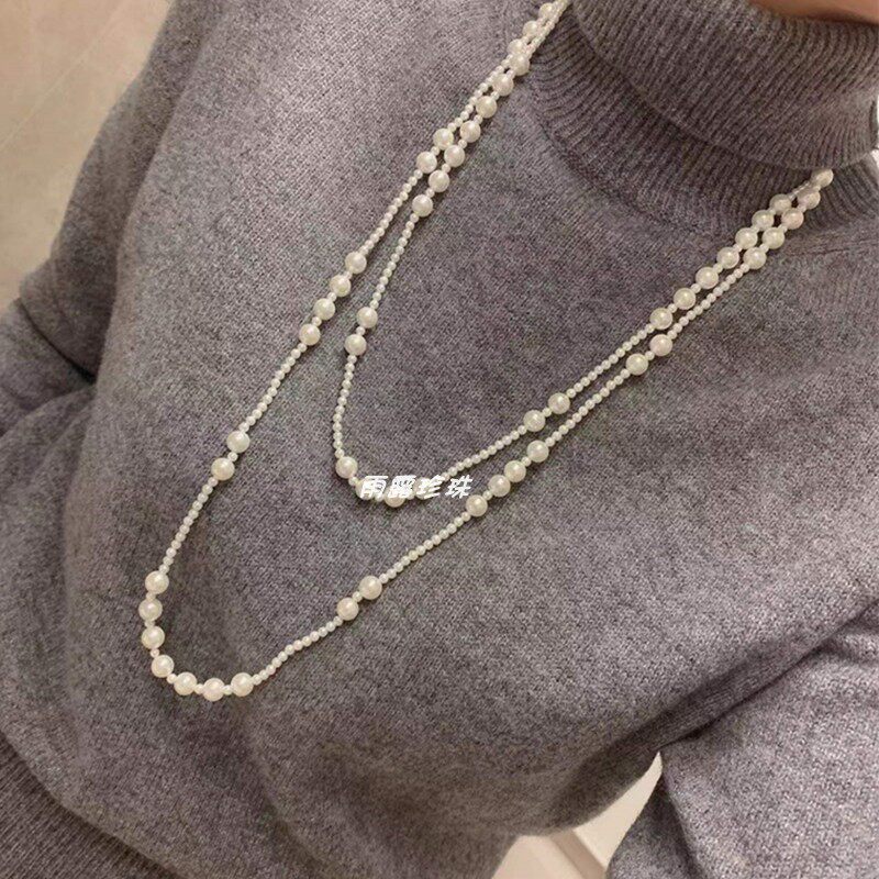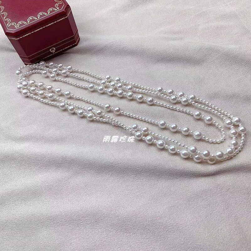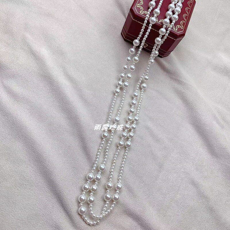 貝殼仿珍珠4-8mm正圓強光大小間隔長款項鏈毛衣鏈