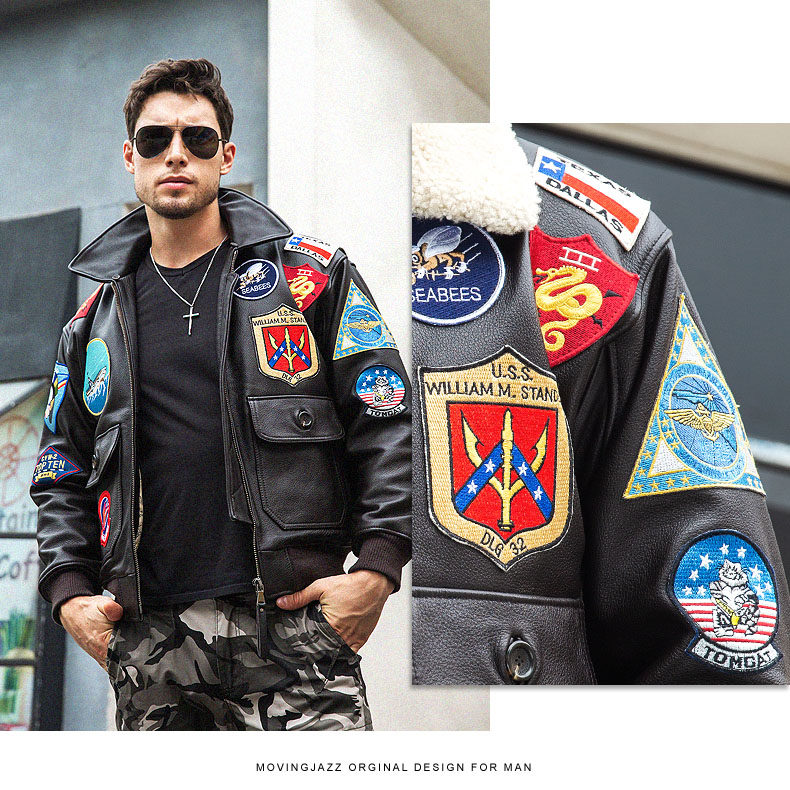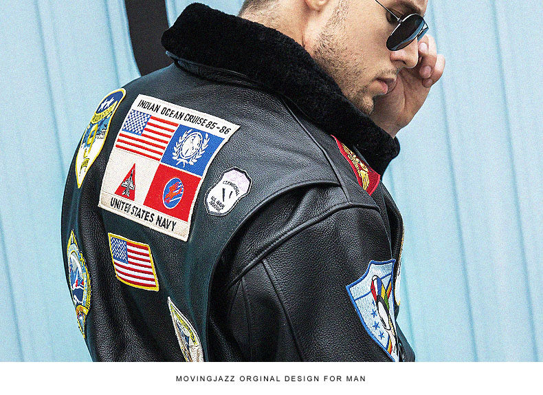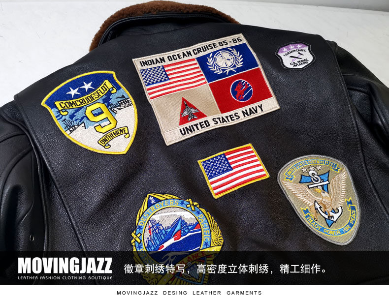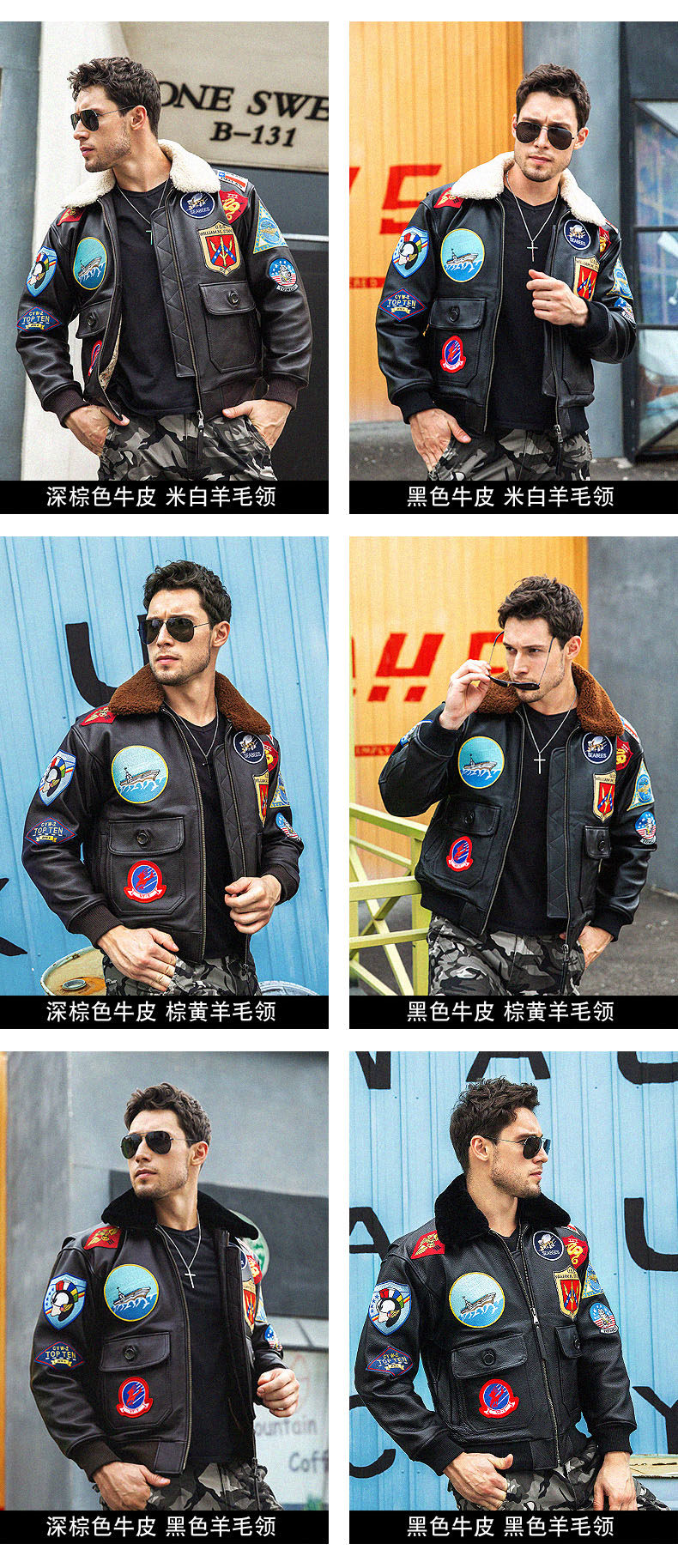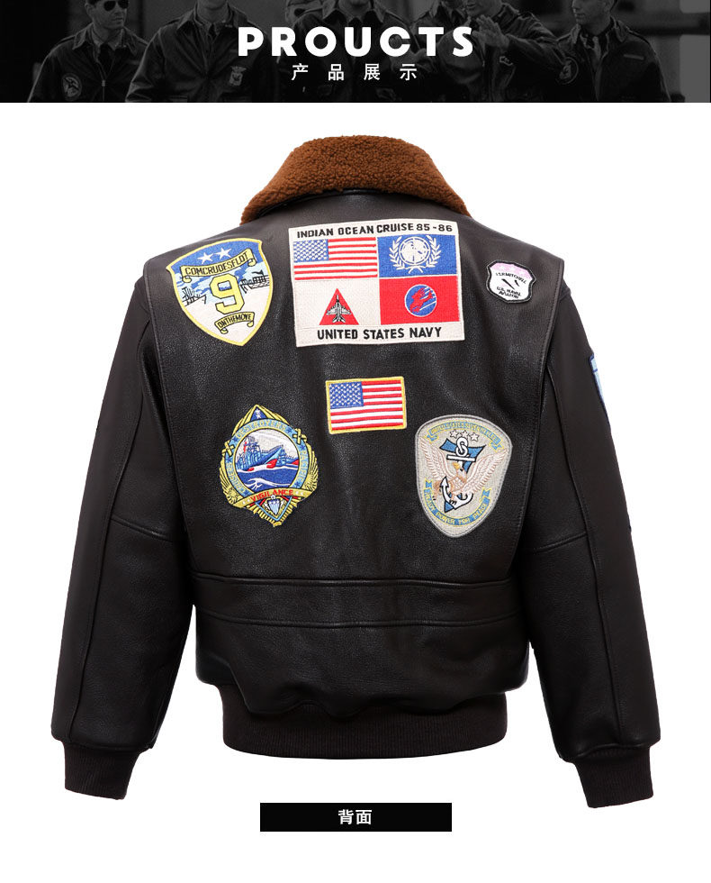 真皮皮衣男頭層牛皮厚牛皮純牛皮羊毛領可脫卸毛領可拆卸毛領多標徽章刺繡美軍空軍美式飛行服飛行夾克飛行員皮衣g1飛行夾克a2翻領皮夾克寬松出口歐美版型尺碼偏大壯志凌云皮衣壯志凌云夾克加肥加大碼阿湯哥湯姆克魯斯二戰皮衣復古螺紋袖口螺紋下擺側插口袋側縫插袋翻蓋口袋拉鏈寬松加棉保暖翻領男士男裝男款皮衣送*三*真皮保障送材*真險*特價常規青年帥氣潮流炸街立體刺繡深棕色黑色