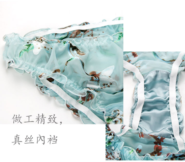 ◇真絲小常識◇選擇真絲內衣的理由:1、綠色:蠶寶寶養殖很有講究,吃的桑葉一定時間內不能使用任何農藥,而且蠶室周圍不能擺放或者使用蚊香、殺蟲劑等。2、舒適:蠶絲有很好的親膚性。蠶絲纖維集輕、柔、細、長于一身,被業界稱為“纖維皇后”,因此蠶絲又有“人體第二肌膚”的美譽。3、保健:蠶絲的吸水性是棉的1.5倍,能自動調節皮膚的濕度,當人體皮膚干燥時,蠶絲中的水分會補充進來,當人體皮膚出汗比較潮濕時,蠶絲能很快地吸收并散發。4、養顏:絲素中含有18種對人體有益的氨基酸,可以幫助皮膚維持表面脂膜的新陳代謝,故可以使皮膚保持滋潤、光滑。5、保暖:俗話說“一斤絲三斤棉”,蠶絲內部約38%是空心的,能起到很好的保溫效果,所以即使在寒冬。真絲內衣依舊有保暖效果。6、透氣:由于蠶絲有很好的吸濕排濕性,當溫度過高導致人體汗氣增多時,蠶絲會很快地吸收并散發汗氣,水汽化會帶走熱量,從而降低人體皮膚的溫度7、干凈:蠶絲蛋白是電的不良導體,因此不容易產生靜電真絲鑒別:1、燃燒法:真絲在燃燒時有燒羽毛味,難以續燃,會自熄,灰燼易碎、脆、蓬松、黑色。真絲洗滌:1、深色的真絲織物應該同淺色的分開來洗;2、汗濕的真絲織物應立刻洗滌或用清水浸泡,切忌用30度以上的熱水洗滌;3、洗滌請用專用洗滌用品,忌用堿性洗滌劑、肥皂、洗衣粉或其它去污劑,千萬不能使用消毒液;4、需用清水漂洗幾次,洗滌時用手輕輕揉搓,洗后不可用力擰絞,以免真絲織物起皺變形。為保持真絲色澤鮮艷、柔軟,可在最后清水漂洗時加上幾滴白醋。真絲織物復白:將變黃的真絲織物泡在干凈的淘米水里,每天換一次水,三天后黃色就可褪掉;如果有黃色汗漬,可用冬瓜汁洗去。
